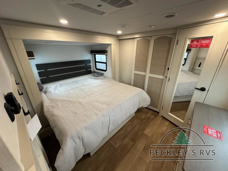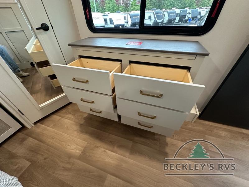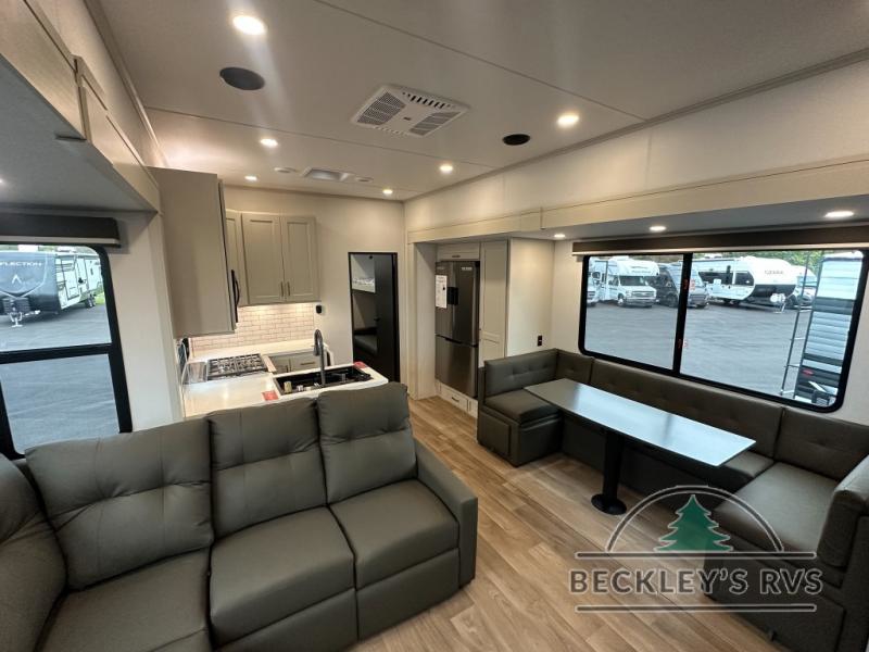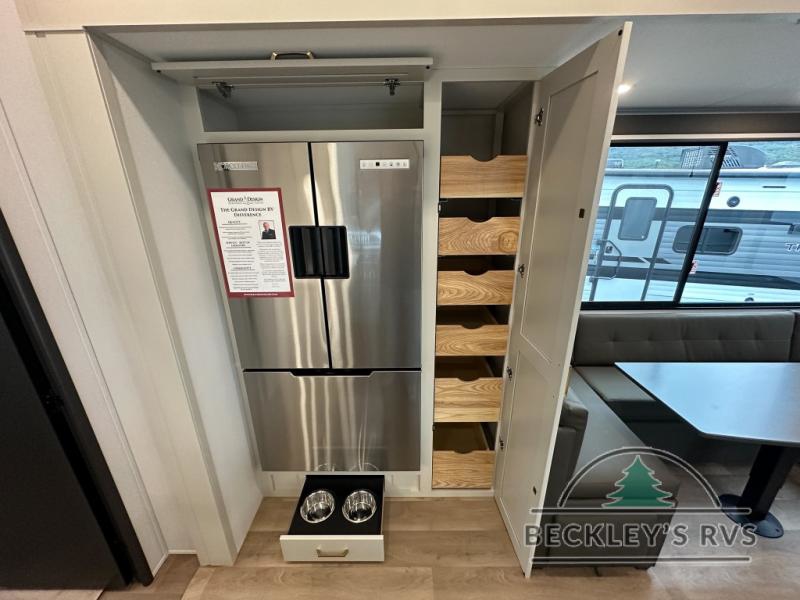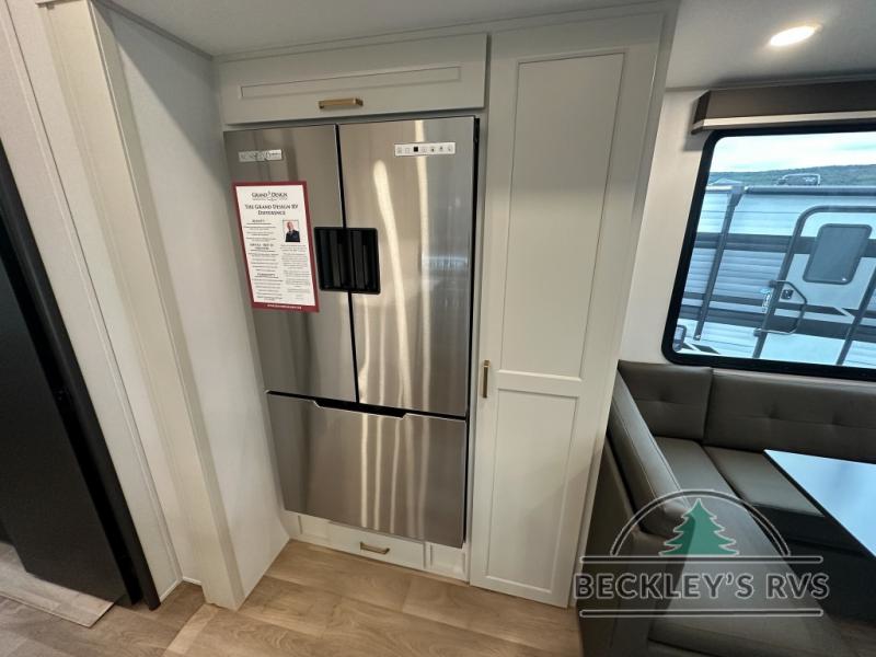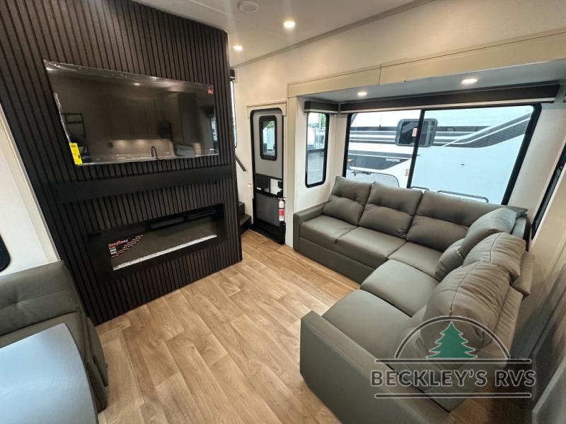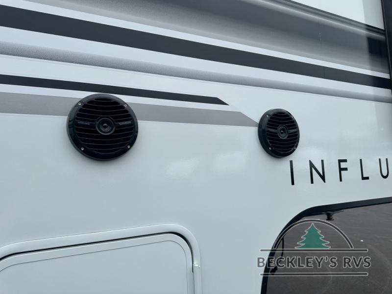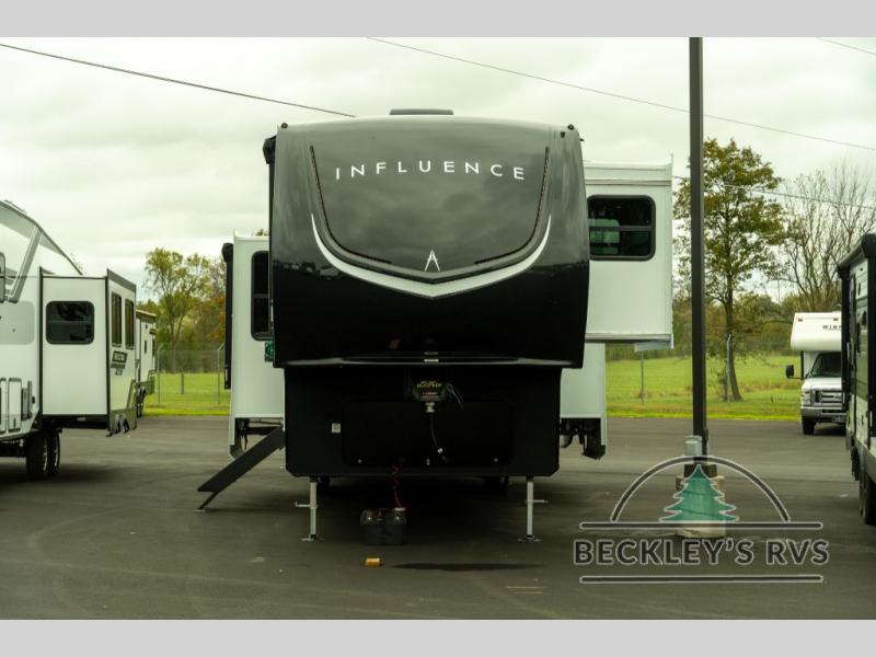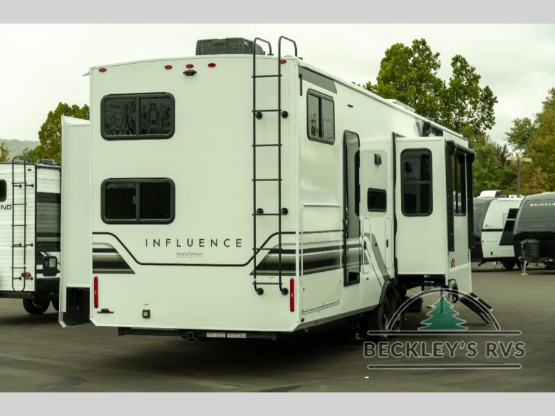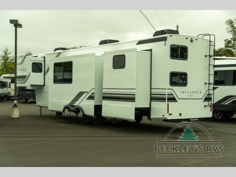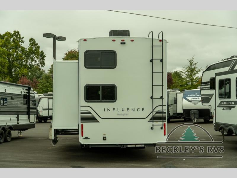 Any Grand Design Influence fifth wheel features five-sided aluminum cage construction with a walk-on roof and a fully enclosed underbelly with heated tanks and storage for all weather camping. For peace of mind, the MORryde CRE3000 Suspension system will provide safe and smooth towing, and the 101" widebody construction offers all the room you need and that is before multiple slides are fully engaged. You will appreciate the Keyed-Alike locks, slam-latch baggage doors with magnetic door catches, exterior security light, and SolidStep entry steps. On the inside, Congoleum flooring, premium roller shades for privacy, a hallway handrail for safety, and nightstands with USB ports to keep all of your electronics fully charged. You will also love the On Demand tankless water heater when showering, plus the added heat and ambiance from an electric fireplace, and so much more!