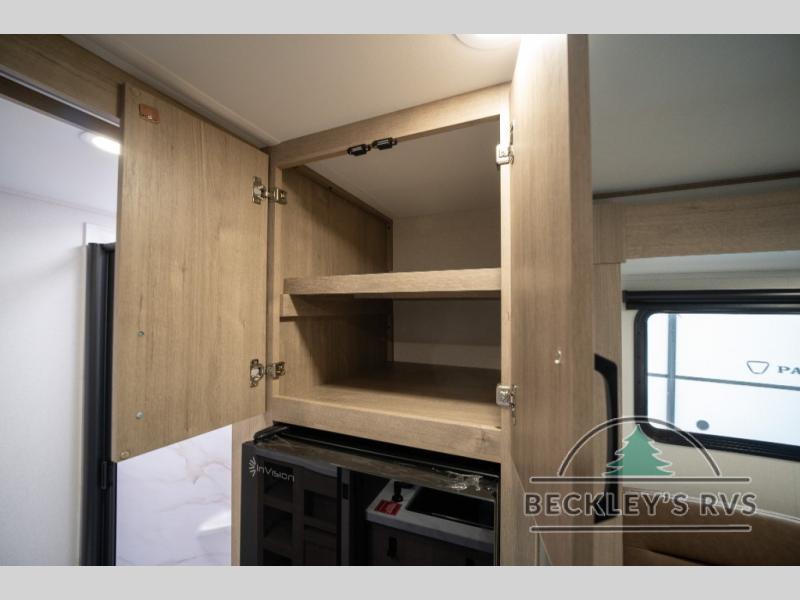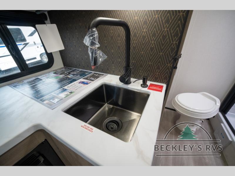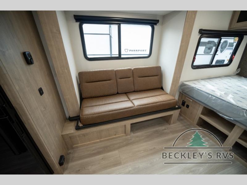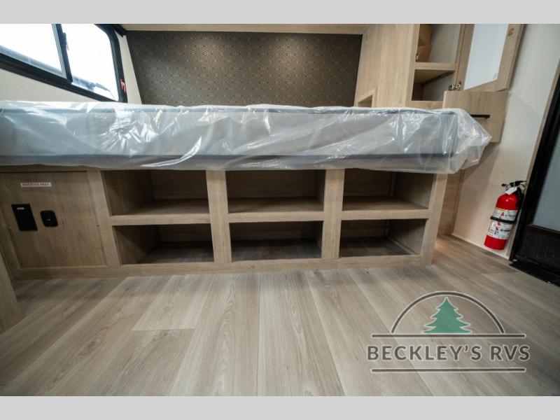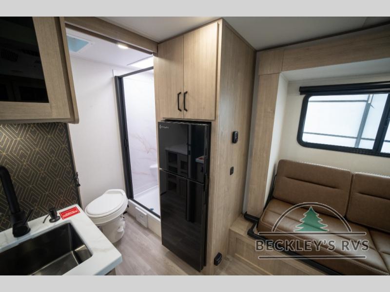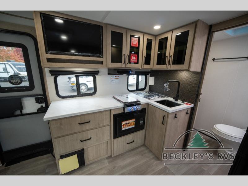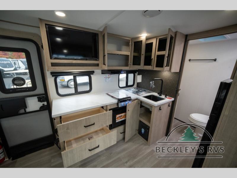 Pack your bags and head out on a fun camping trip in this travel trailer! The front queen bed offers a comfortable place to sleep at night, as well as the roll-over sleeper sofa slide with shoe storage. You can make meals on the cooktop or in the convection microwave. The full rear bathroom has a walk-in shower with an oversized vanity to easily get ready each day. Outside, you'll find a spray port, an unobstructed pass-thru storage, and an interior/exterior table to use at your convenience.