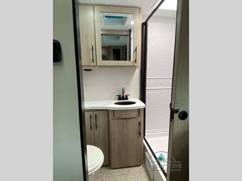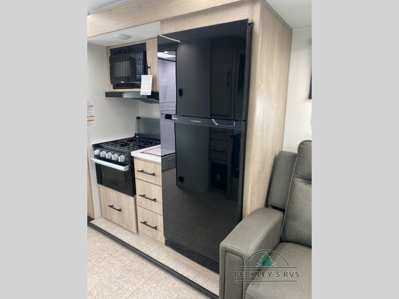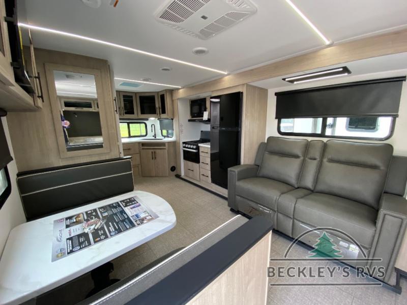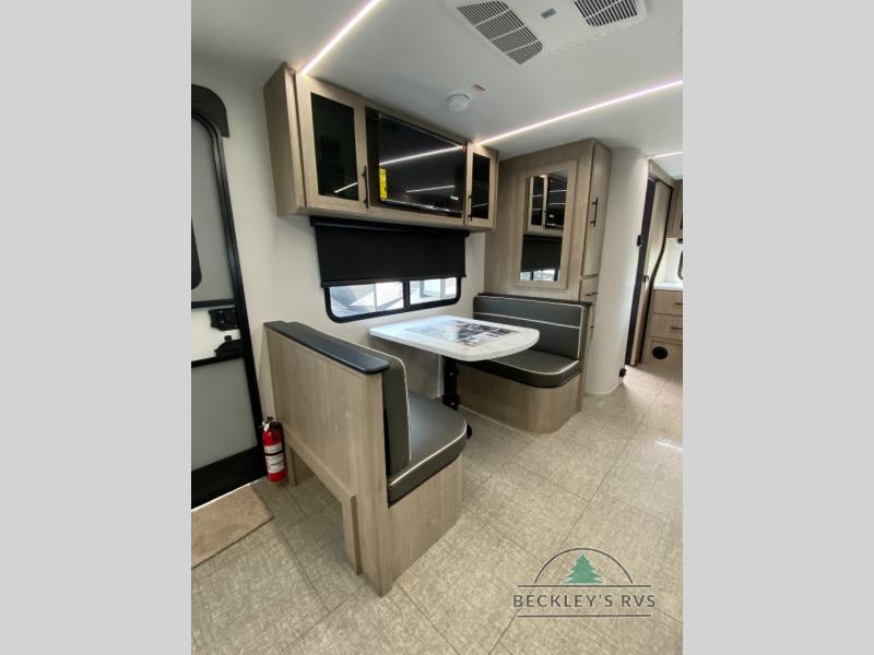 This Imagine XLS travel trailer has theater seating and a booth dinette that you can use any time you need a little break from the outdoors. If you want to come in and grab a coffee, put together a puzzle, or work on your itinerary for the week, just put up your feet and relax. You could even switch on the LED HDTV if you want a little entertainment. The front queen-size bed has a privacy curtain that you can draw to create a semi-private bedroom, and in the back of the trailer you will find the rest of your amenities, like the kitchen and the bathroom. The large slide makes it easy to enjoy spending your time indoors, but if you do want to get back outside, you can sit underneath the 18' electric awning for some shade.