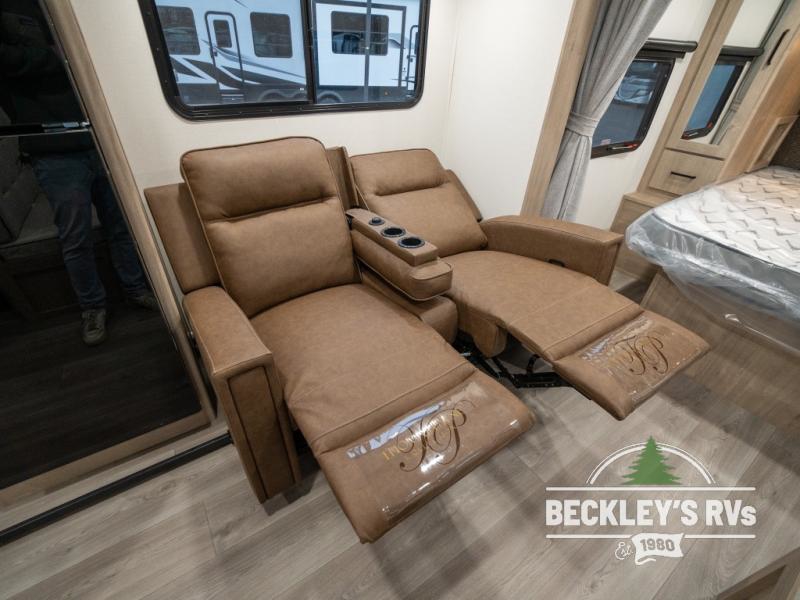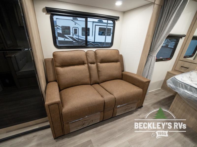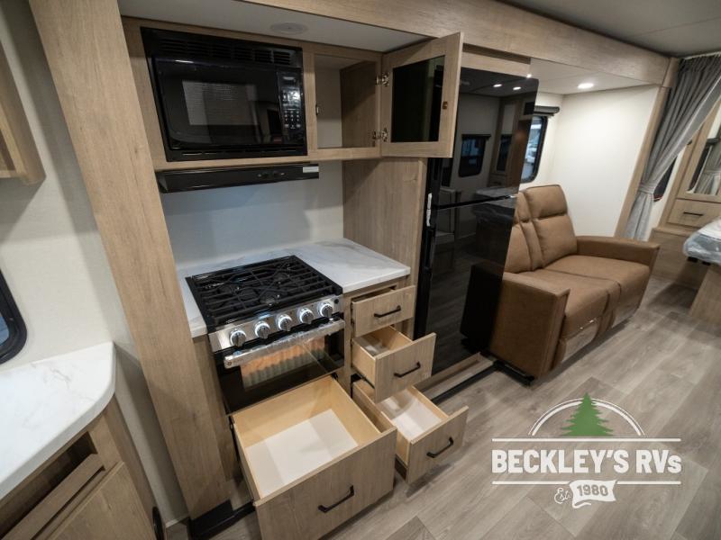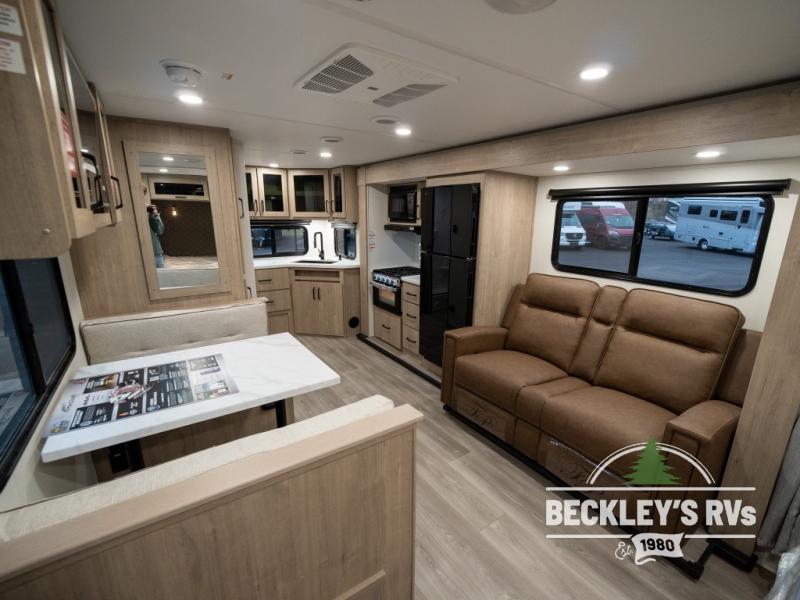 This Imagine XLS travel trailer has theater seating and a booth dinette that you can use any time you need a little break from the outdoors. If you want to come in and grab a coffee, put together a puzzle, or work on your itinerary for the week, just put up your feet and relax. You could even switch on the LED HDTV if you want a little entertainment. The front queen-size bed has a privacy curtain that you can draw to create a semi-private bedroom, and in the back of the trailer you will find the rest of your amenities, like the kitchen and the bathroom. The large slide makes it easy to enjoy spending your time indoors, but if you do want to get back outside, you can sit underneath the 18' electric awning for some shade.