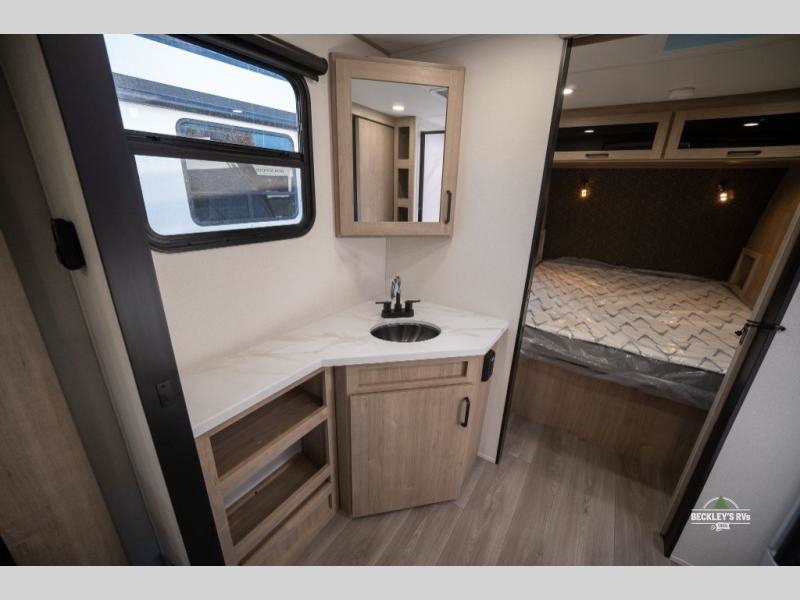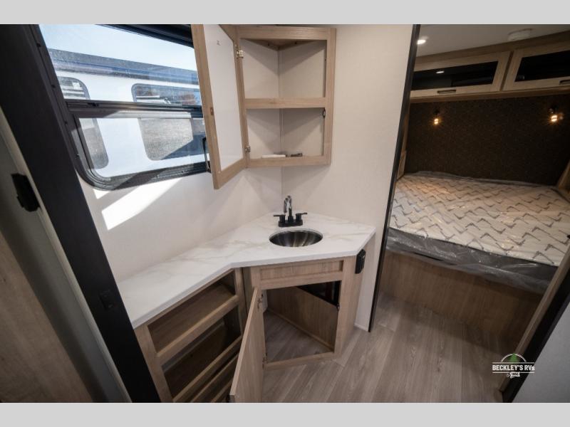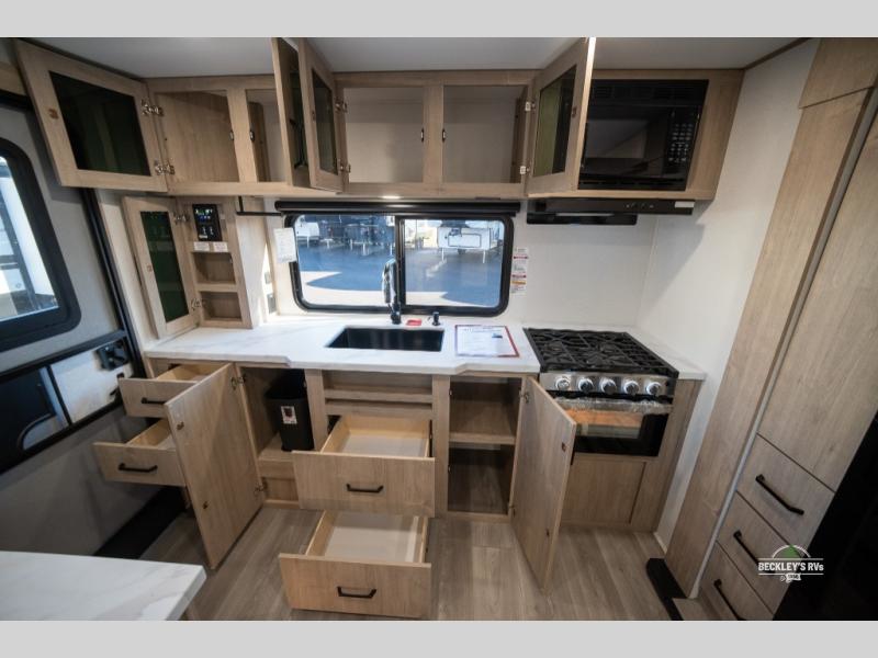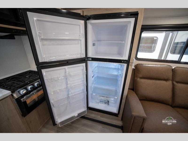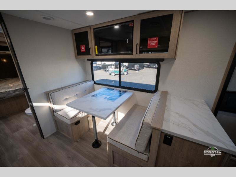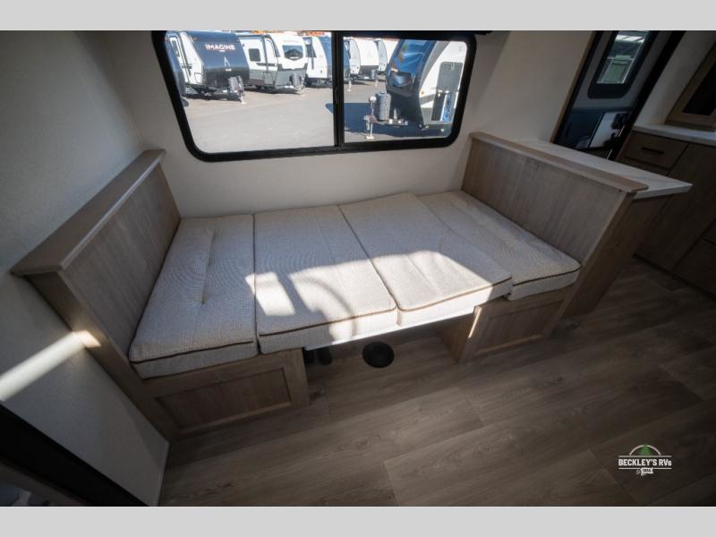 Treat yourself to a weekend of fun in this Imagine XLS travel trailer! Whether it's just you and your spouse, or you've chosen to bring along a group of friends, this trailer will meet your needs. The front bedroom can sleep two people on the walk-around queen-size bed. The bedroom is quite functional because it not only contains the second exterior entry door, but it also has a private entrance into the walk-through bathroom since it is located on the other side of the bathroom. The booth dinette is functional too because it can transform from a dining location into a sleeping location, and the theater seating is directly across from the LED TV for easy viewing. The rear kitchen is fit for the chef on the trip, it features residential countertops, a stainless-steel sink and a 3-burner range with oven for you to cook your meals in comfort.