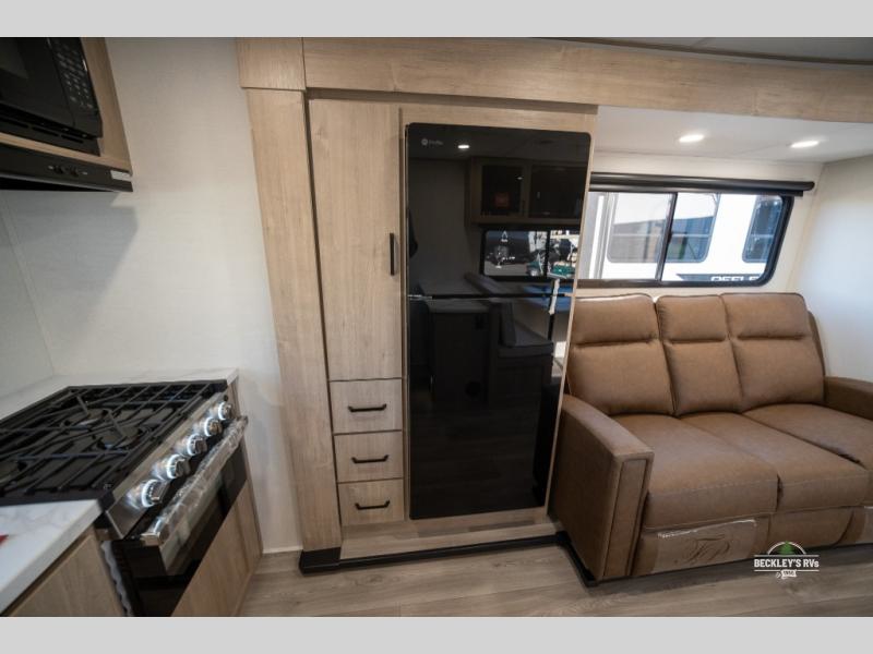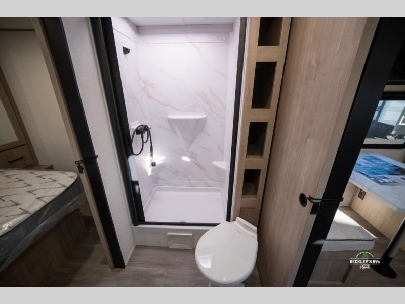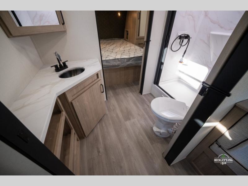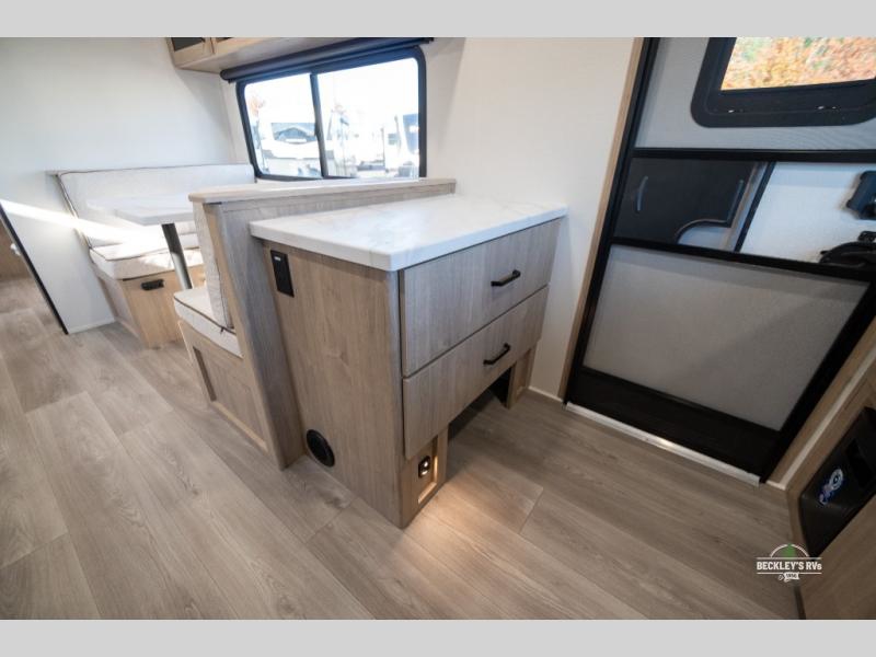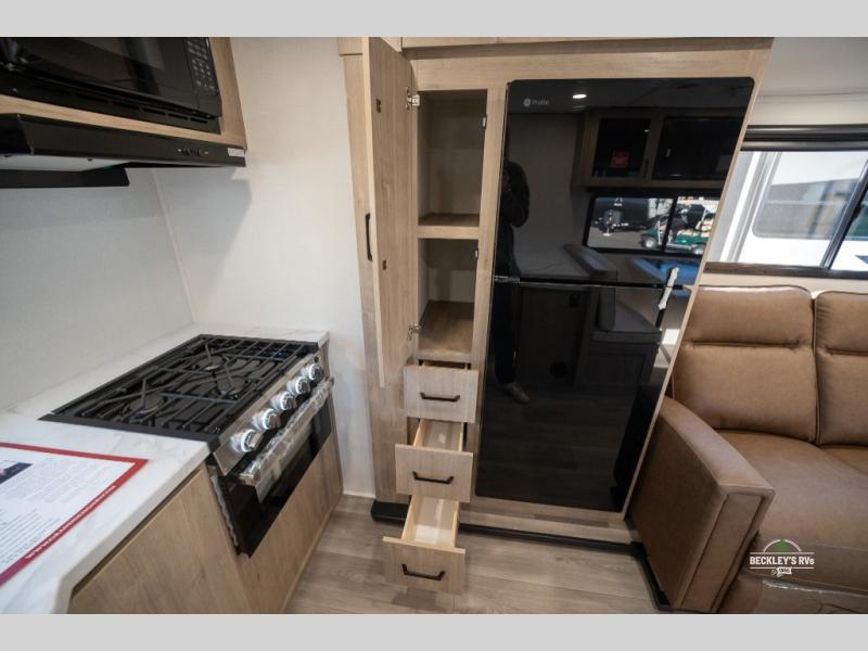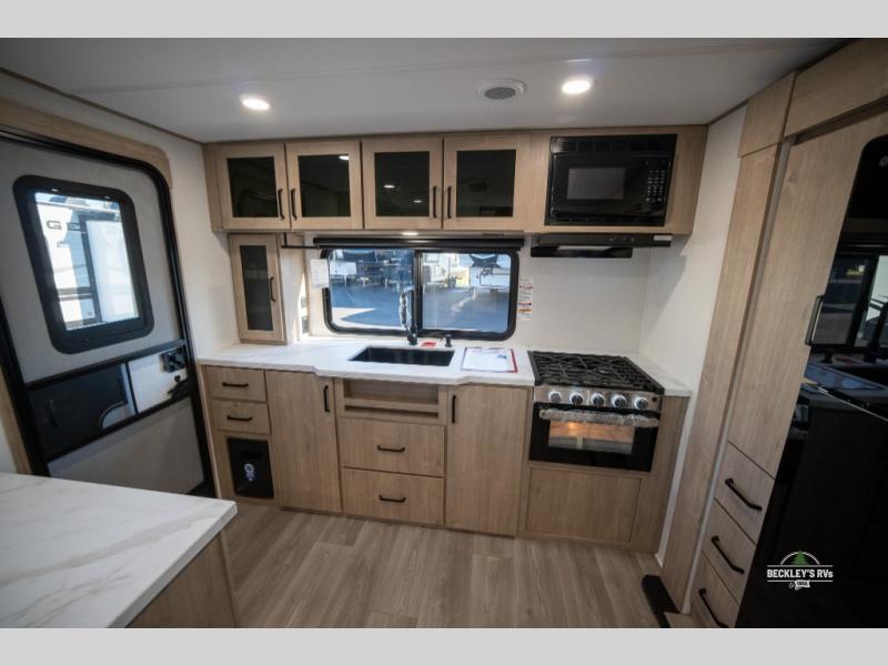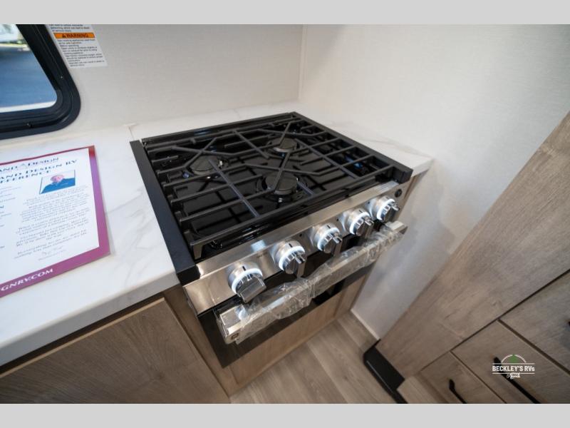 Treat yourself to a weekend of fun in this Imagine XLS travel trailer! Whether it's just you and your spouse, or you've chosen to bring along a group of friends, this trailer will meet your needs. The front bedroom can sleep two people on the walk-around queen-size bed. The bedroom is quite functional because it not only contains the second exterior entry door, but it also has a private entrance into the walk-through bathroom since it is located on the other side of the bathroom. The booth dinette is functional too because it can transform from a dining location into a sleeping location, and the theater seating is directly across from the LED TV for easy viewing. The rear kitchen is fit for the chef on the trip, it features residential countertops, a stainless-steel sink and a 3-burner range with oven for you to cook your meals in comfort.