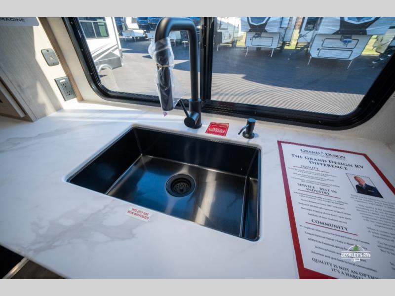 Let your imagination run wild with the possibilities that the Grand Design Imagine XLS travel trailer can provide! The Imagine XLS has been built with oversized tank capacities, an extra-large 2" fresh water drain valve, a ducted A/C system, a power tongue jack, and a heated and enclosed underbelly with suspended tanks. There is a designated heat duct to the subfloor and a residential ductless heating system throughout. For outdoor adventures, the electric awning with LED lights will enable you to stay protected, and the Tuff-Ply pass-thru flooring will withstand your adventures. You will also love the XLS Solar Package that comes with a 200W roof mounted solar panel, a 30 Amp charge controller, a 12V 10 cu. ft. refrigerator, and roof mounted quick connect plugs!