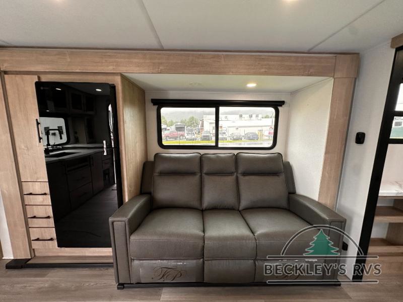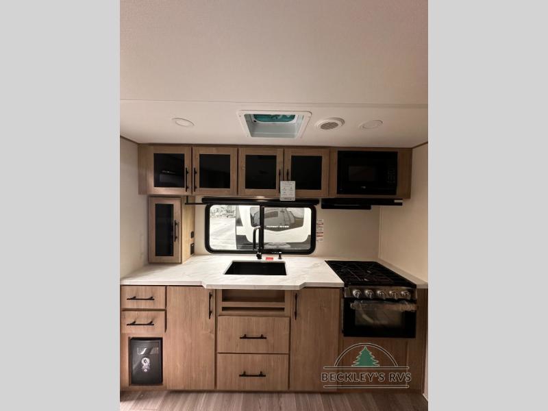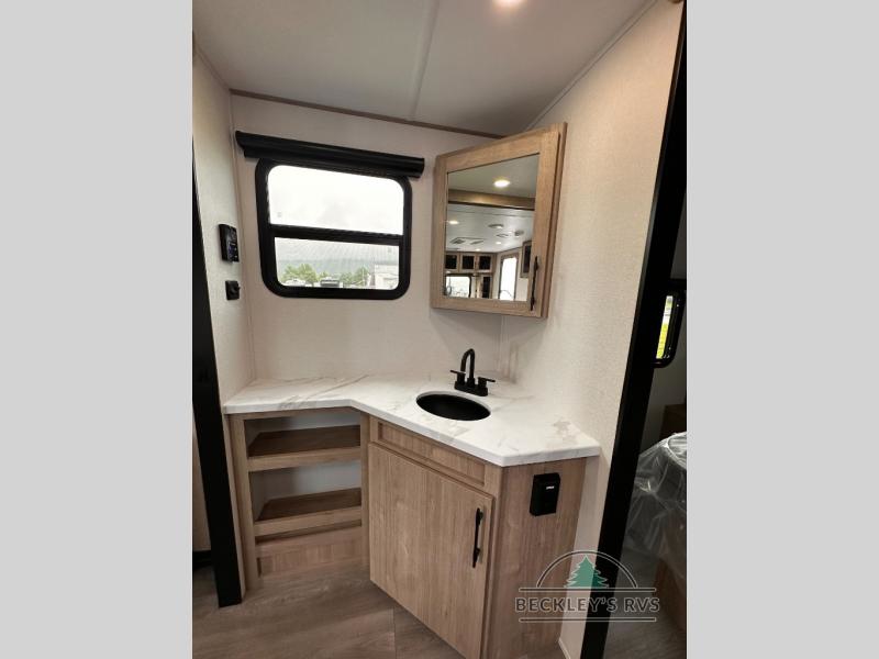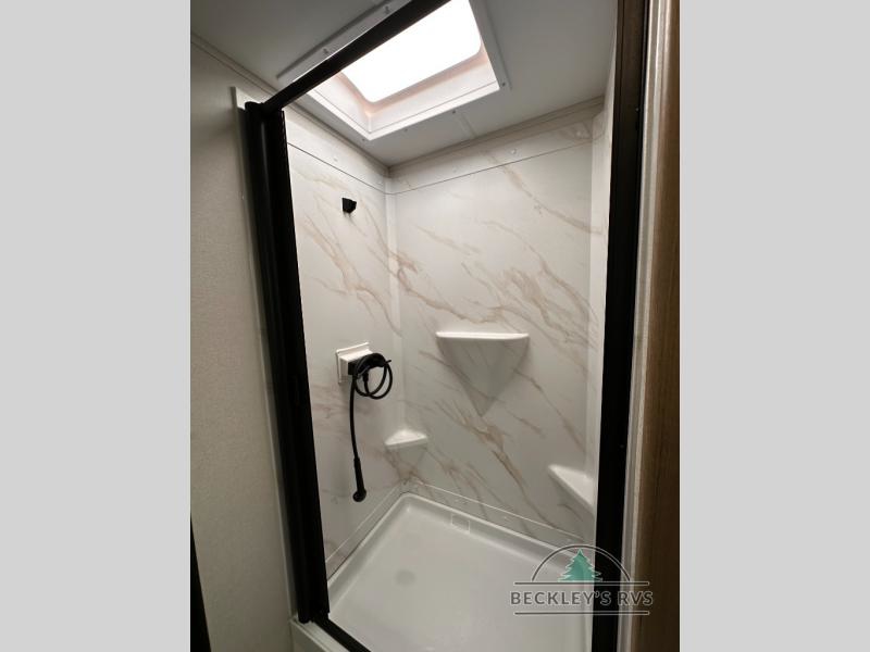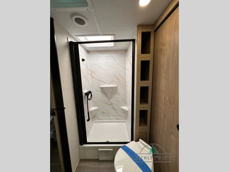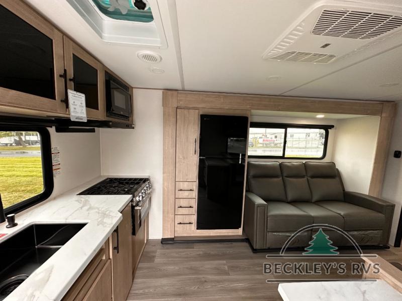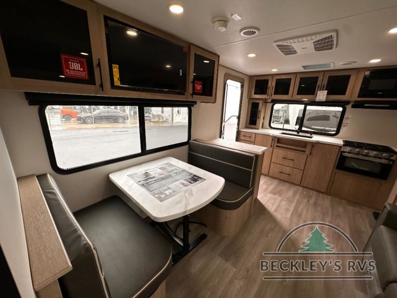 Treat yourself to a weekend of fun in this Imagine XLS travel trailer! Whether it's just you and your spouse, or you've chosen to bring along a group of friends, this trailer will meet the need. The front bedroom can sleep two people on the walk-around queen-size bed. The bedroom is quite functional because it not only contains the second exterior entry door, but it also has a private entrance into the walk-through bathroom since it is located on the other side of the bathroom. The booth dinette is functional too because it can transform from a dining location into a sleeping location, and the theater seating is directly across from the LED TV for easy viewing.