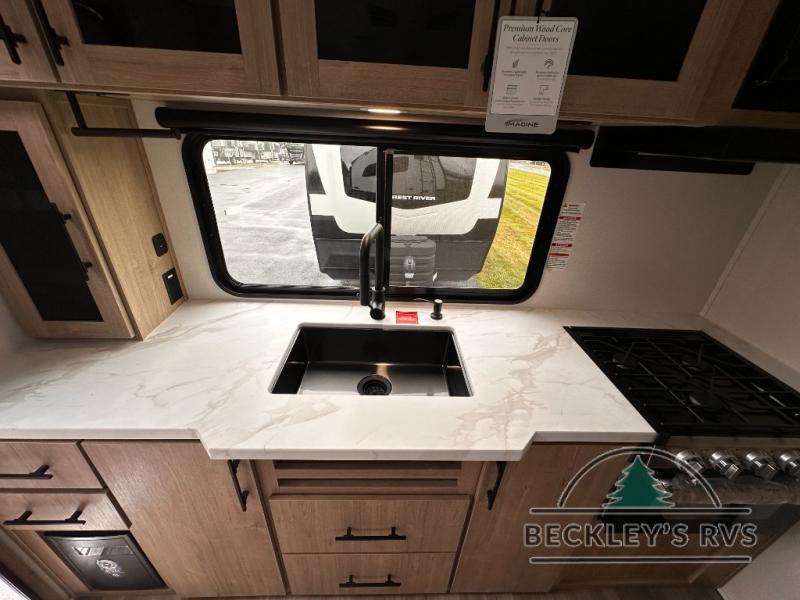 Let your imagination run wild with the possibilities that the Grand Design Imagine XLS travel trailer can provide! The Imagine XLS has been built with oversized tank capacities, an extra-large 2" fresh water drain valve, a ducted A/C system, a power tongue jack, and a heated and enclosed underbelly with suspended tanks. There is a designated heat duct to the subfloor and a residential ductless heating system throughout. For outdoor adventures, the electric awning with LED lights will enable you to stay protected, and the Tuff-Ply pass-thru flooring will withstand your many adventures. You will also love the XLS Solar Package that comes with a 200W roof mounted solar panel, a 40 Amp charge controller, a 12V 10 cu. ft. refrigerator, and roof mounted quick connect plugs!