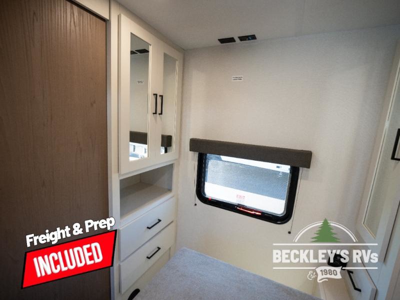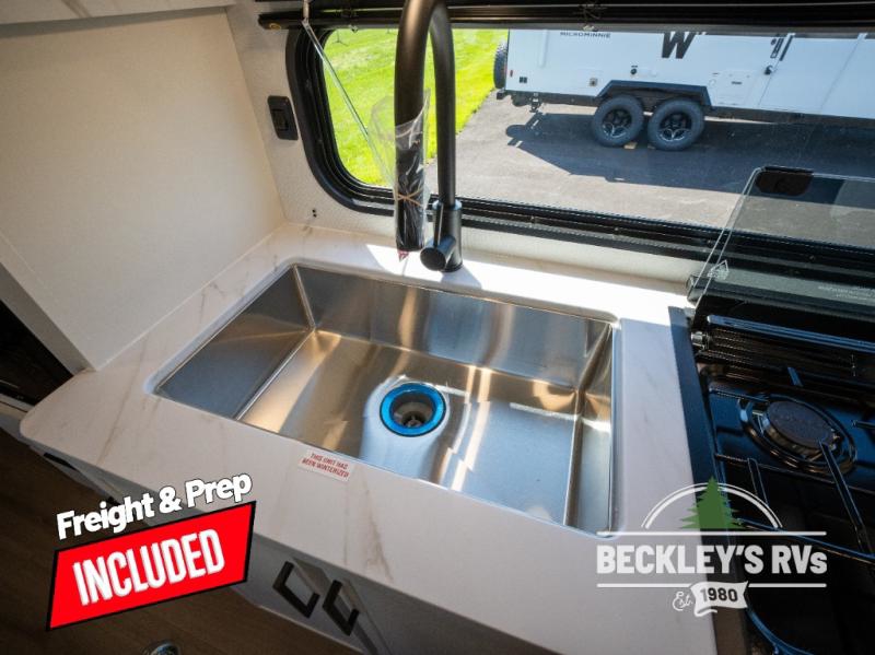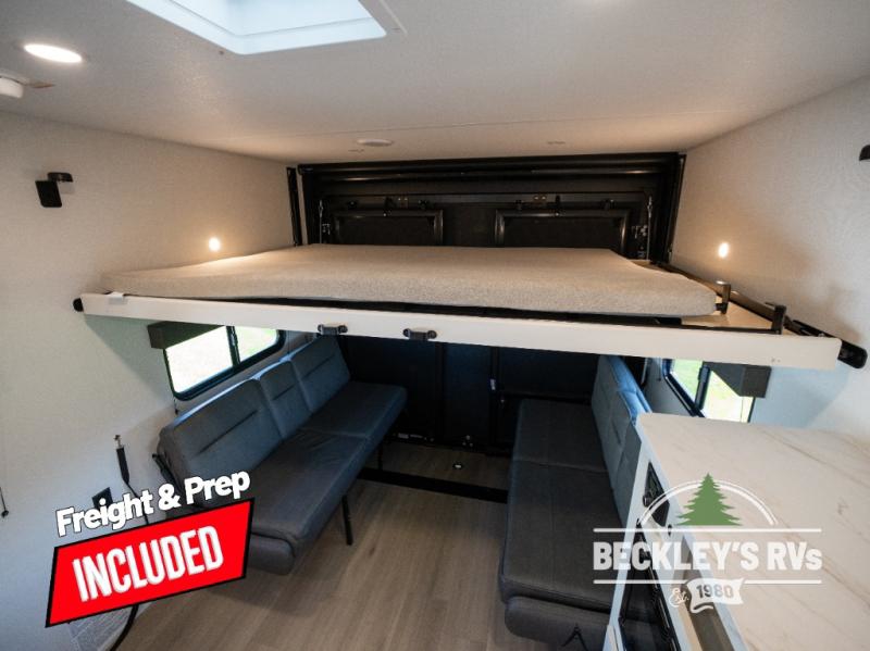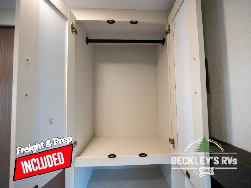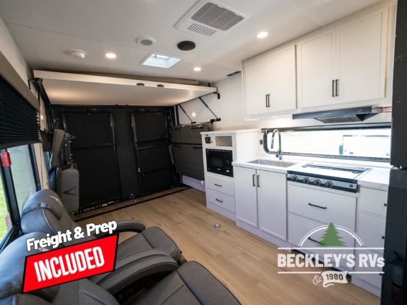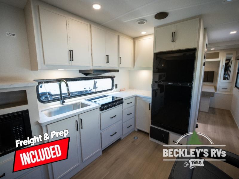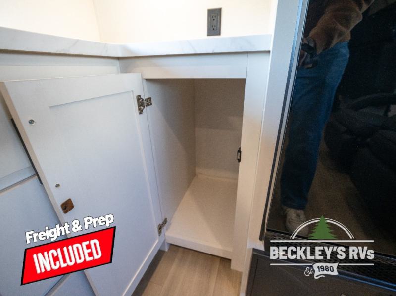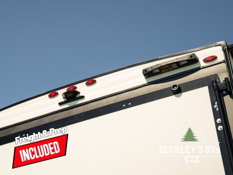 You will love this Momentum MAV toy hauler travel trailer! The front bedroom features a queen bed, and there is plenty of room to walk around. The sliding solid bedroom door helps with space. Overhead storage and a pair of nightstands are convenient storage, plus there is a wardrobe with both drawers and space to hang items. The kitchen offers a microwave, stainless steel sink, and an 8 cu. ft. 12V refrigerator. In the garage, you'll find rollover sofas with a table and a top bed for guests to sleep on. The ramp door/patio will provide additional living space once your toys are unloaded, and the pull down screen will keep bugs out!