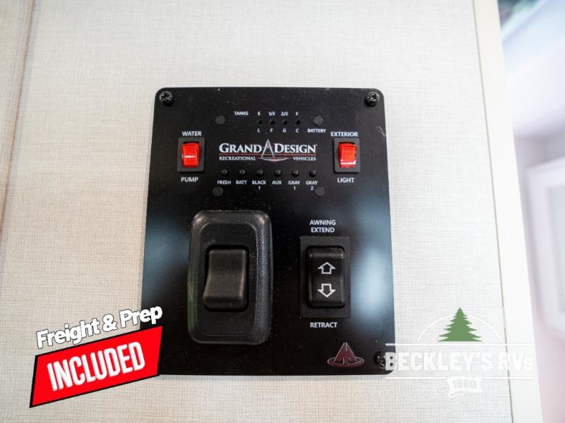 The Momentum MAV toy hauler travel trailers by Grand Design are designed to provide exactly what you need. The spacious garage provides tons of cargo space, with no wheel wells to get in the way. Additional storage includes magnetic storage door catches, and overhead consoles throughout. Conveniences like motion sensor lights and USB outlets will make your life easier, and you will be comfortable in all seasons with the 30K BTU furnace plus 15K BTU ducted air conditioning. The standard Solar Package comes with a 180W solar panel, a 40 Amp charge controller with Bluetooth, and a 12V refrigerator so you can go off-grid when the adventure calls for it.