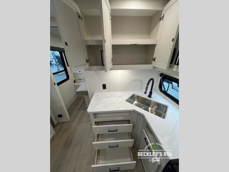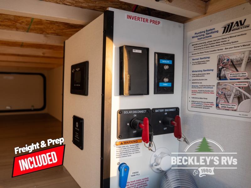 The Momentum MAV toy hauler travel trailers by Grand Design are designed to provide exactly what you need. The spacious garage provides tons of cargo space, with no wheel wells to get in the way. Additional storage includes magnetic storage door catches, and overhead consoles throughout. Conveniences like motion sensor lights and USB outlets will make your life easier, and you will be comfortable in all seasons with the 30K BTU furnace plus 15K BTU ducted air conditioning. The standard Solar Package comes with a 180W solar panel, a 40 Amp charge controller with Bluetooth, and a 12V refrigerator so you can go off-grid when the adventure calls for it.