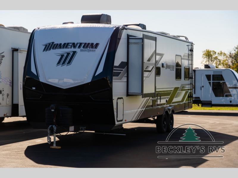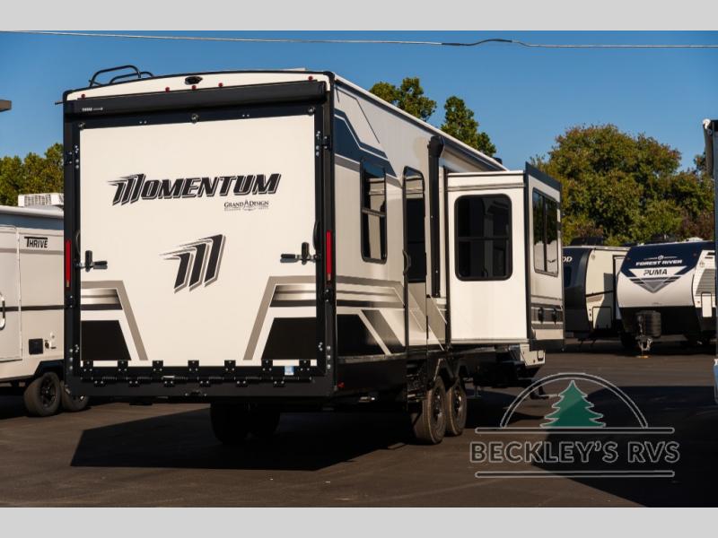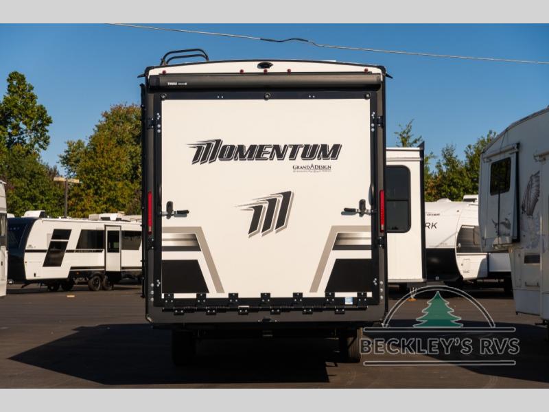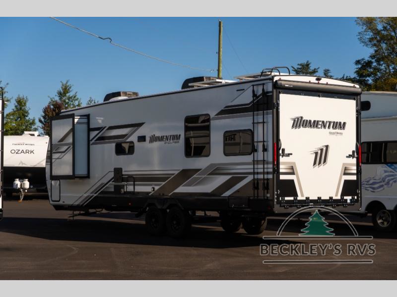Are you looking for adventure and fun? The Momentum G-Class toy hauler by Grand Design will help you find it! You can explore during any season you choose with the Insulation Package that includes a heated and enclosed underbelly with suspended tanks, a high-capacity furnace, a moisture barrier floor enclosure, and cabinet-mounted heat ducts. Each model includes a fuel station with an interior and exterior gauge, a dovetail rear rend, and 2,500-LB tie-downs anchored into the chassis. Throughout the Momentum G-Class interior, you'll enjoy many comfortable features like large panoramic windows, a shower skylight, USB chargers in the bedroom, and residential cabinetry.