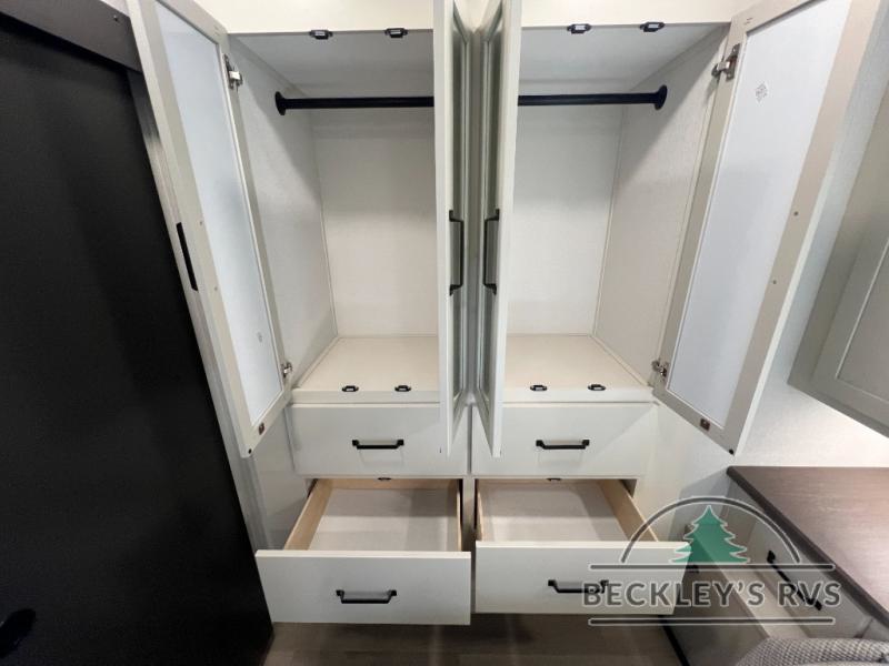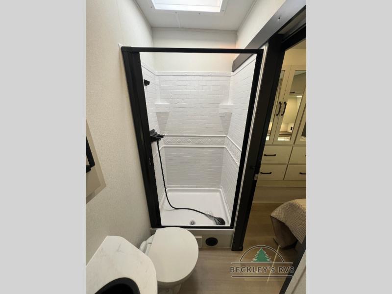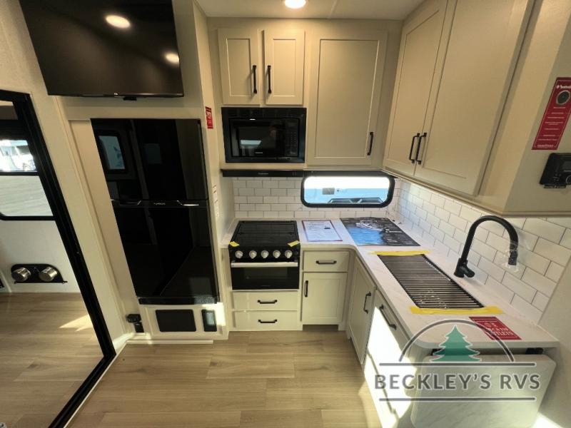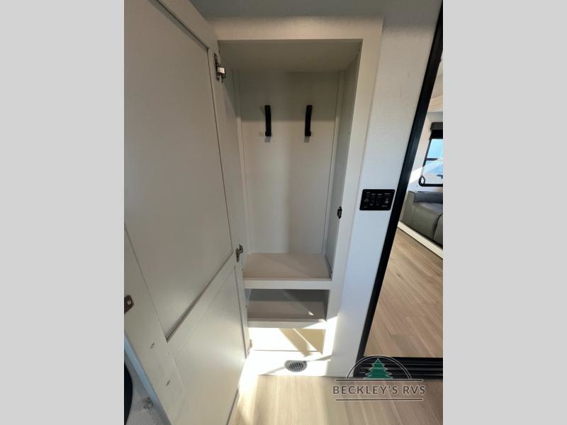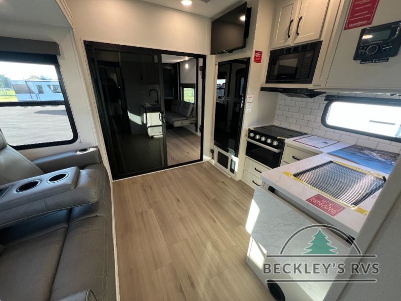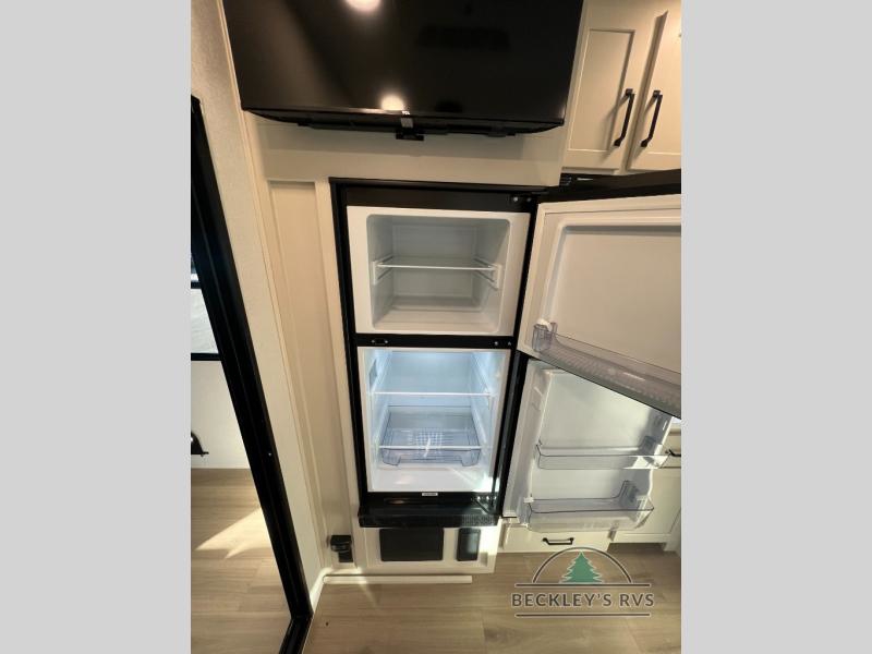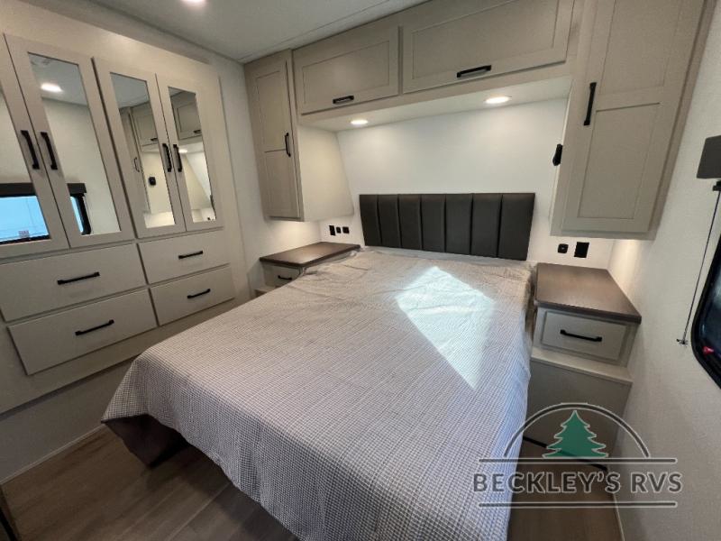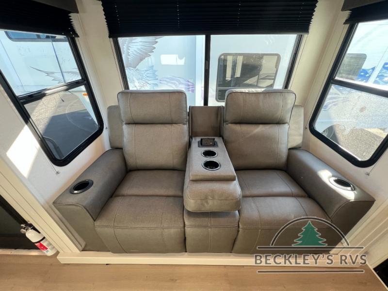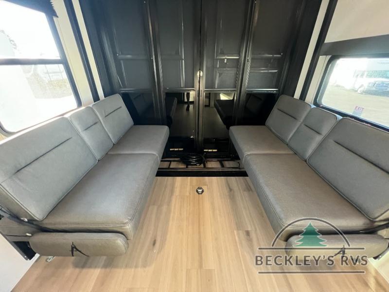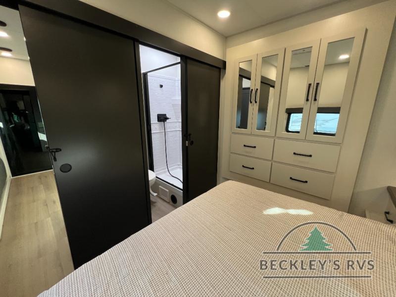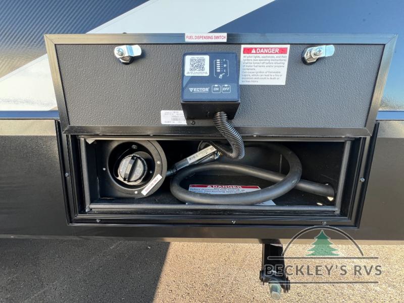 Start your engines for a fun weekend with your toys and your family in this Momentum G-Class toy hauler. The 11' separate garage includes Happi-Jac rollover sofas with a table and an optional top bed, plus a flip-up pet dish for your furry friends! There is even a second entry door which leads directly into the garage so that you don't have to walk through the entire trailer just to get to your cargo. In the front of this unit, you will have your own master suite that has private access to the residential walk-in shower in the dual-entry bathroom. The main living and kitchen area offers everything you need and would want, including theater seating and a TV with storage above the refrigerator!
