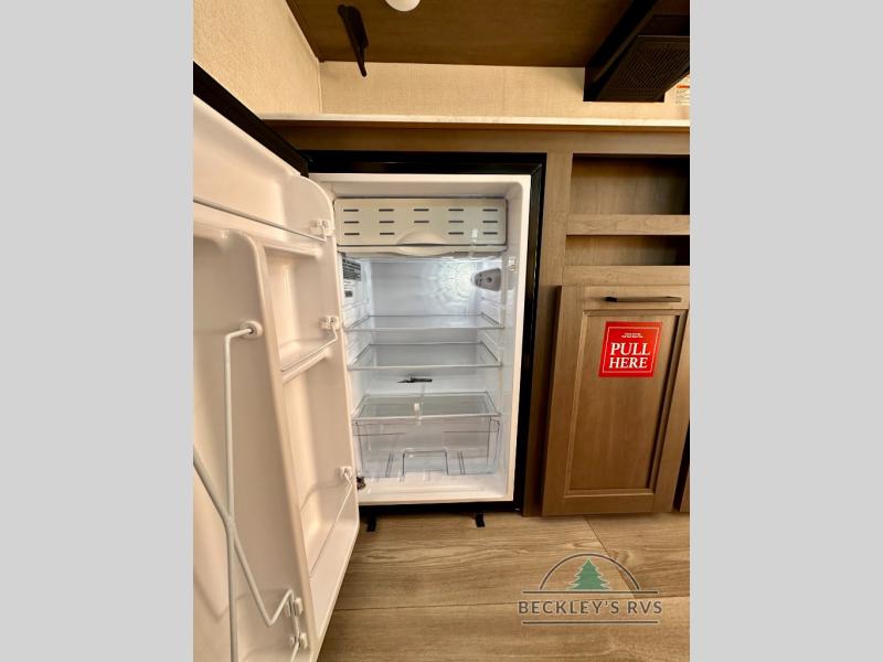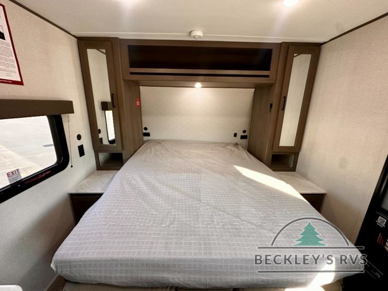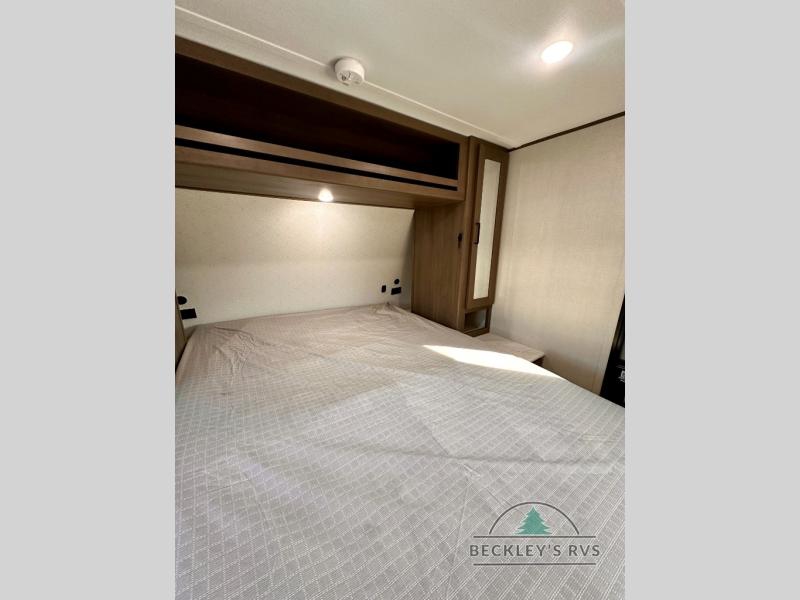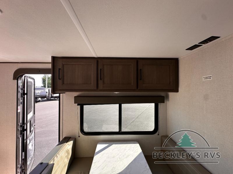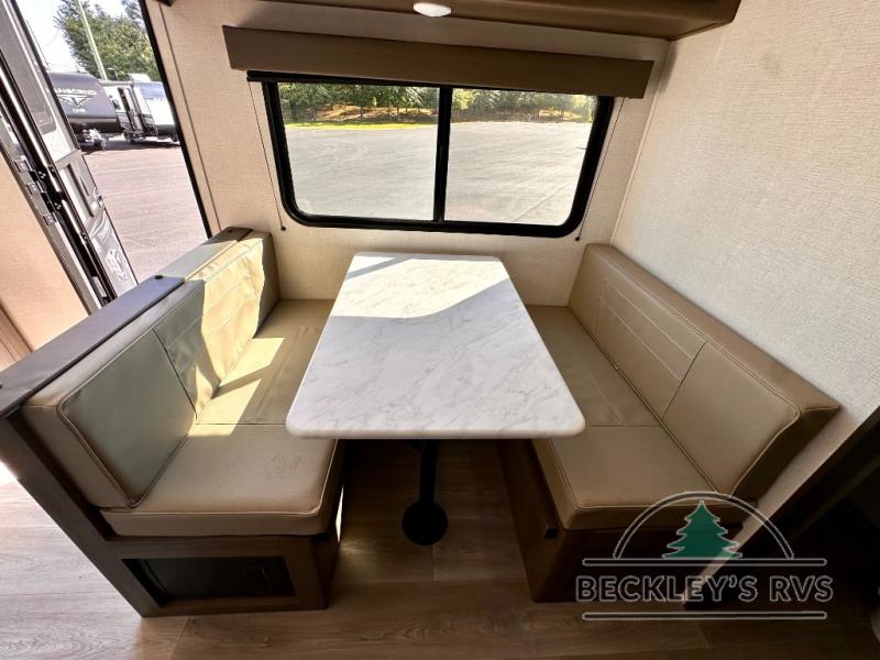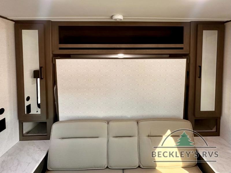 This is the perfect couple's trailer with versatile seating and sleeping space! You'll find a queen-size Murphy bed up front with storage space beside and above plus a full rear bath for added privacy. Once you've made lunch in the full kitchen, you can dine at the booth dinette, or take your plate outdoors to sit under the 10' power awning. You'll also find an unobstructed pass-thru storage outside that will be perfect for fishing poles, lawn chairs, tools and more!