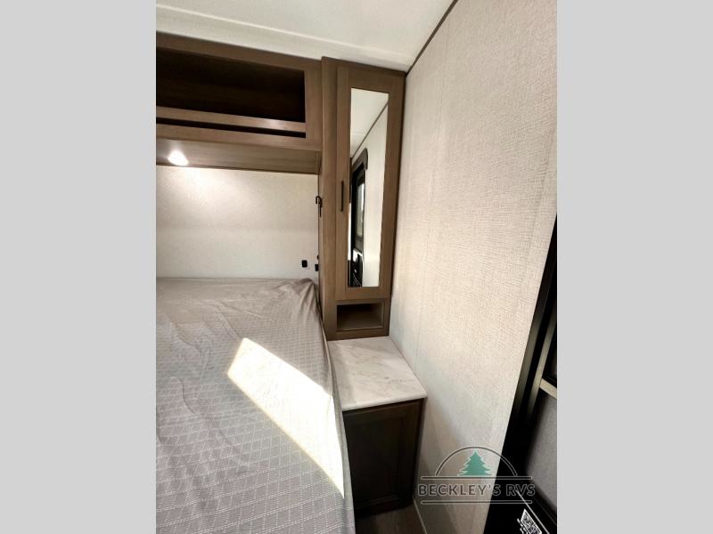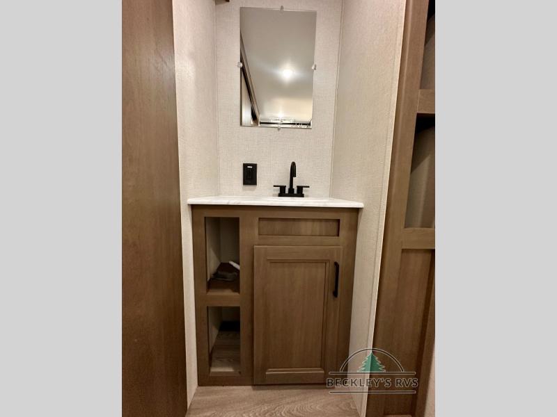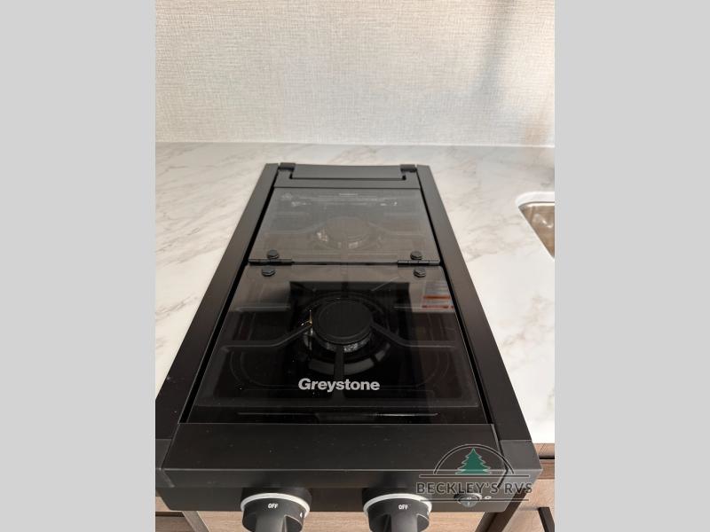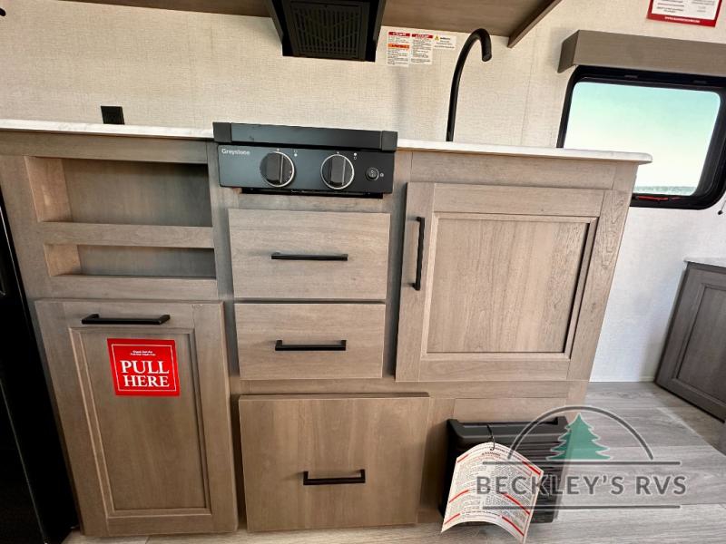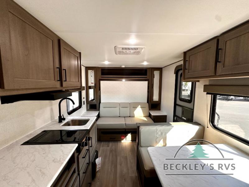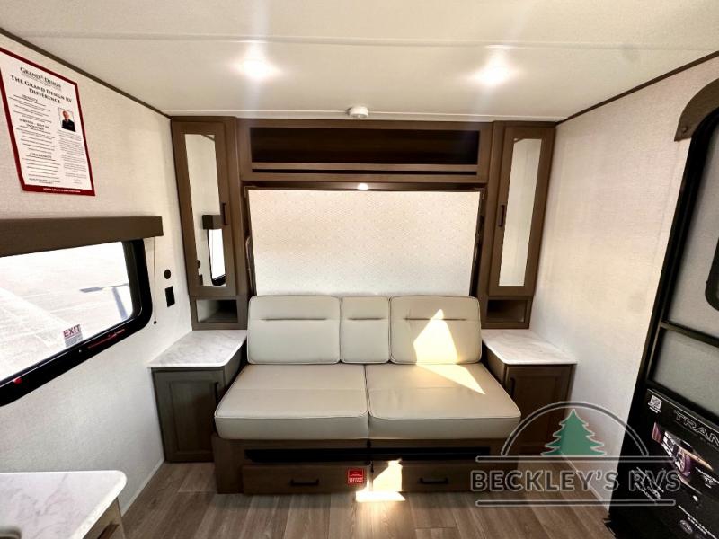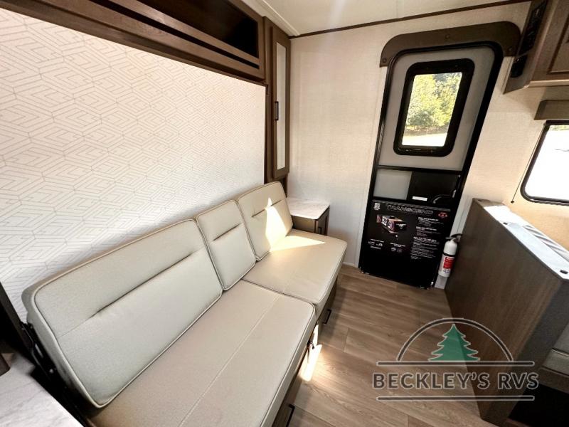 With any Transcend One travel trailer by Grand Design, you will enjoy lightweight towing thanks to their single-axle. There are many interior comforts to make camping easier than ever, such as recessed lighting, residential countertops, and a 6' 6" interior height. Each model is constructed with a heated and enclosed underbelly with suspended tanks, a moisture barrier floor enclosure, and Thermofoil over the roof and front cap for added protection. And a JBL sound system will let you listen to tunes as you visit under the power awning with a Fusion light!
