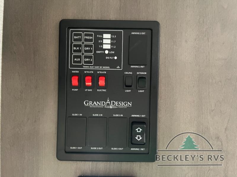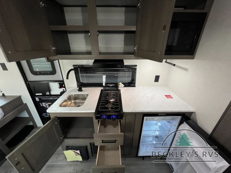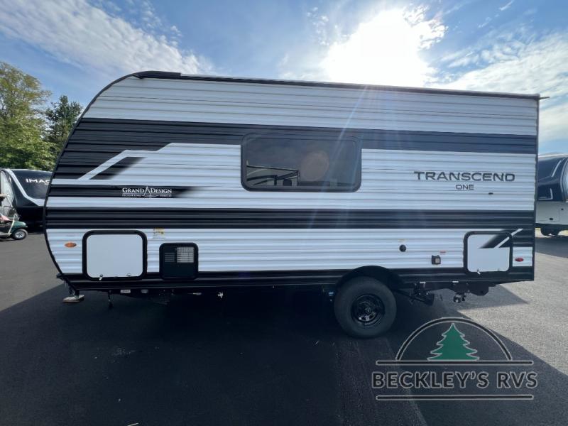 With any Transcend One travel trailer by Grand Design, you will enjoy lightweight towing thanks to their single-axle. There are many interior comforts to make camping easier than ever, such as recessed lighting, residential countertops, and a 6' 6" interior height. Each model is constructed with a heated and enclosed underbelly with suspended tanks, a moisture barrier floor enclosure, and Thermofoil over the roof and front cap for added protection. And a JBL sound system will let you listen to tunes as you visit under the power awning with a Fusion light!