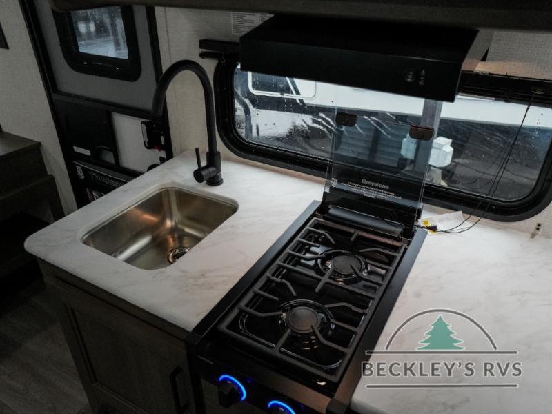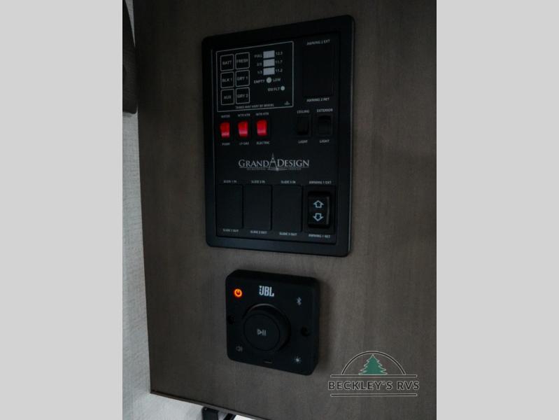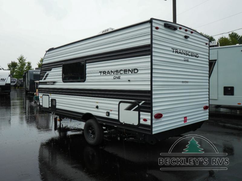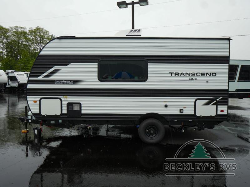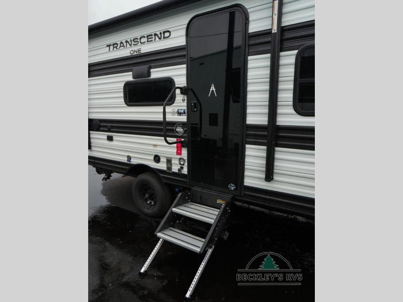 With any Transcend One travel trailer by Grand Design, you will enjoy lightweight towing thanks to their single-axle. There are many interior comforts to make camping easier than ever, such as recessed lighting, residential countertops, and a 6' 6" interior height. Each model is constructed with a heated and enclosed underbelly with suspended tanks, a moisture barrier floor enclosure, and Thermofoil over the roof and front cap for added protection. And a JBL sound system will let you listen to tunes as you visit under the power awning with a Fusion light!