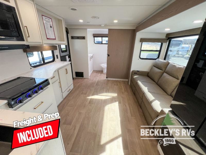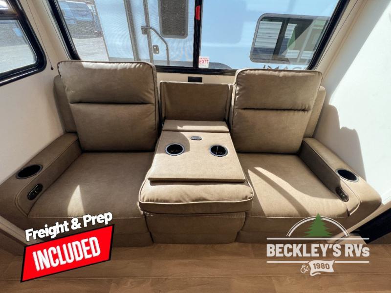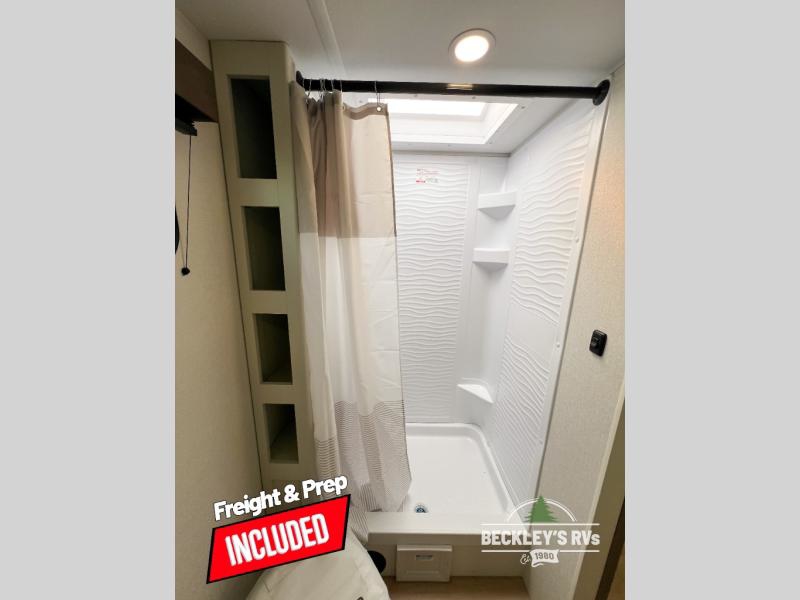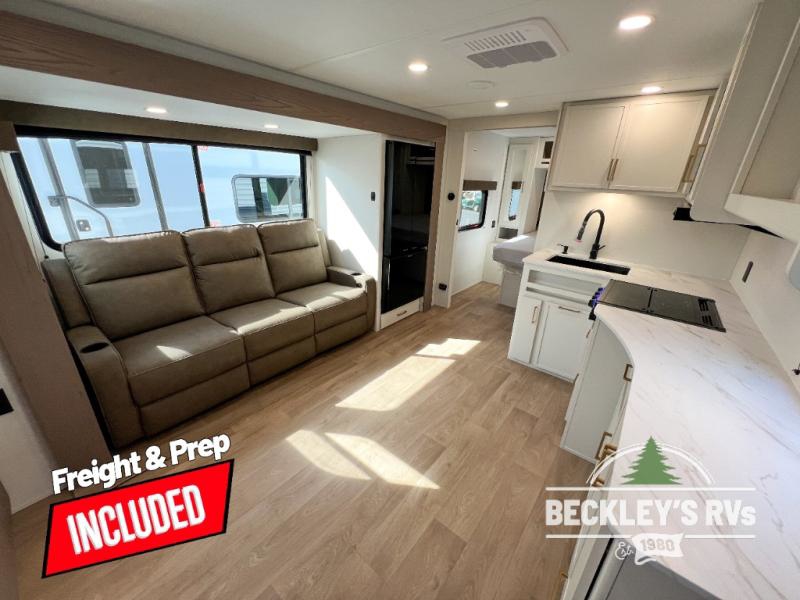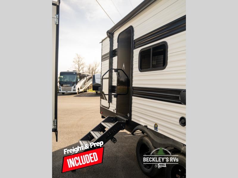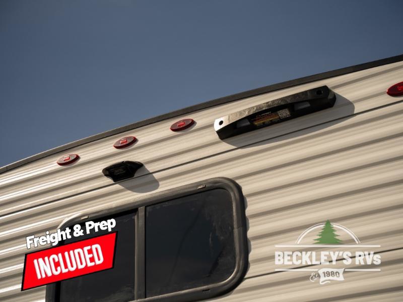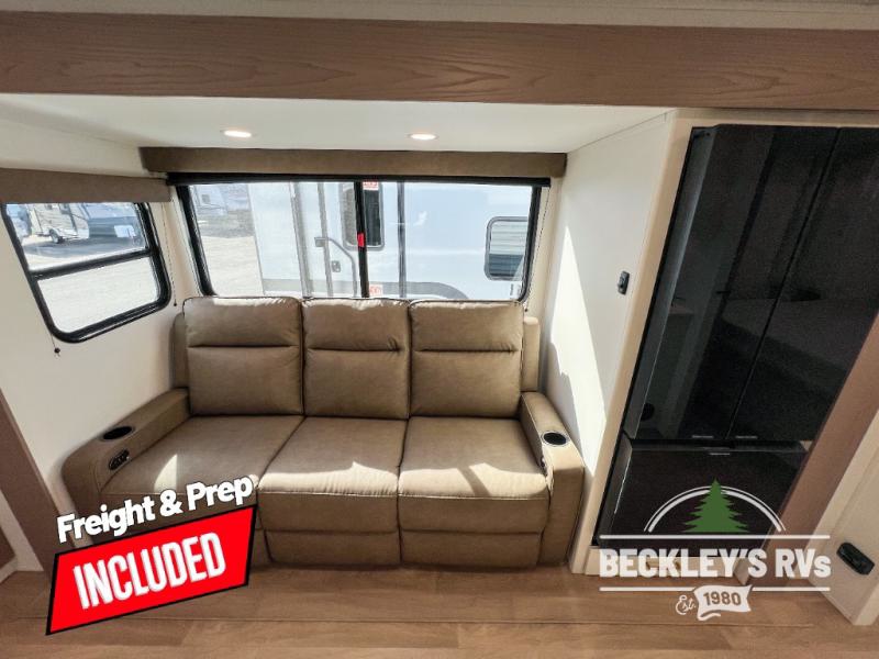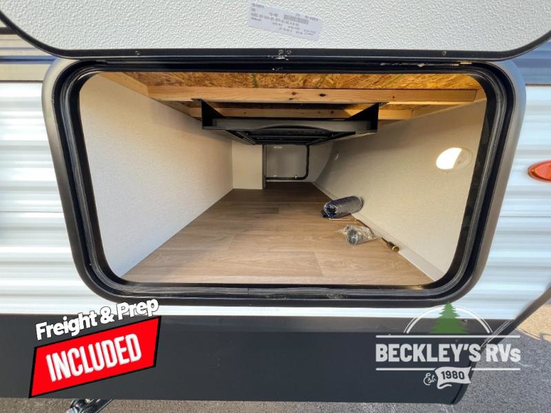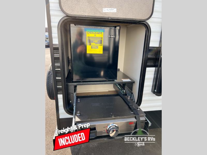 Pack your bags and head for the campground in this spacious travel trailer! Once you arrive, you can unload the pass-thru storage, then make lunch on the exterior griddle with a 1.7 cu. ft. exterior refrigerator. The U-shaped dinette slide will provide a place to dine if you decide not to stay outside under the 16' power awning. Optional theater seats can be chosen in place of the dinette for even more comfort! You'll sleep soundly on the queen bed in the front bedroom, and the full rear bath lets you freshen up each day.