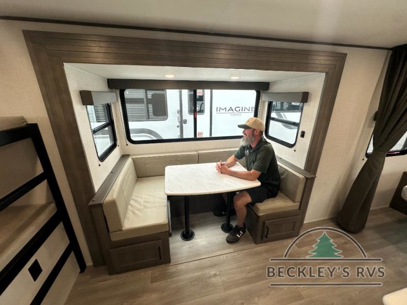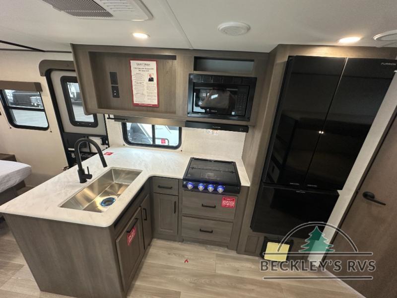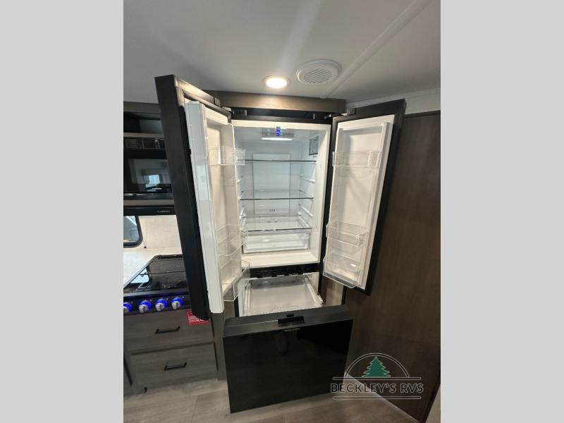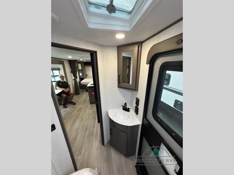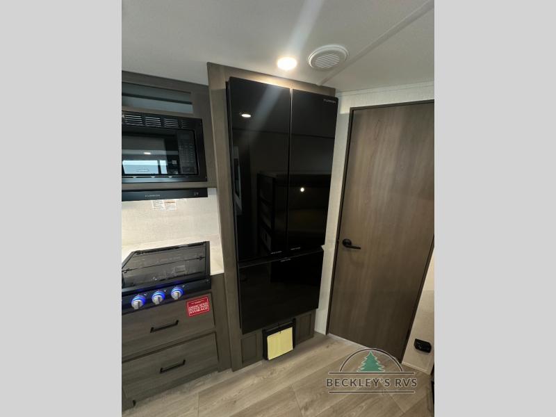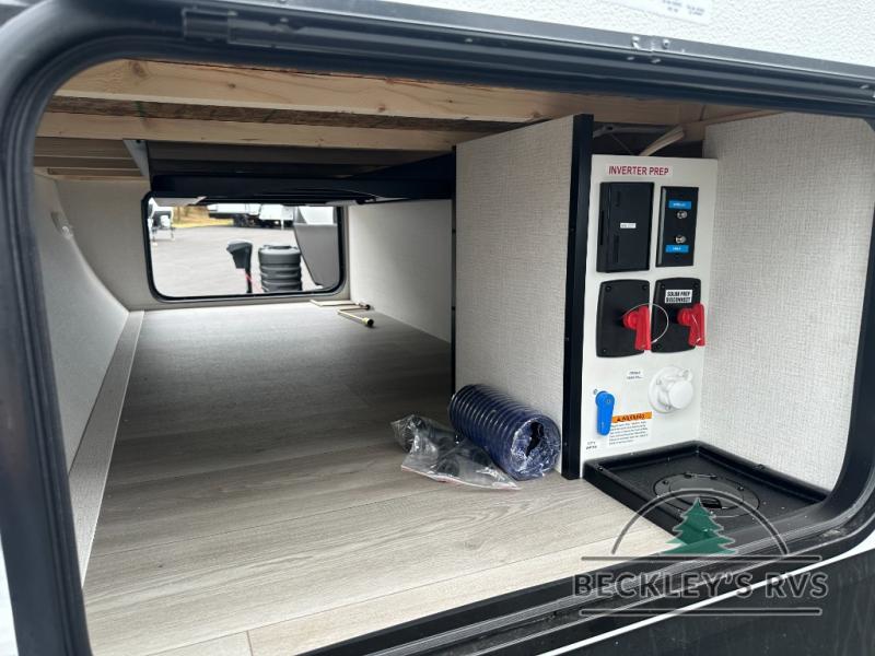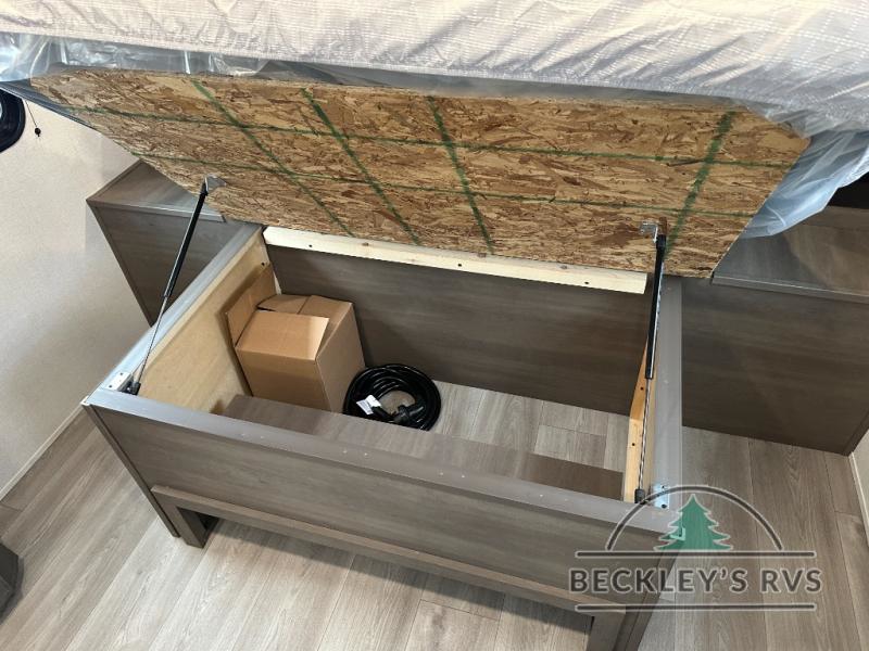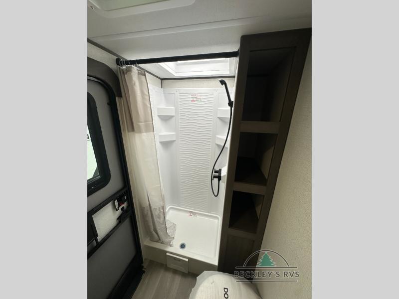 This fantastic travel trailer is designed to provide the ultimate in comfort, convenience, and adventure! The double-size bunk beds are perfect for kids, providing ample sleeping space and an under-bed storage space for all your belongings. The full bathroom features a linen closet, providing convenient storage for towels and toiletries. In the kitchen area, the U-shaped dinette is a great spot for creating memories that will last a lifetime, the refrigerator keeps your food and drinks fresh, while the microwave provides a quick and easy way to prepare meals. And for major convenience, the pull-out trash makes cleaning up a simple task. Take a nap in the comfortable front queen bed, which is a serene retreat, providing a comfortable spot to rest and relax. Jump to the exterior in a comfortable way with the double entry/exit door providing added convenience and flexibility, while the exterior awning provides shade and protection from the elements. The pass-through storage offers ample space for your outdoor gear and equipment.