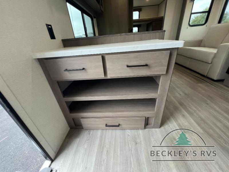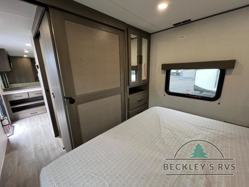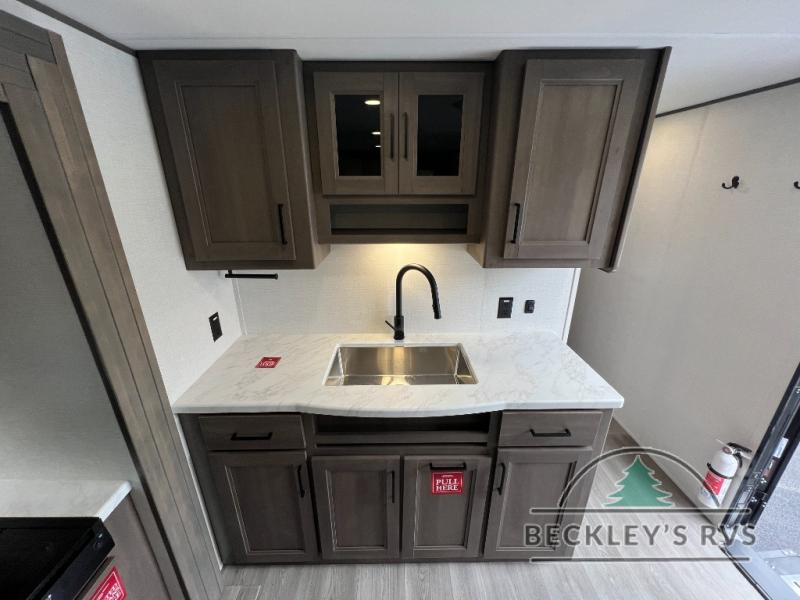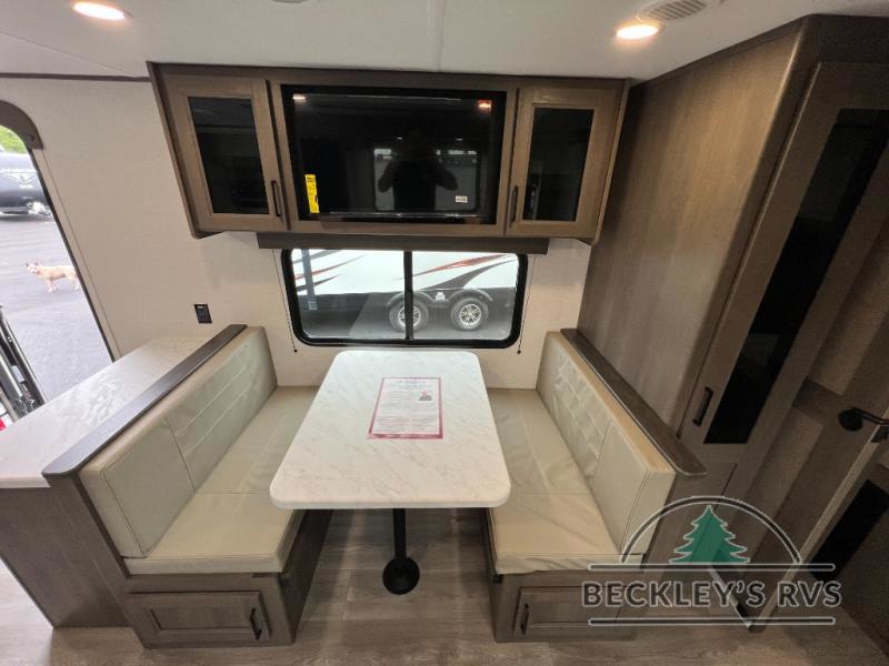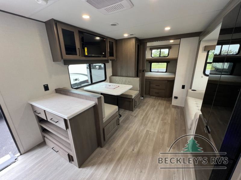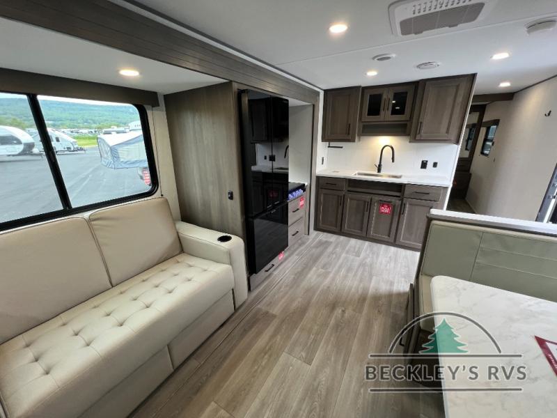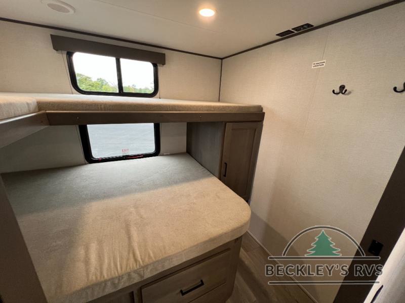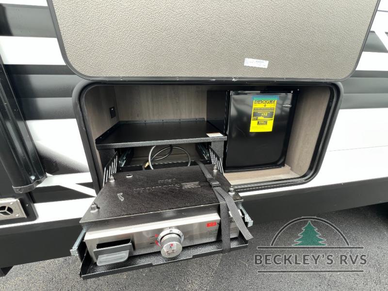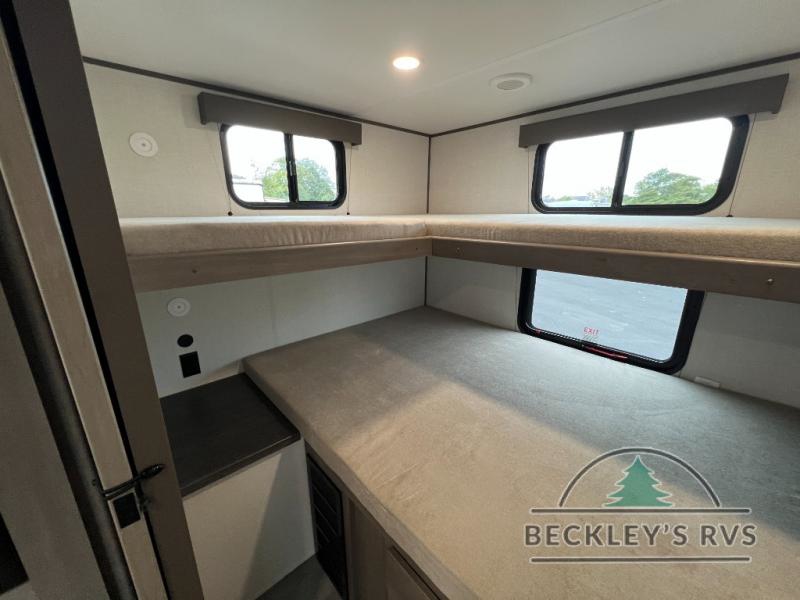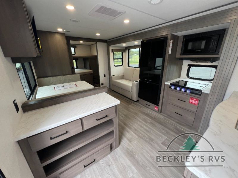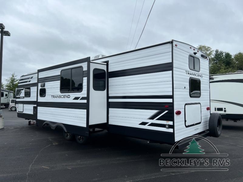 You're going to love every minute spent in this Transcend travel trailer! Your guests or the little ones will have the rear bunkhouse all to themselves that includes a residential full-size bed and two bunks, storage drawers, and TV prep if you want to add a television here. You'll enjoy your own space up front in the private bedroom with a queen bed, storage drawers, and TV prep here also. The combined kitchen and living area includes a sleeper sofa with an optional theater seating, a booth dinette where you can dine together, and a 32" TV for movie nights! The exterior is just as accommodating with its 20' awning, rear storage, plus exterior griddle and refrigerator!