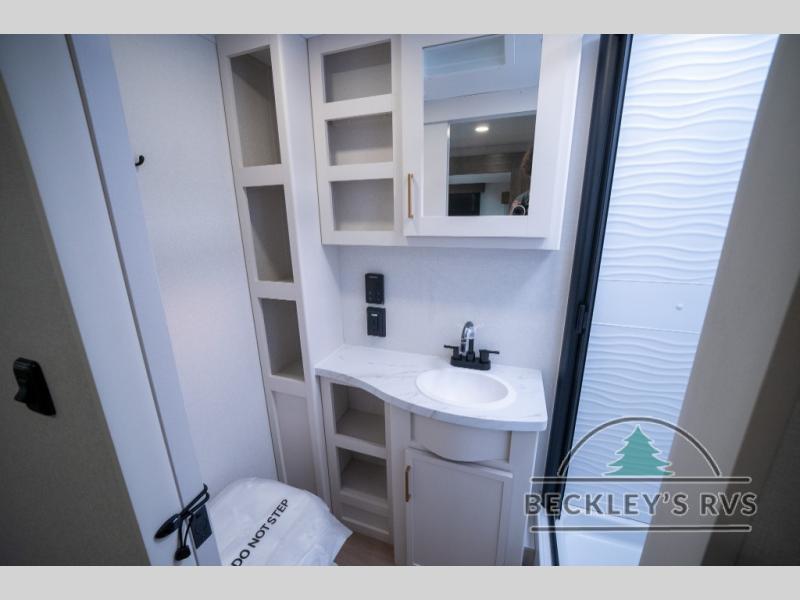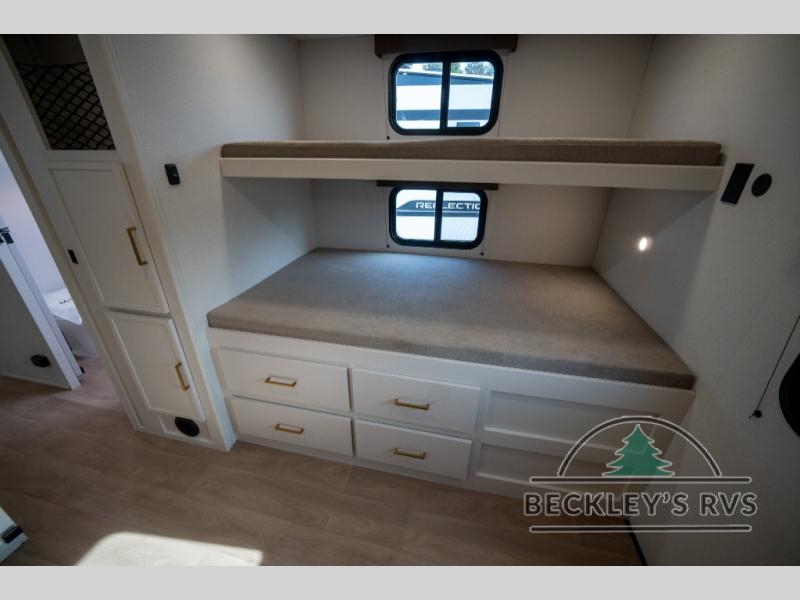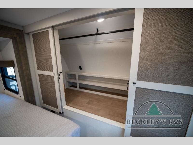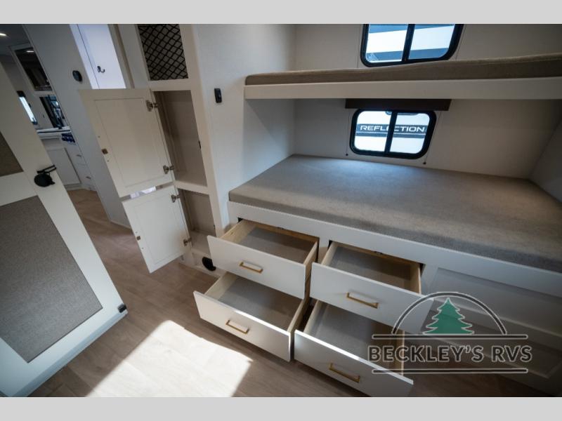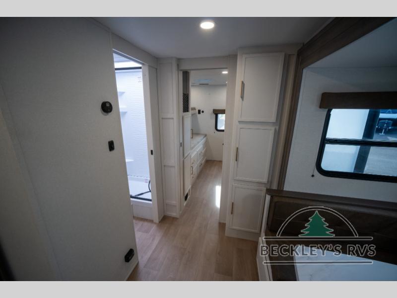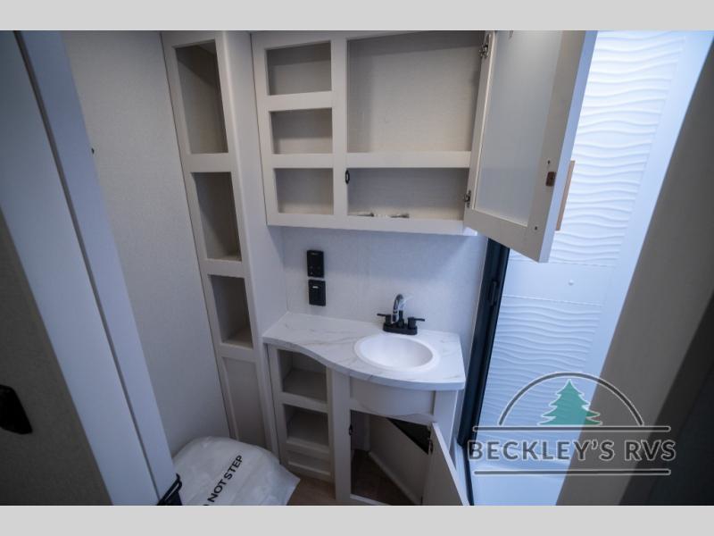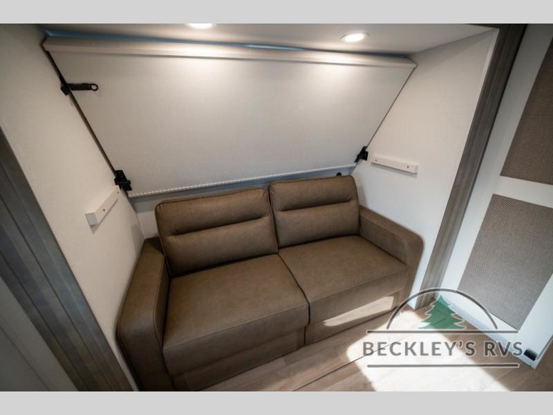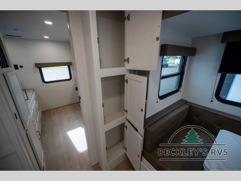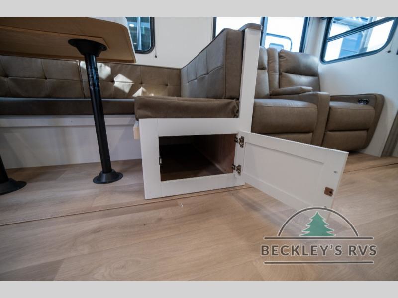 If you're looking for a travel trailer that can house your whole gang, this unit is the one! The rear private bunkhouse can sleep up to five since there is a sleeper sofa and three bunks, plus there are storage drawers for your guests' things. A front private bedroom will be perfect for the owners with a queen bed slide out and spacious front closet with washer and dryer prep! Whether you cook outside on the exterior griddle or inside on the three burner range, you'll be able to make your best meals. There is also a 12V French door refrigerator with a glass front and bottom freezer and a convection microwave/combo air fryer to enjoy some crispy fries! A U-shaped dinette and 60" sleeper sofa within the living room slide provides even more seating and sleeping space, or you can choose the optional theater seating!