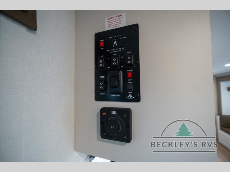 With any Transcend travel trailer by Grand Design, you will enjoy upscale appointments and convenient amenities to make each camping experience one to remember! The Quad Seal technology, residential insulated walls, plus heated and enclosed underbelly with suspended tanks make these units solid and durable. There is a black automotive glass door outside, along with a Safe-T-Rail assist on the main entry door, backup camera prep, and a universal docking station. JBL interior and exterior speakers plus a JBL head unit will let you listen to your favorite tunes as you visit under the power awning with LED strip lights. Inside, you'll enjoy multiple outlets to keep your gadgets charged, thermoformed and seamless countertops, and a 6' 6" interior height so you won't feel closed in. The Solar Prep Package will allow you to enjoy off-grid capabilities with a 200W solar panel, which is wired for up to 600W, a 30 AMP Bluetooth solar controller, a 2000W inverter prep, and more!