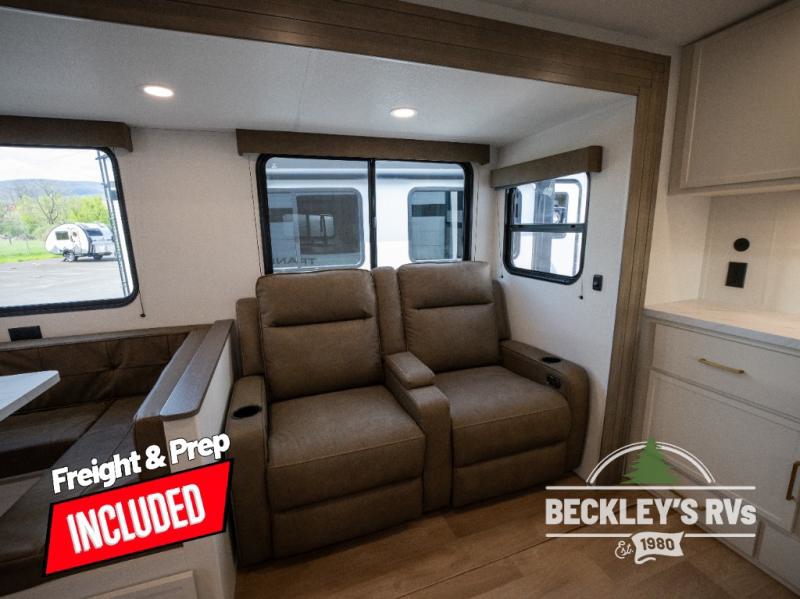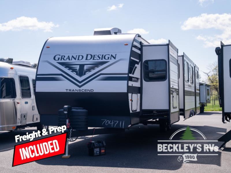 With any Transcend travel trailer by Grand Design, you will enjoy upscale appointments and convenient amenities to make each camping experience one to remember! The Quad Seal technology, residential insulated walls, plus heated and enclosed underbelly with suspended tanks make these units solid and durable. There is a black automotive glass door outside, along with a Safe-T-Rail assist on the main entry door, backup camera prep, and a universal docking station. JBL interior and exterior speakers plus a JBL head unit will let you listen to your favorite tunes as you visit under the power awning with LED strip lights. Inside, you'll enjoy multiple outlets to keep your gadgets charged, thermoformed and seamless countertops, and a 6' 6" interior height so you won't feel closed in. The Solar Prep Package will allow you to enjoy off-grid capabilities with a 200W solar panel, which is wired for up to 600W, a 30 AMP Bluetooth solar controller, a 2000W inverter prep, and more!