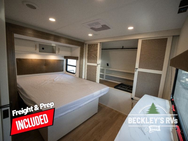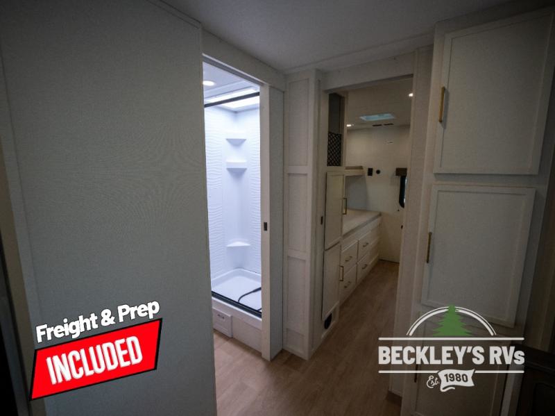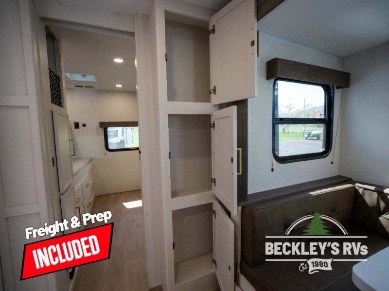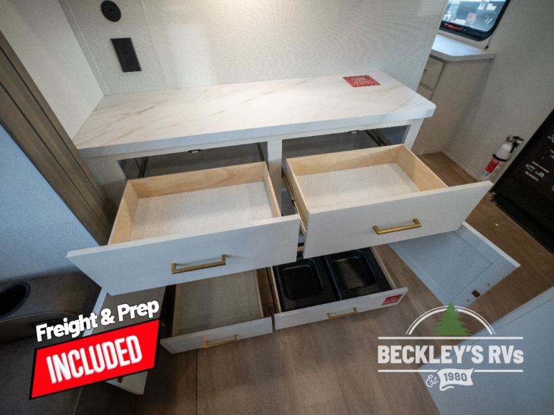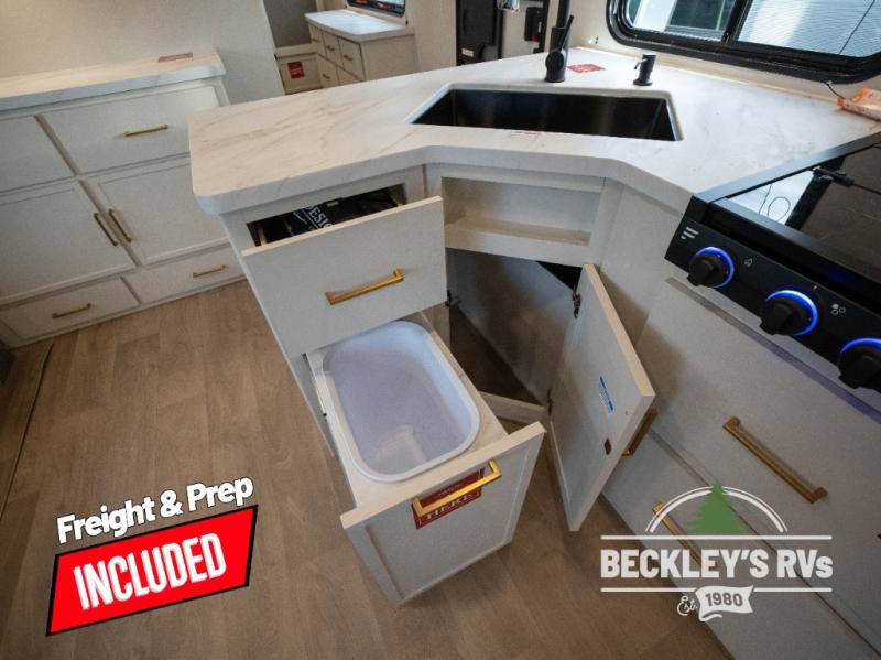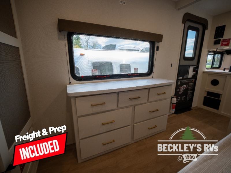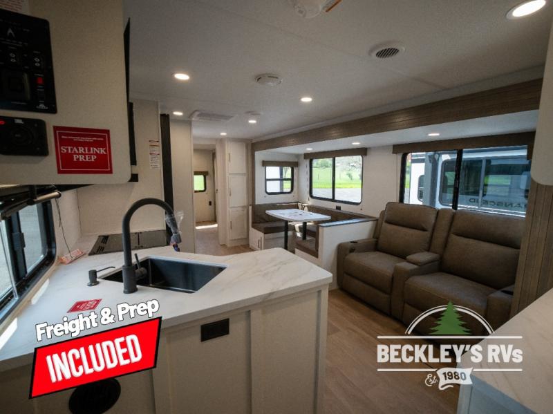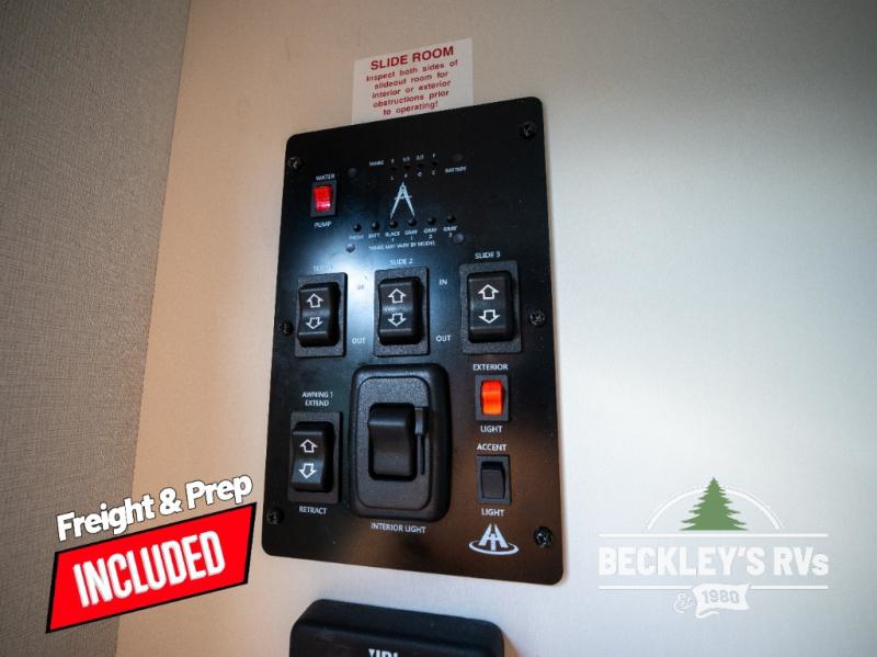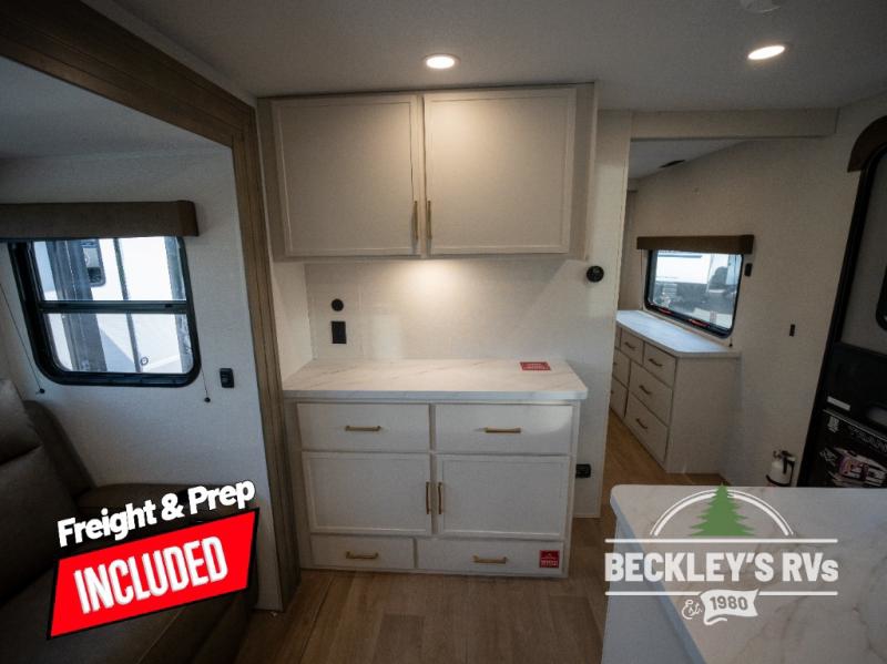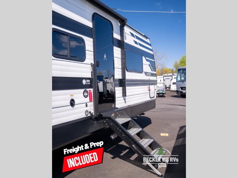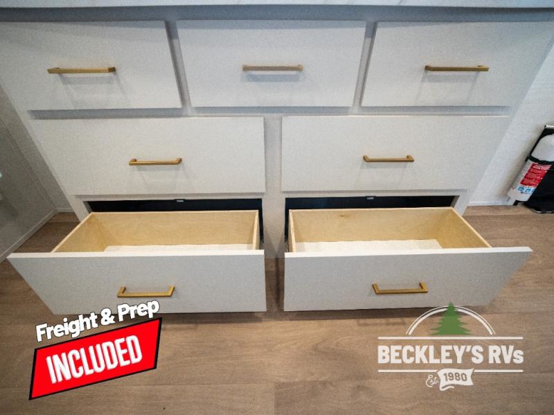 If you're looking for a travel trailer that can house your whole gang, this unit is the one! The rear private bunkhouse can sleep up to five since there is a sleeper sofa and three bunks, plus there are storage drawers for your guests' things. A front private bedroom will be perfect for the owners with a queen bed slide out and spacious front closet with washer and dryer prep! Whether you cook outside on the exterior griddle or inside on the three burner range, you'll be able to make your best meals. There is also a 12V French door refrigerator with a glass front and bottom freezer and a convection microwave/combo air fryer to enjoy some crispy fries! A U-shaped dinette and 60" sleeper sofa within the living room slide provides even more seating and sleeping space, or you can choose the optional theater seating!
