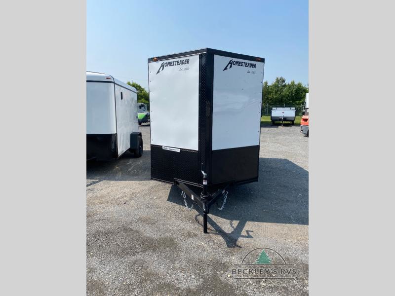 In any Homesteader Trailers Intrepid cargo trailer, you will find an exciting series that is packed full of standard features that are certain to turn your head! Some of the standard features include: a 2' V-nose with an ATP point, an aluminum exterior with baked enamel finish, and a one-piece aluminum roof. Whether they are used for a small business, a motorcycle enthusiast, a flea marketer, or a wide array of other needs, the Intrepid is ready for any occupation. Each unit also has an interior light, a 3/4" exterior grade plywood floor, and a 3/8" plywood interior wall liner.