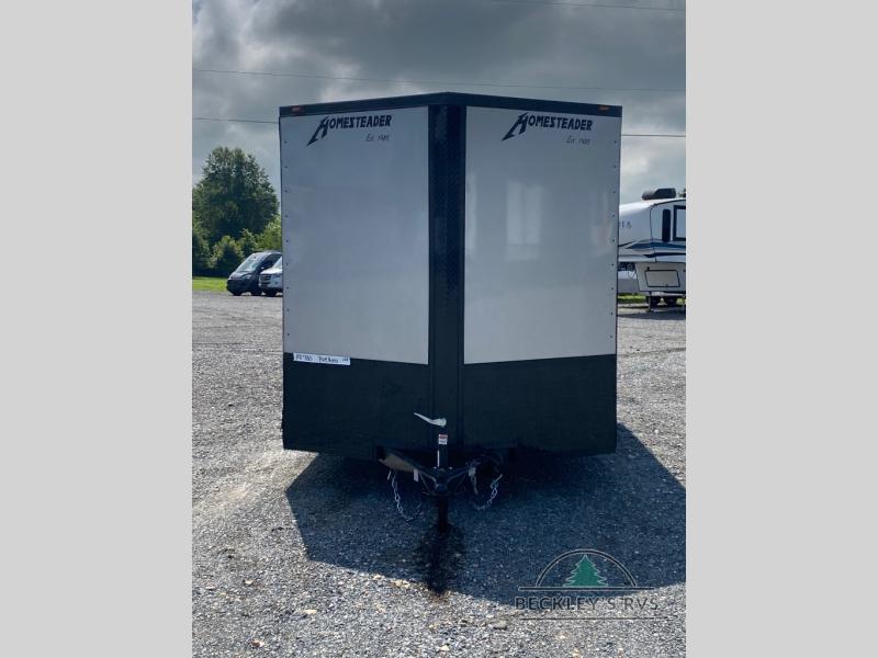 In any Homesteader Trailers Intrepid cargo trailer, you will find an exciting series that is packed full of standard features that are certain to turn your head! Some of the standard features include: a 2' V-nose with an ATP point, an aluminum exterior with baked enamel finish, and a one-piece aluminum roof. Whether they are used for a small business, a motorcycle enthusiast, a flea marketer, or a wide array of other needs, the Intrepid is ready for any occupation. Each unit also has an interior light, a 3/4" exterior grade plywood floor, and a 3/8" plywood interior wall liner.