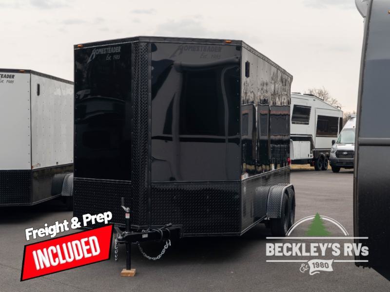 In any Homesteader Trailers Intrepid cargo trailer, you will find an exciting series that is packed full of standard features that are certain to turn your head! Some of the standard features include: a 2' V-nose with an ATP point, an aluminum exterior with baked enamel finish, and a one-piece aluminum roof. Whether they are used for a small business, a motorcycle enthusiast, a flea marketer, or a wide array of other needs, the Intrepid is ready for any occupation. Each unit also has an interior light, a 3/4" exterior grade plywood floor, and a 3/8" plywood interior wall liner.