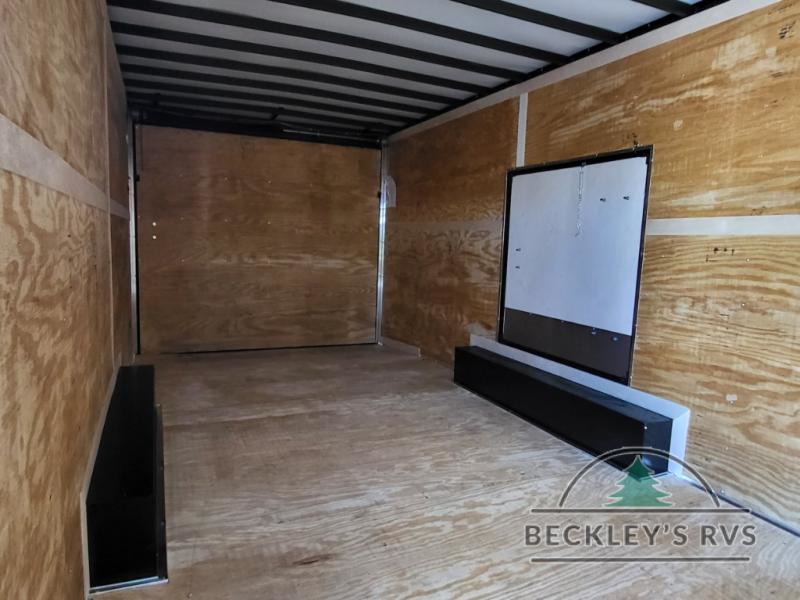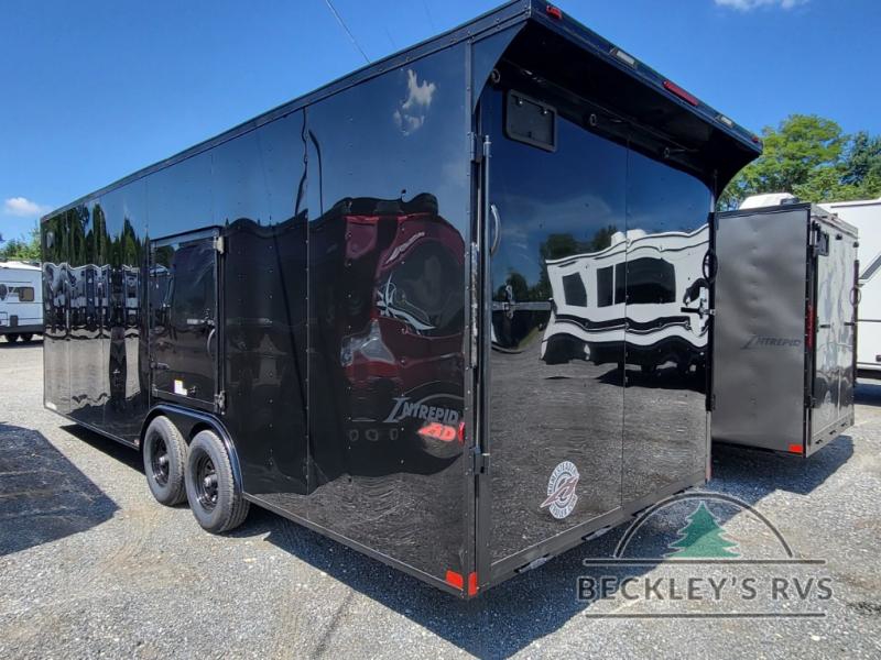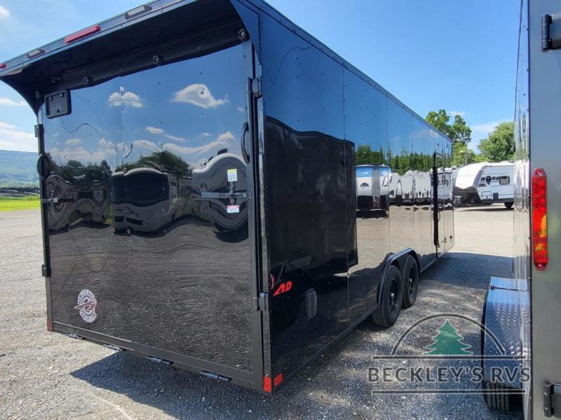 Intrepid HD series is built on a rigid 2×6 main frame. Floor cross members, tubular wall posts, and roof members are all 16” on center. Other standard features include 7’ interior height, .080 PolyCor siding, 5,200lb drop brake axles, 32” side entry door, rear ramp door with extension flap, rear loading and porch lights, and a 60” tongue with adjustable 2&5/16” coupler.