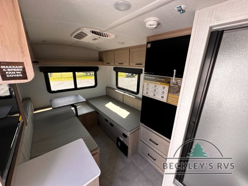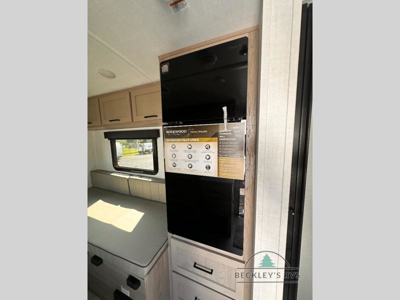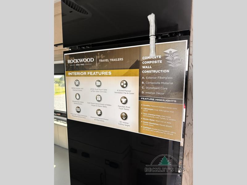 With any Rockwood GEO Pro travel trailer by Forest River you will enjoy easy towing, durable construction, and off-road capabilities with larger 15" tires and a lift kit! Each model is constructed with complete composite wall construction for added strength and durability, and the torsion axle, Rubber-Ryde suspension will make towing easier than ever. Inside, you'll find sleek roller shades for added privacy, a 12V refrigerator and a microwave, plus a 20,000 BTU furnace to keep you warm during the colder camping months.