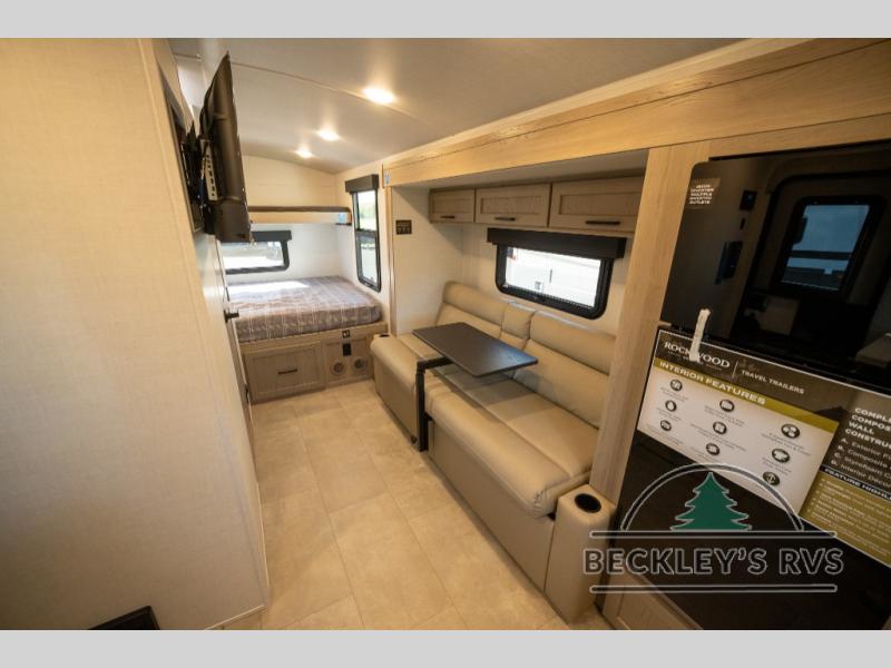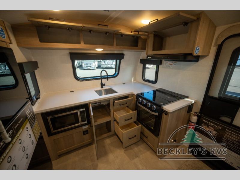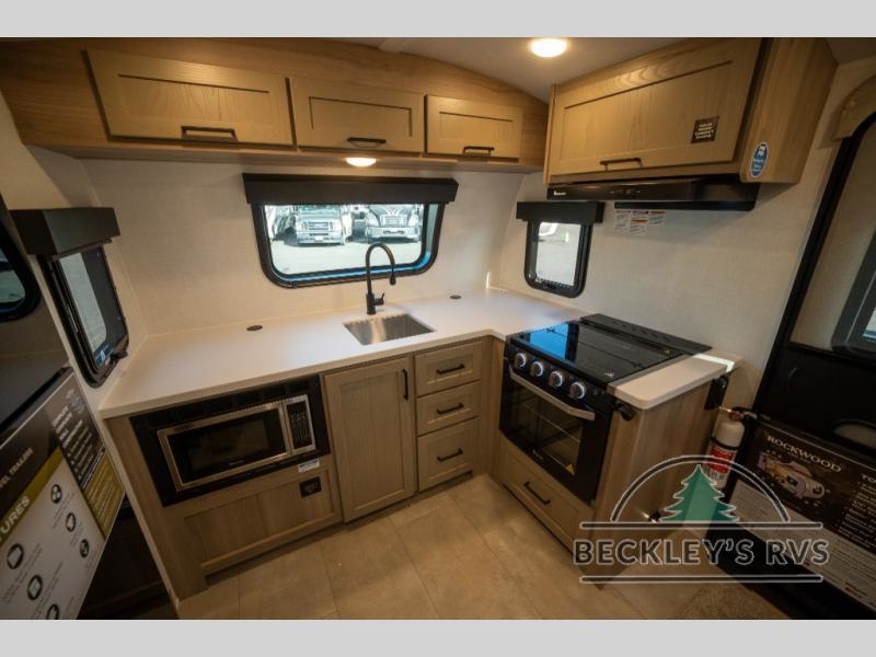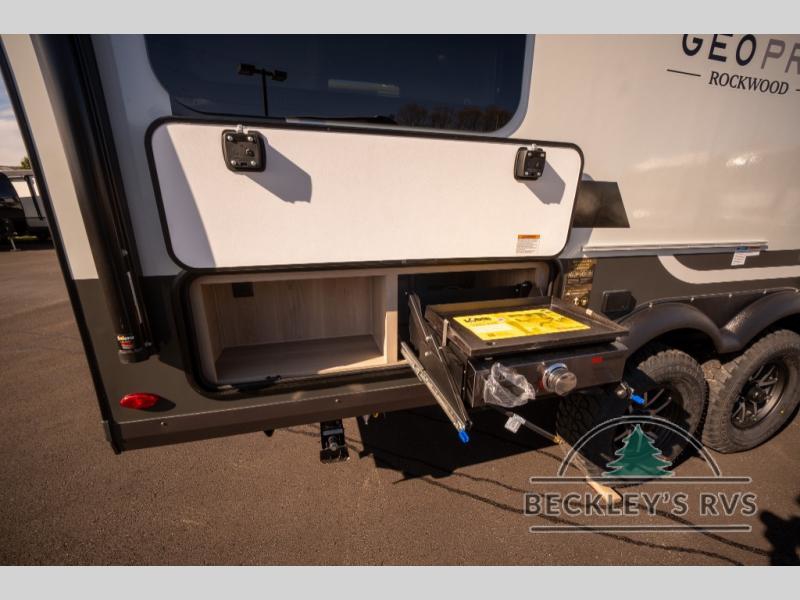 With any Rockwood GEO Pro travel trailer by Forest River you will enjoy easy towing, durable construction, and off-road capabilities with larger laminated roof! Each model is constructed with complete composite wall construction for added strength and durability, and Dexter® axles that will make towing easier than ever. Inside, you'll find sleek back up camera prep for added security, a refrigerator and a microwave, plus many other interior amenities that will make you feel at home on the road.