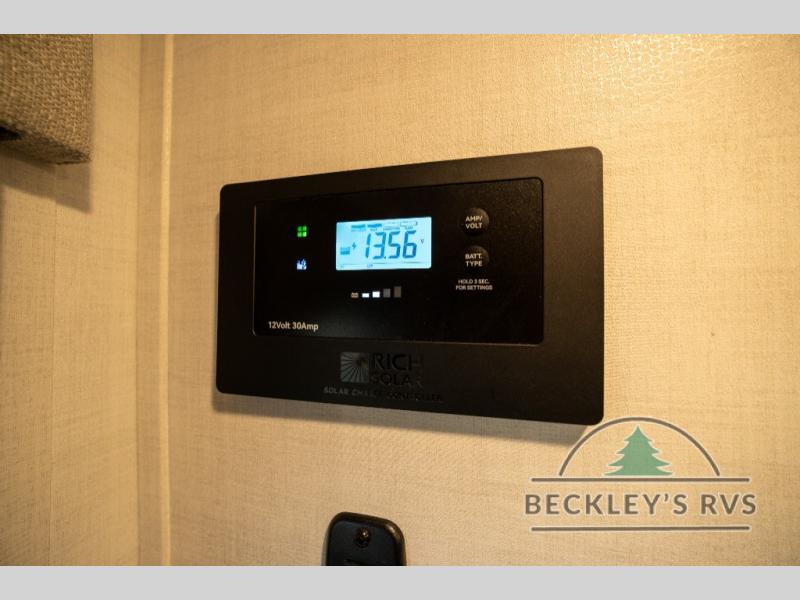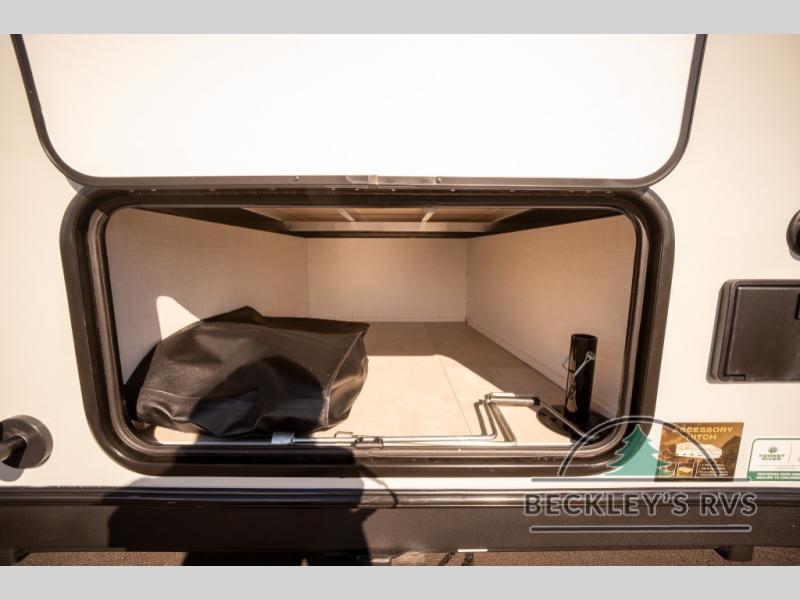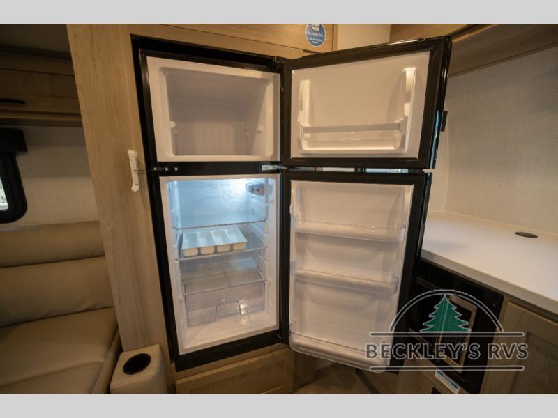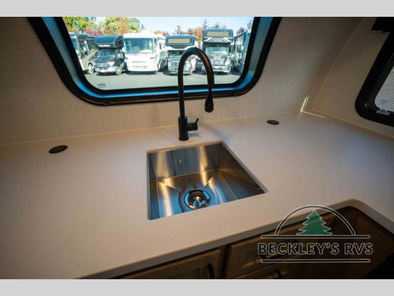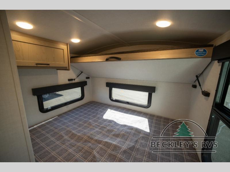 Are you looking for a lightweight trailer with at-home comforts? Take a look at this single slide out unit that can sleep three to four each night. There is a queen-size bed in the back with a 26" x 80" flip-up bunk for cozy sleeping space, a 72" sofa with cupholders to relax on, plus a 12V TV for movie nights! The front kitchen includes a 12V refrigerator to store food, plus a microwave oven and a gas oven to cook meals each day.