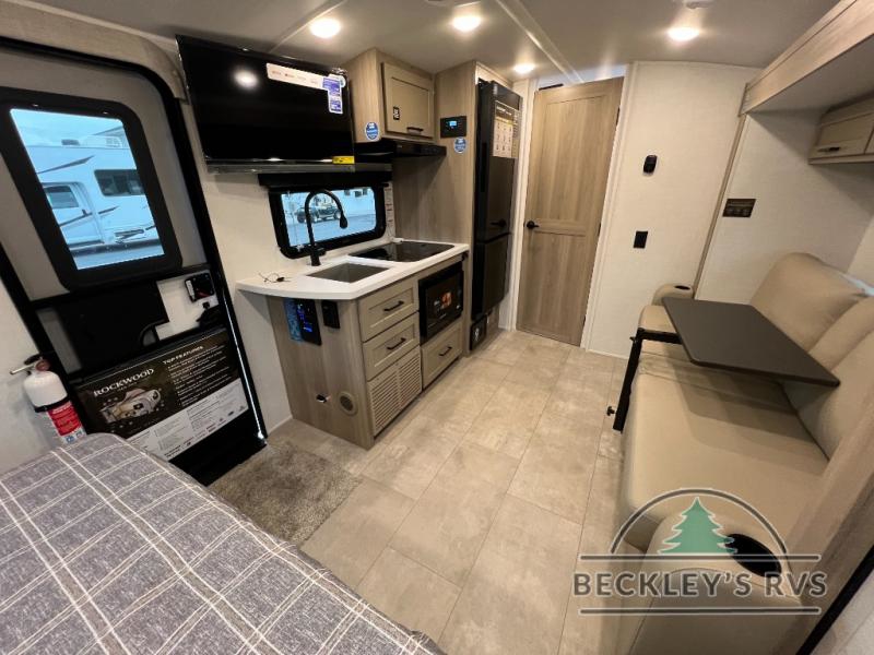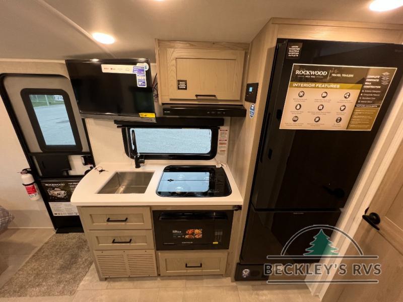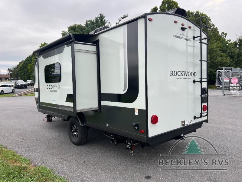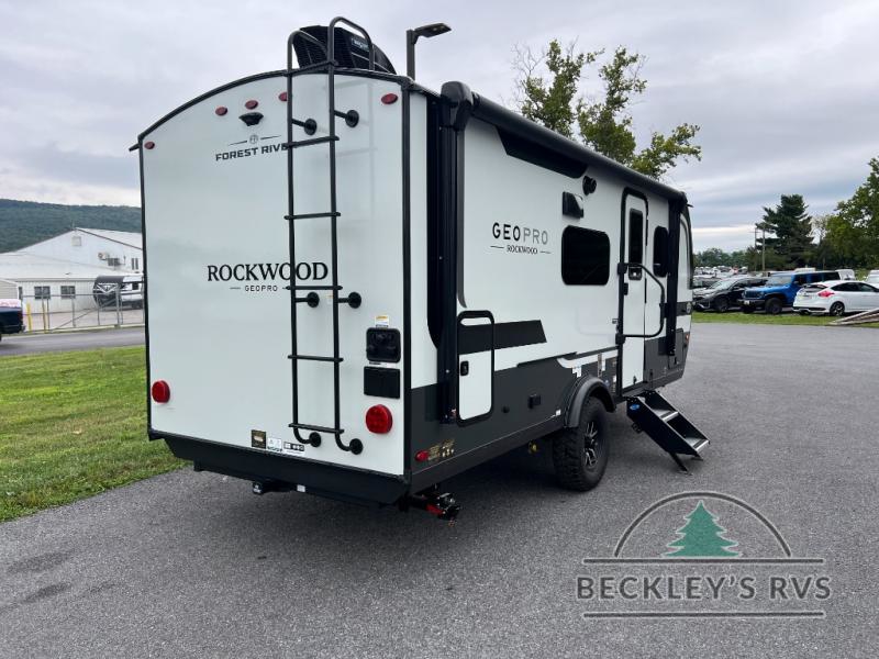 With any Rockwood GEO Pro travel trailer by Forest River you will enjoy easy towing, durable construction, and off-road capabilities with larger 15" tires and a lift kit! Each model is constructed with complete composite wall construction for added strength and durability, and the torsion axle, Rubber-Ryde suspension will make towing easier than ever. Inside, you'll find sleek roller shades for added privacy, a 12V refrigerator and a microwave, plus a 20,000 BTU furnace to keep you warm during the colder camping months.