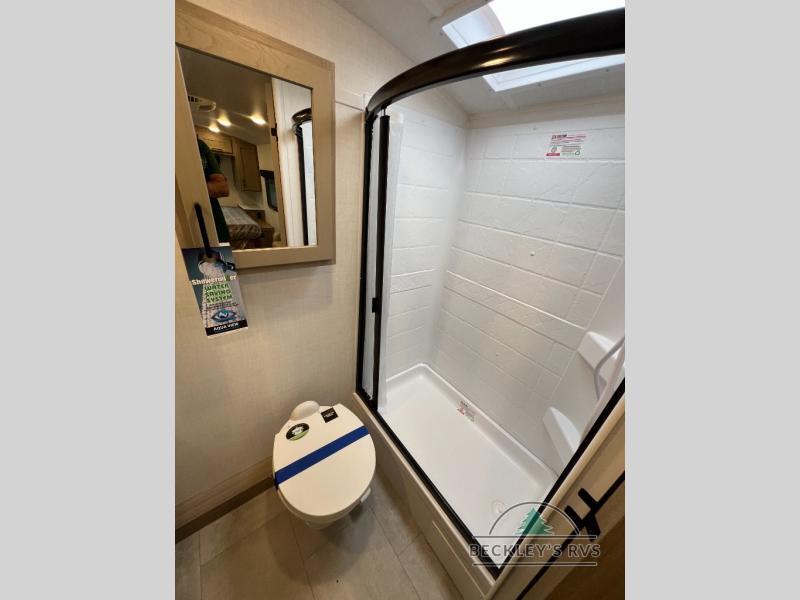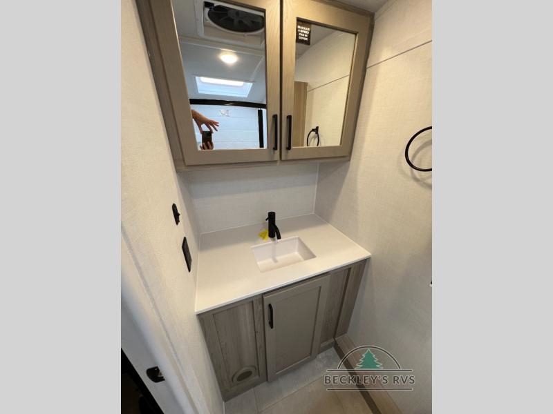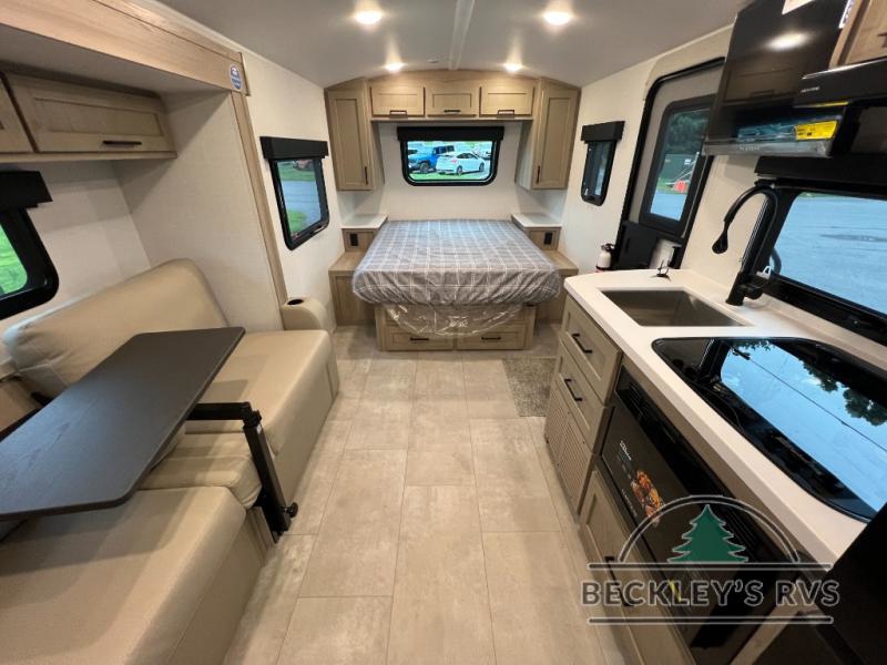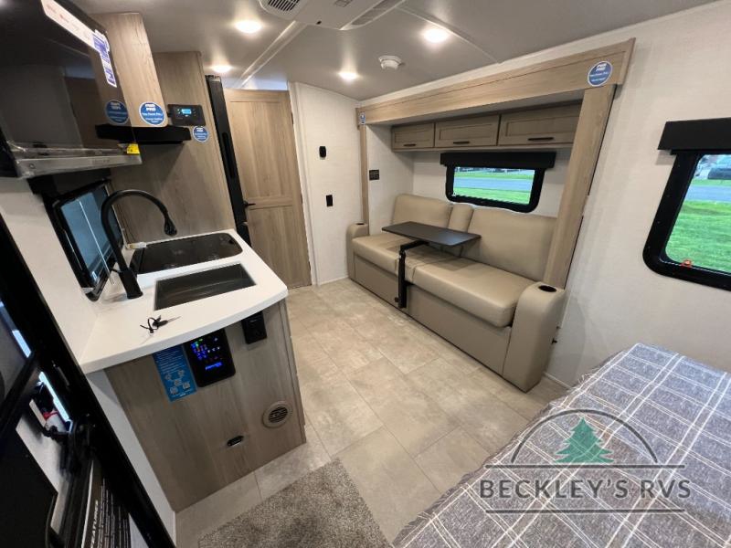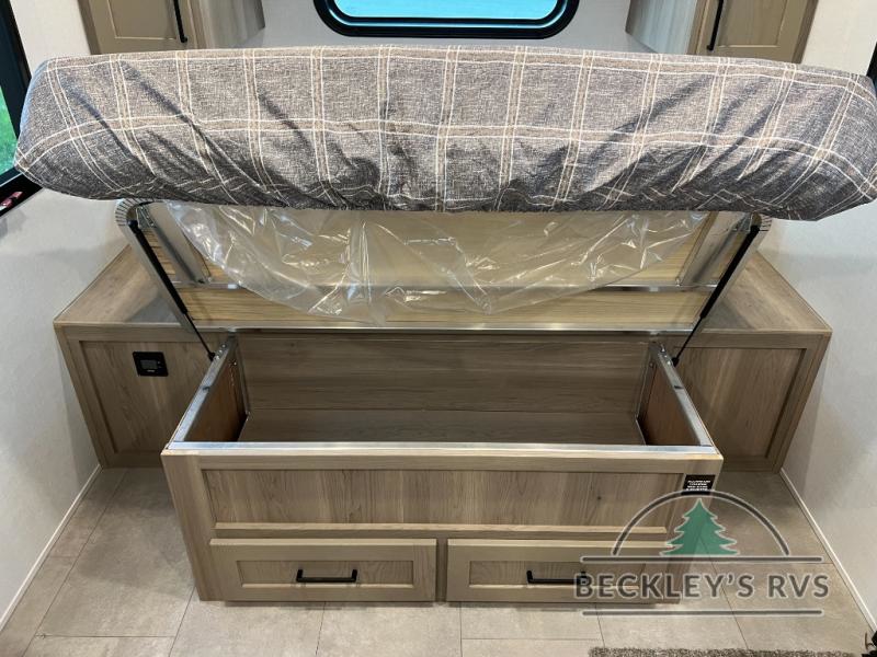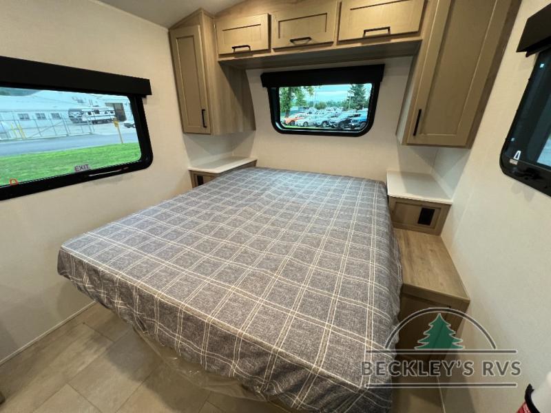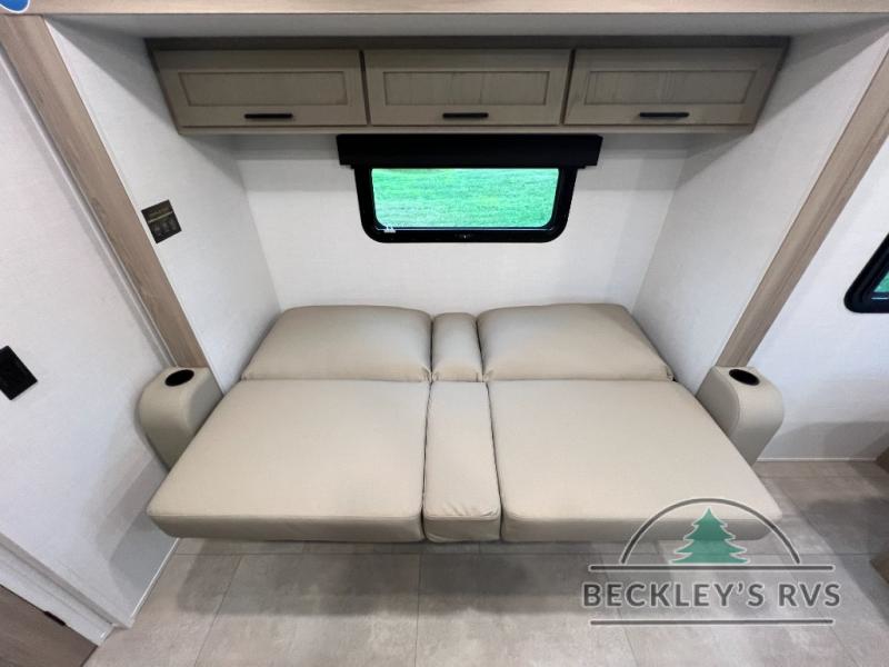 This travel trailer will feel more like home with its front bedroom and walk-around full-size bed. You'll enjoy the 32" 12V TV as you relax on the 72" sofa with a table and cupholders. The full rear bath includes a spacious shower to clean up in each day and there is a linen closet for clean towels. When you're ready to prepare dinner you'll have a three burner cooktop and microwave oven indoors, and a griddle outdoors! And don't forget the exterior storage allows you to bring along beach toys and tackle boxes. The optional Power Package available on this model includes three 200W solar panels, a side solar plug-in, a 3kW 160A inverter, and more off-grid features!