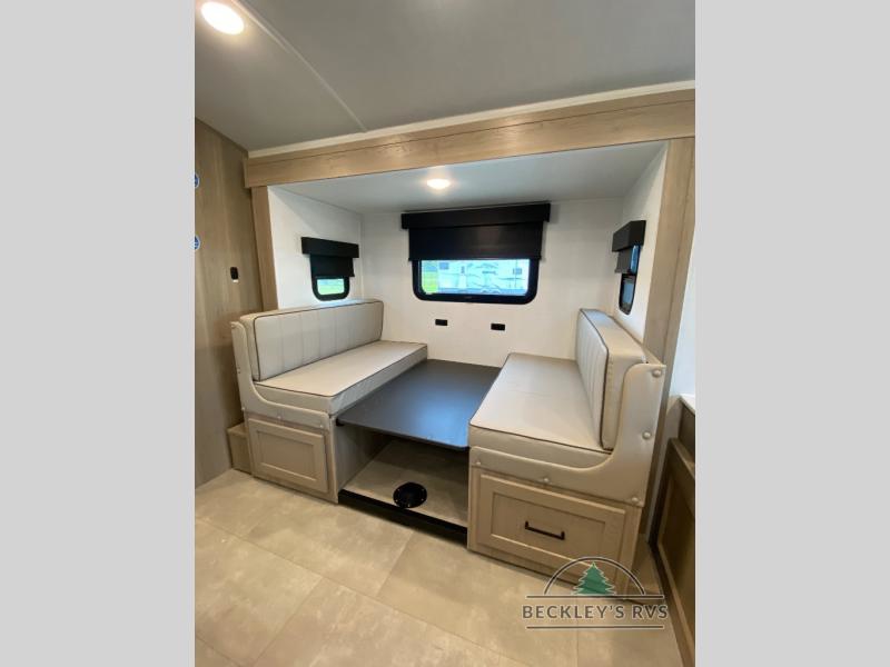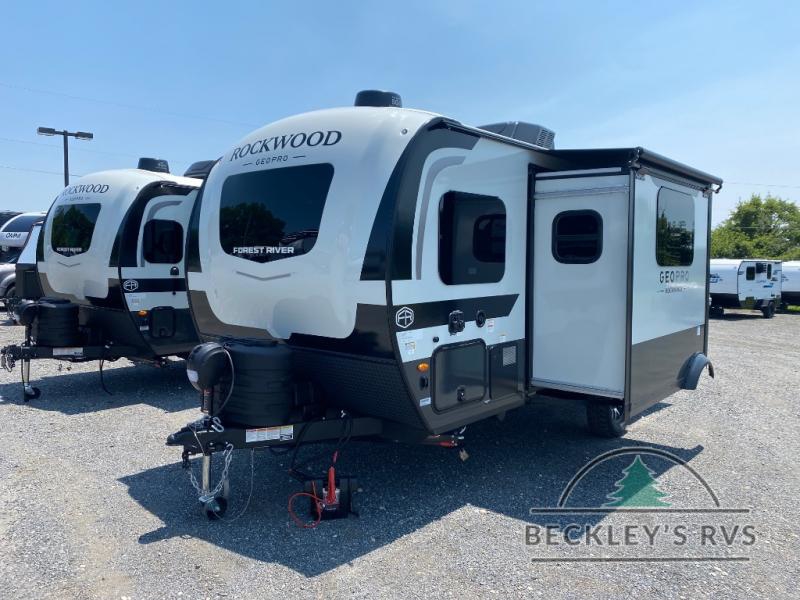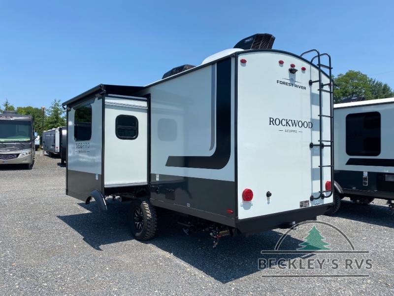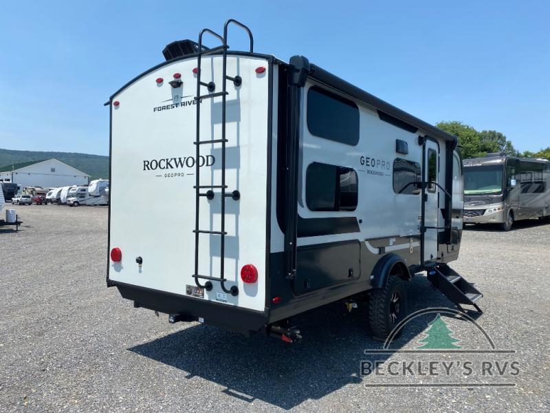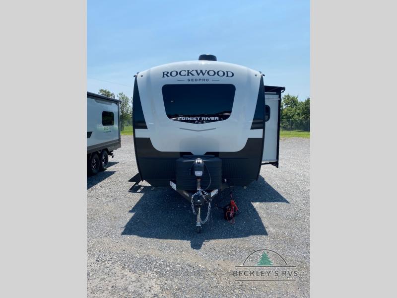 With any Rockwood GEO Pro travel trailer by Forest River you will enjoy easy towing, durable construction, and off-road capabilities with larger 15" tires and a lift kit! Each model is constructed with complete composite wall construction for added strength and durability, and the torsion axle, Rubber-Ryde suspension will make towing easier than ever. Inside, you'll find sleek roller shades for added privacy, a 12V refrigerator and a microwave, plus a 20,000 BTU furnace to keep you warm during the colder camping months.