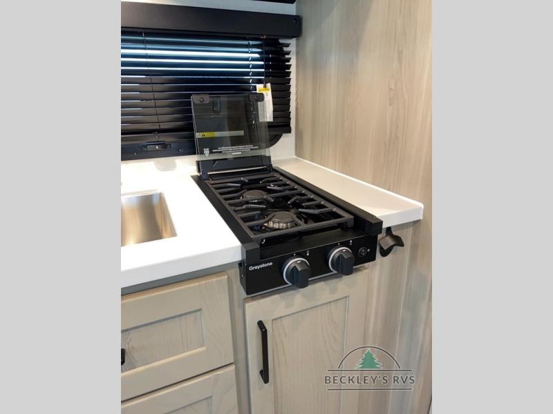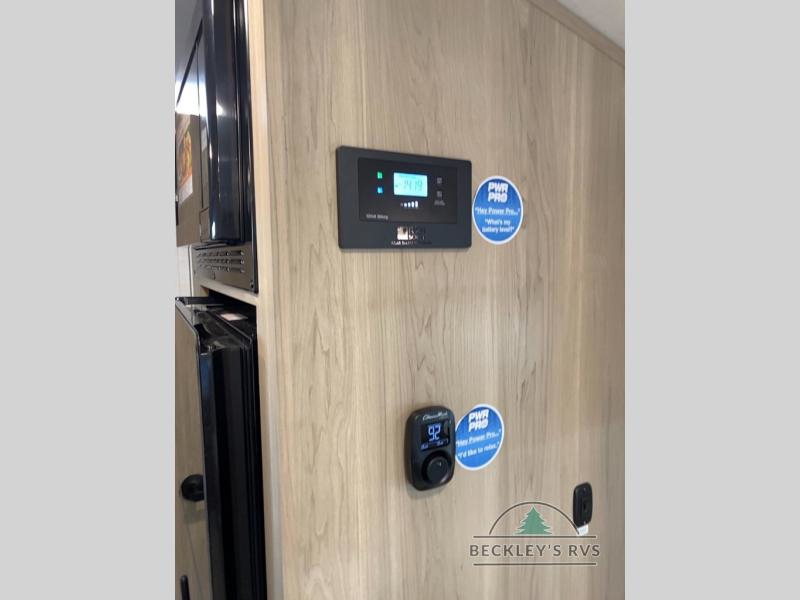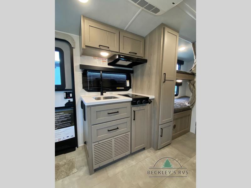 You're going to love camping with your family or friends in this spacious bunk model! The bunk beds will be perfect for little ones, while you take the front full-size bed. There is also a 44" booth dinette within the slide out for additional sleeping and seating space. The kitchen includes everything the chef will need to prepare meals each day, including a recessed cooktop, microwave oven, and a 12V refrigerator for perishables. If the weather is nice, you may just find the chef outdoors cooking on the outside griddle under the 14' power awning. And check out the exterior bike door that will be perfect for bikes, luggage, or extra camp gear. The optional Power Package available on this model includes three 200W solar panels, a 460 Ah Mastervolt MLI lithium-ion battery, two smart remotes, and more off-grid features!