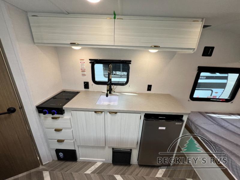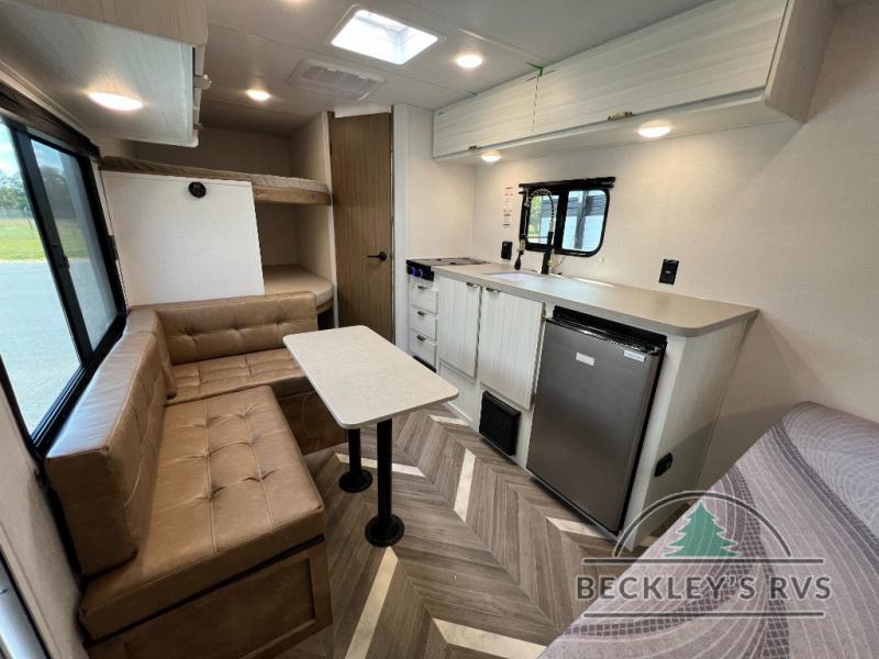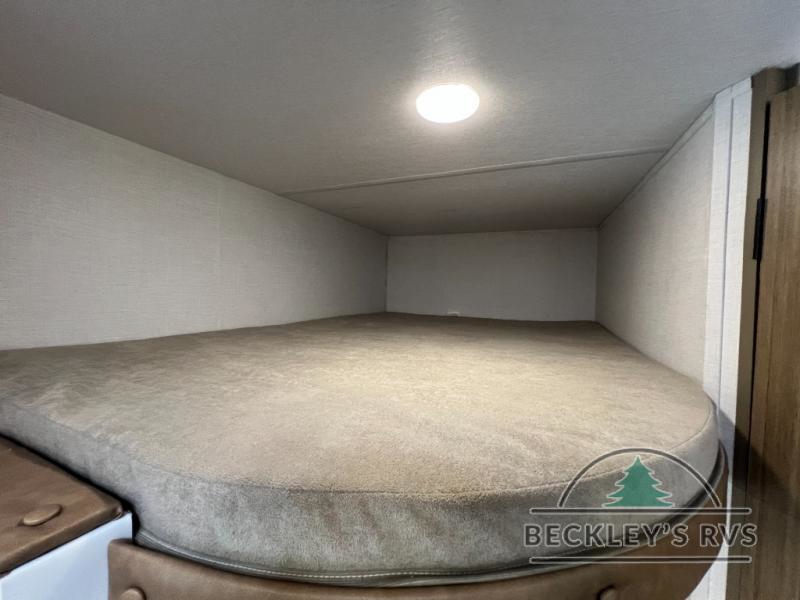 This Limited Edition travel trailer is perfect for your crew of seven thanks to the double-size bunks! You can take the front queen bed for yourselves, and any other guests can sleep on the L-shaped open lounge if needed. You will find a kitchen overhead cabinet for spices, and wardrobe by the bed for your clothes. Prepare all your meals in the fully-equipped kitchen that includes plenty of counter space and a refrigerator.  On the outside, a 14' 12V power awning will provide an outdoor living space you are sure to love as well!