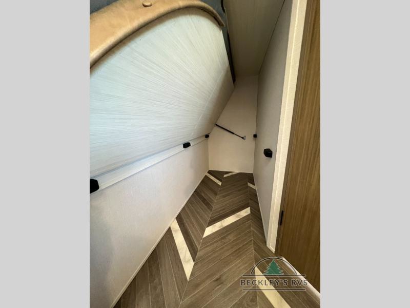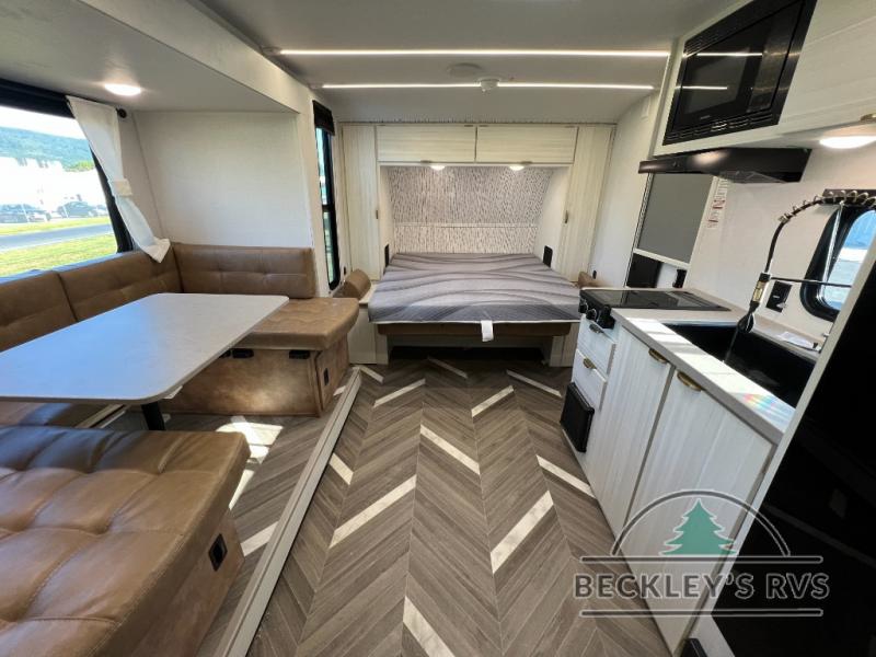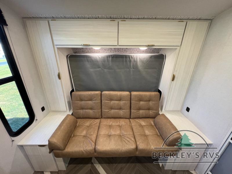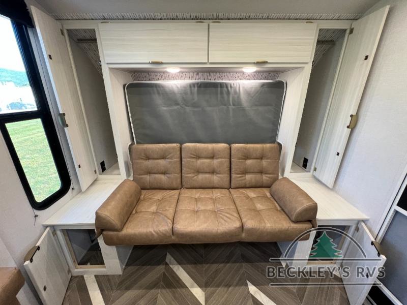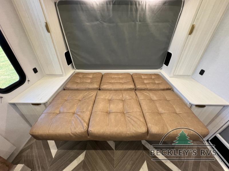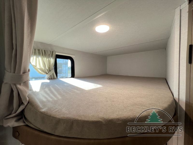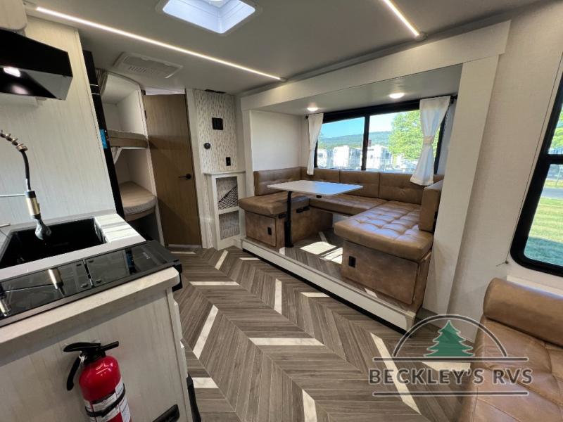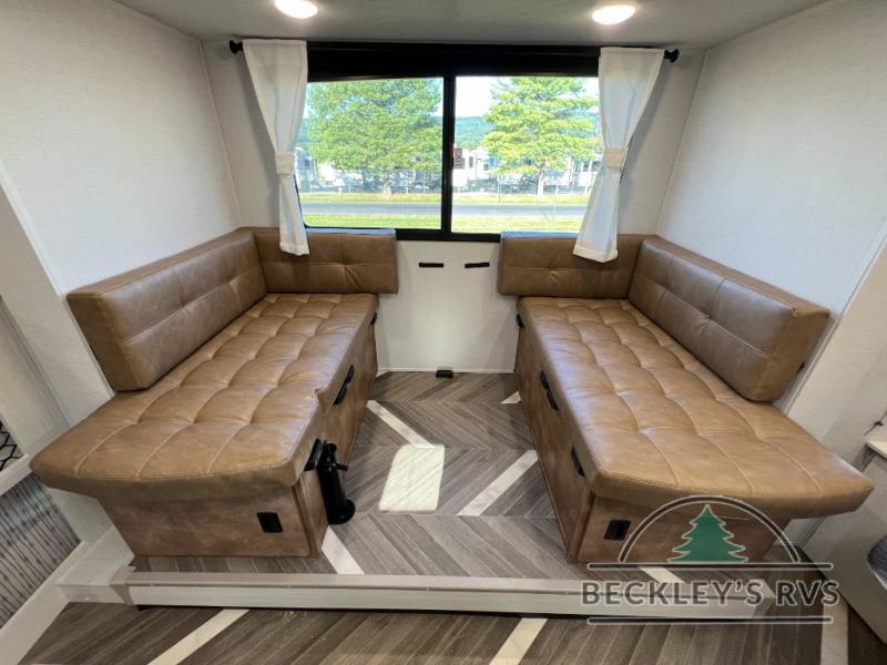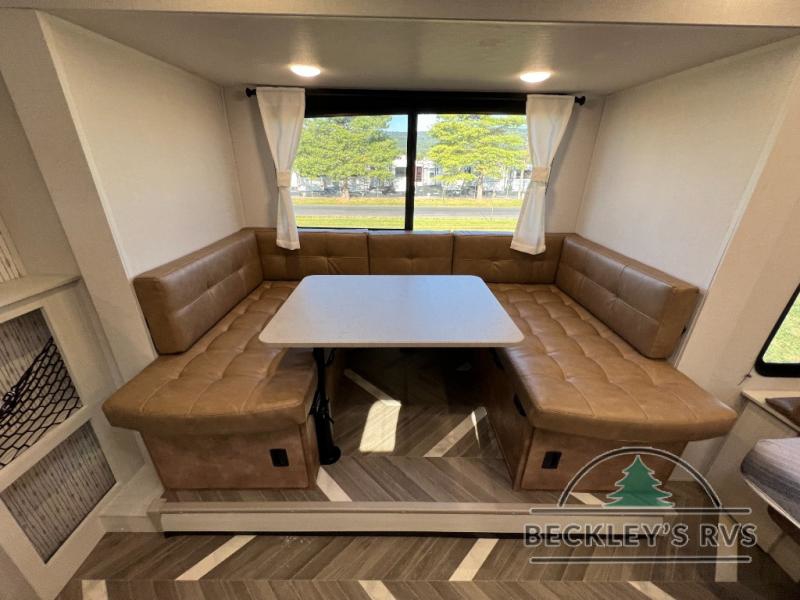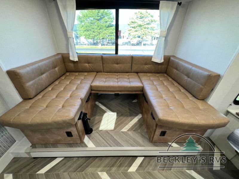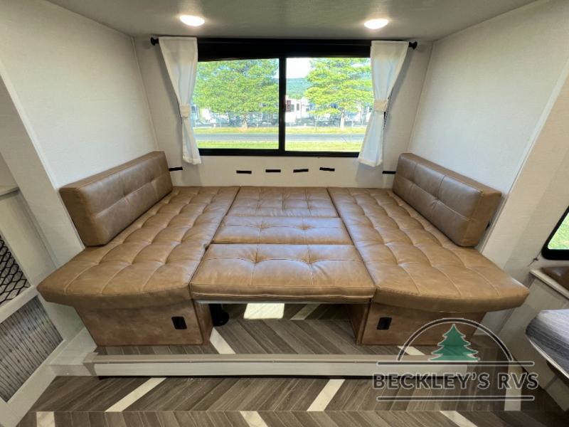 You can create the perfect oasis with this Ozark travel trailer! The exterior is outfitted with a 14' power awning to protect you from the hot summer sun and rain. On the interior, there is extra roominess thanks to the single slide. This slide holds the U-shaped dinette/booth dinette combo where you can dine at. The Murphy bed is especially useful when you are trying to be frugal with your space because it can fold away to reveal a sofa during the day allowing more space to move about. The double-size bunks provide plenty of sleeping space, and the panoramic window and lets the sunshine in.