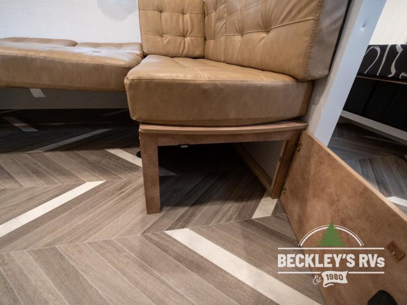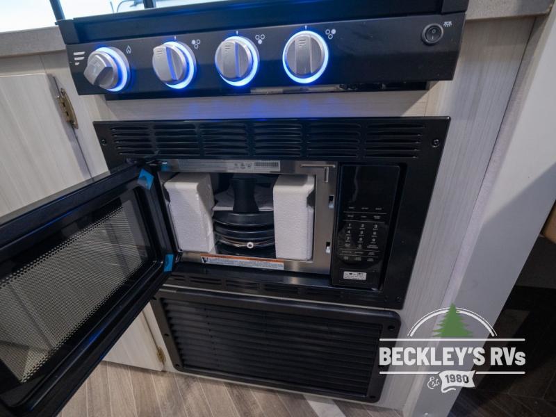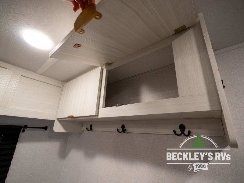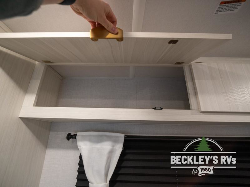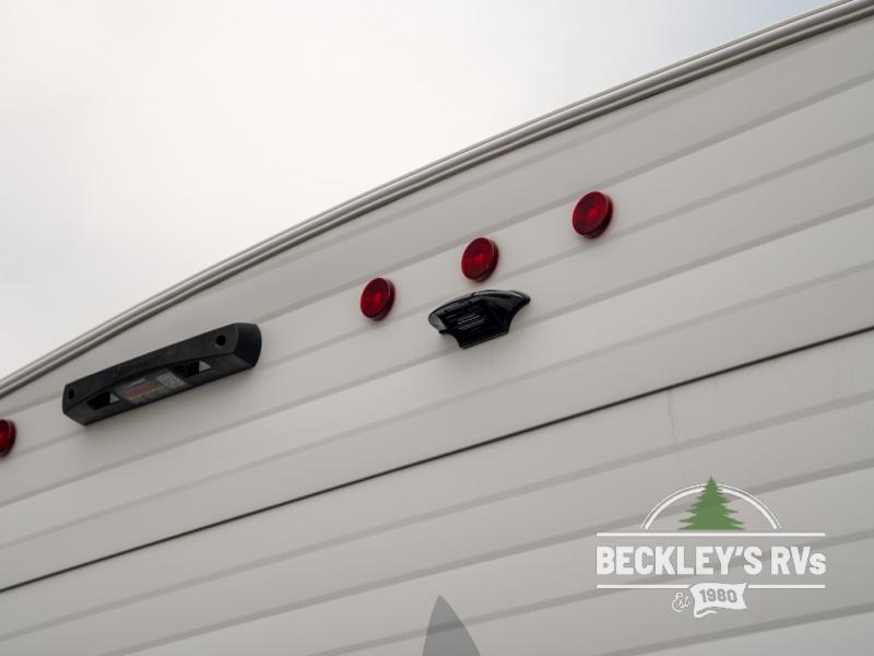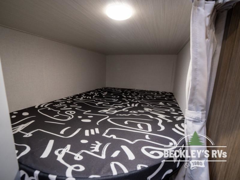 This trailer resembles the layout of 2300RB, but you'll enjoy added double-size bunks in the rear corner, with a full bath in the other rear corner! You'll have the front private bedroom all to yourselves with a king bed and dual wardrobes, and other guests can sleep on the L-shaped sofa when it's not being used to relax on. The kitchen on this Ozark includes a 3-in-1 cooktop with a convection microwave, and a window by the sink so you can have open views as you clean up. There is also a pantry and a 12V refrigerator to keep food stocked!