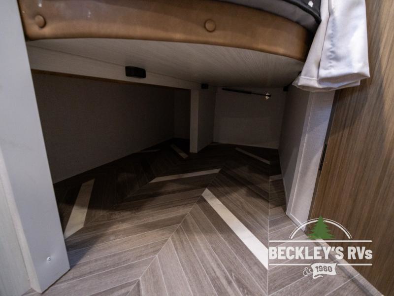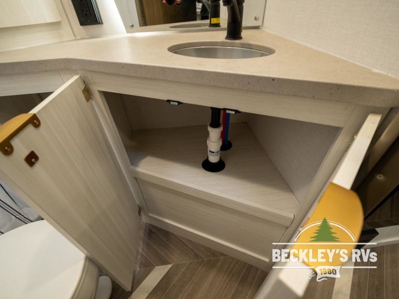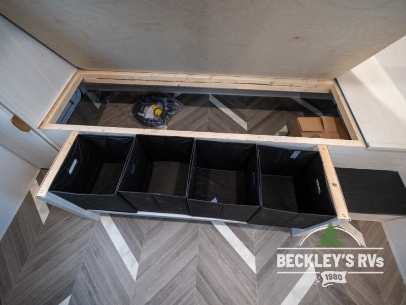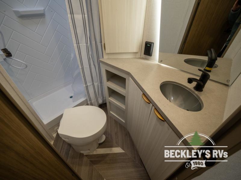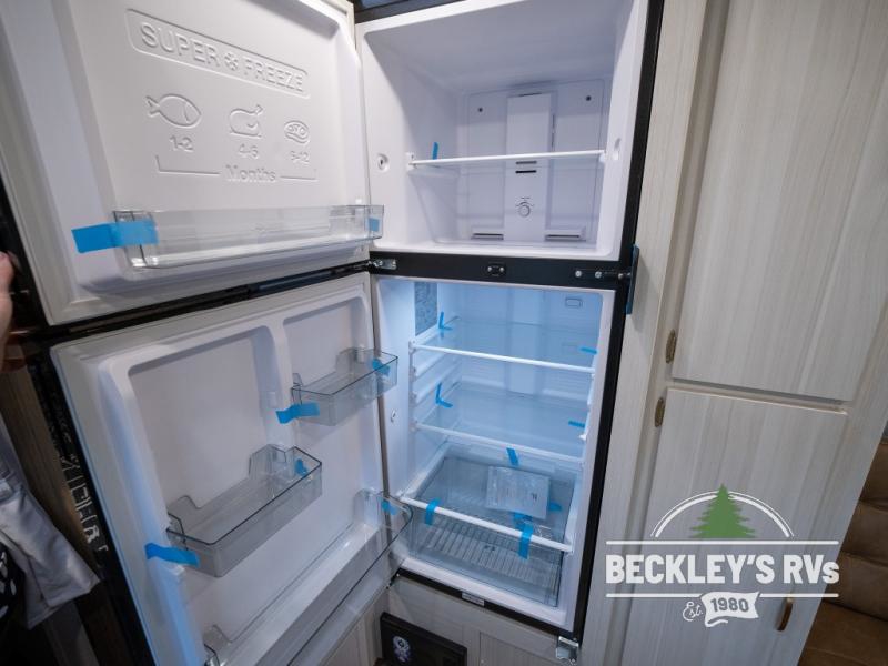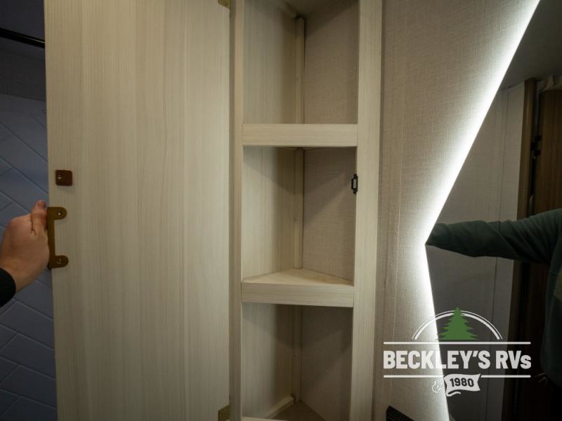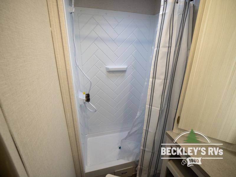 This trailer resembles the layout of 2300RB, but you'll enjoy added double-size bunks in the rear corner, with a full bath in the other rear corner! You'll have the front private bedroom all to yourselves with a king bed and dual wardrobes, and other guests can sleep on the L-shaped sofa when it's not being used to relax on. The kitchen on this Ozark includes a 3-in-1 cooktop with a convection microwave, and a window by the sink so you can have open views as you clean up. There is also a pantry and a 12V refrigerator to keep food stocked!