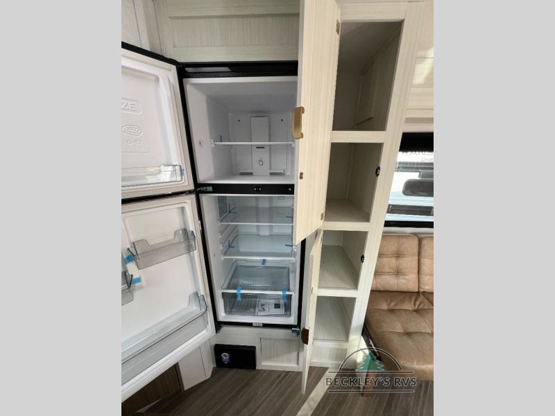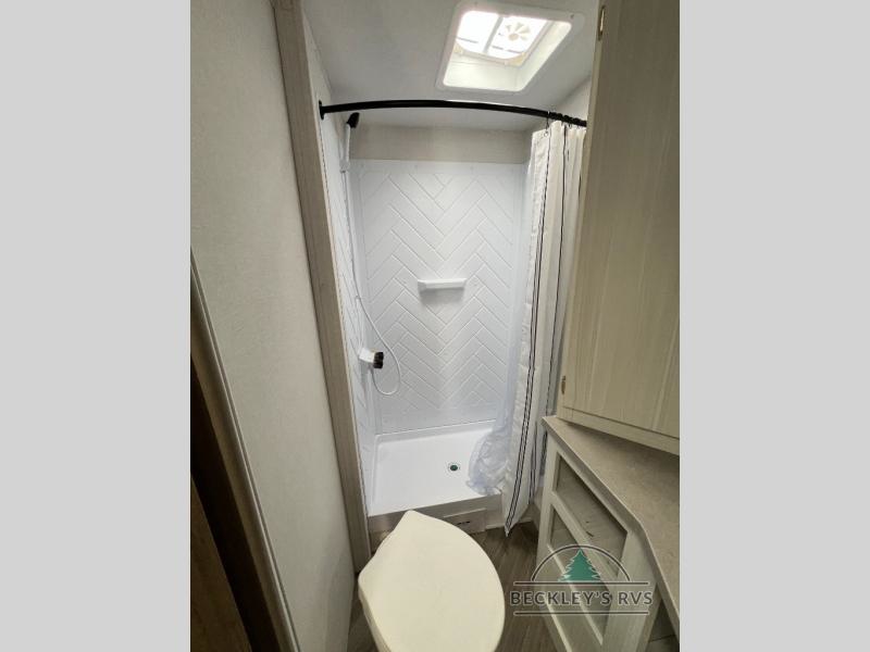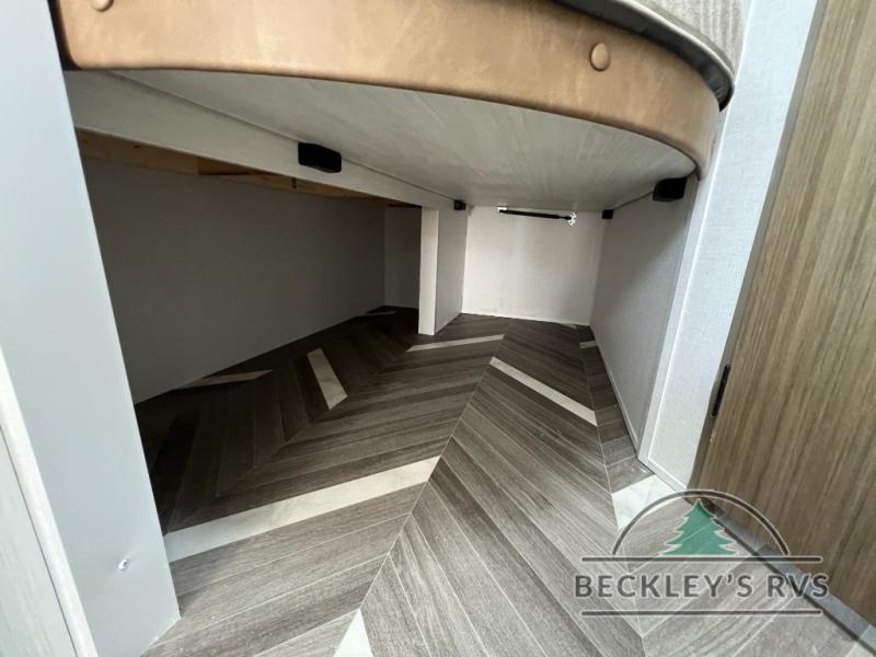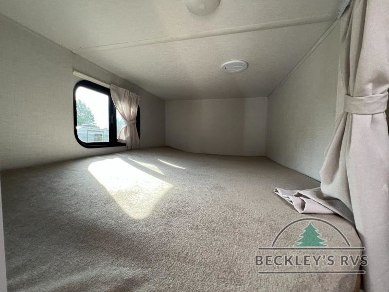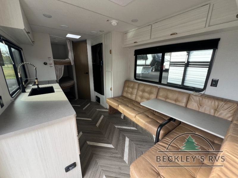 This trailer resembles the layout of 2300RB, but you'll enjoy added double-size bunks in the rear corner, with a full bath in the other rear corner! You'll have the front private bedroom all to yourselves with a king bed and dual wardrobes, and other guests can sleep on the L-shaped sofa when it's not being used to relax on. The kitchen on this Ozark includes a 3-in-1 cooktop with a convection microwave, and a window by the sink so you can have open views as you clean up. There is also a pantry and a 12V refrigerator to keep food stocked!
