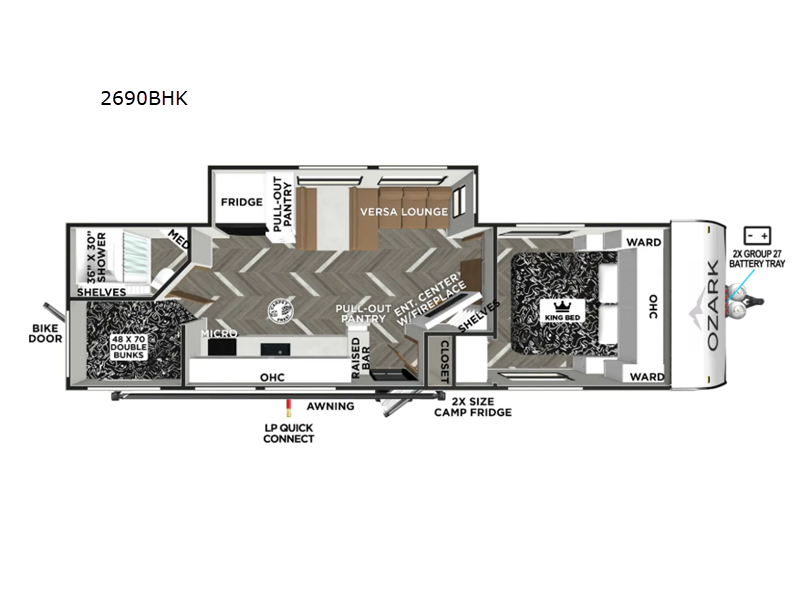 With any Ozark travel trailer or toy hauler by Forest River, you can expect lightweight towing, tons of standard features, and a great value! Each one is built with solid materials, including fiberglass insulation throughout, front diamond plate rock guard for added protection, and a powder coated I-beam frame with camber for more structural support! The stylish interior will have you feeling right at home, and you'll find plenty of storage spaces for your personal belongings, camp gear, and more. And since there are a variety of floorplans to choose from, including Limited Edition travel trailers, single axle and dual axle models, plus toy haulers, you're sure to find the Ozark that fits your needs!