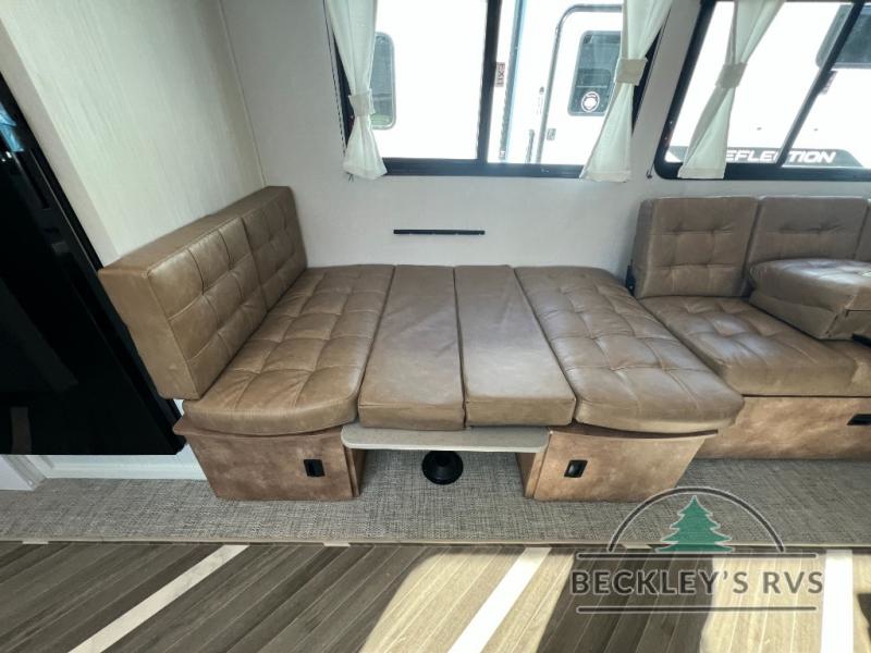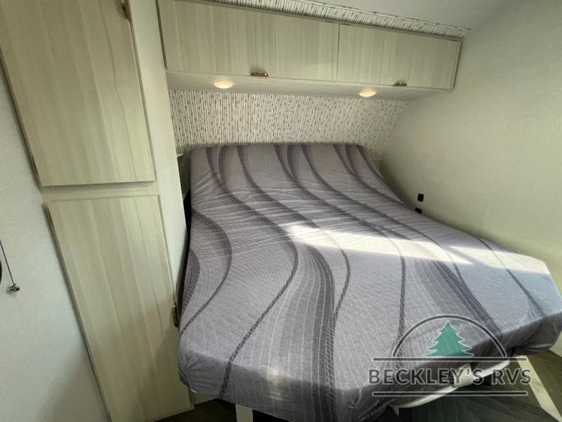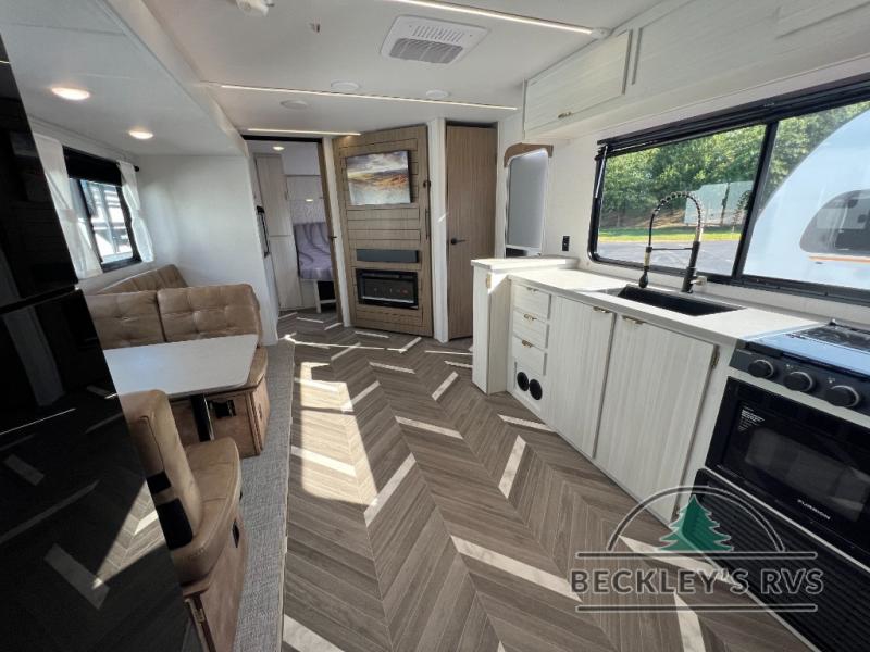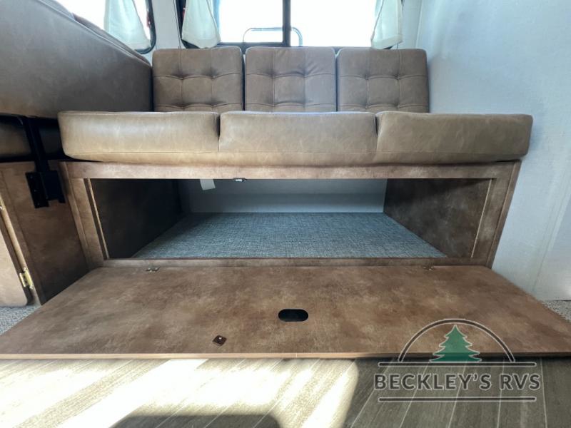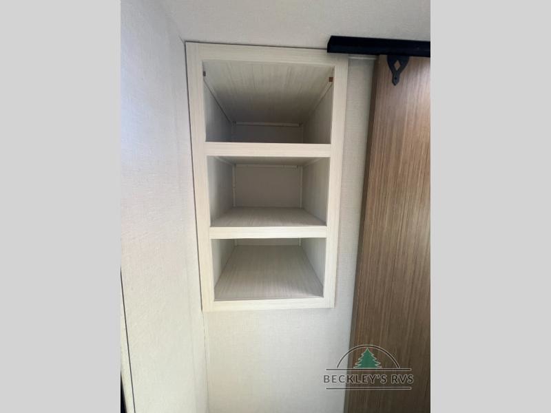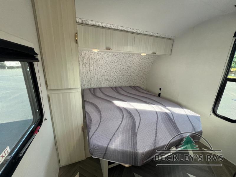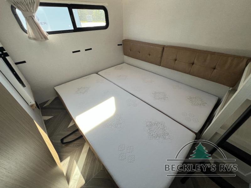 Trips to the lake just got sweeter in this travel trailer with a large slide for more space. Here, you'll find an versa lounge, and the entertainment center with a fireplace will make it feel a little more like home. A full bath with a 24' x 36" shower will let you clean up each day without having to use the camp's facilities, and the rear bunkhouse will provide sleeping space for your guests or kids. There are two bunk beds here, along with an open lounge/queen bed combo and storage space to keep this room tidy. Head up front to enjoy the private bedroom all to yourselves with a king bed and dual wardrobes for wrinkle-free clothes!
