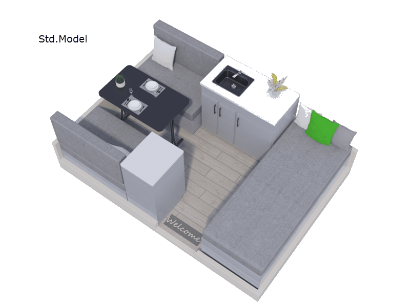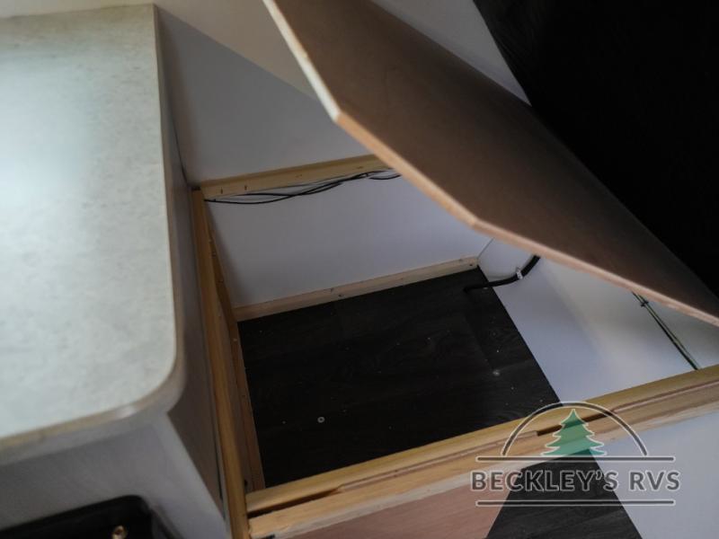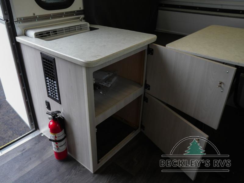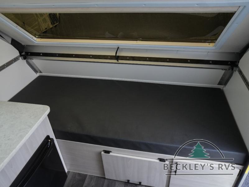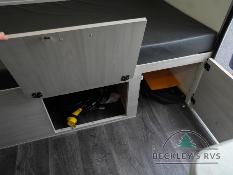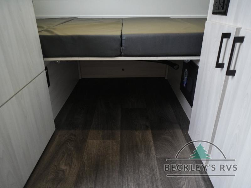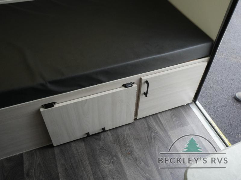 When all you need is the basics to camp, this Scout Lite will be perfect for you! There is sleeping space on either the front 30" x 76" bed or the rear dinette which converts into a 56" x 76" bed. There is plenty of storage throughout between the storage under the front bed, under the sink, and the exterior baggage door. And you can keep everything charged with the two electrical outlets inside and the one exterior electrical outlet!