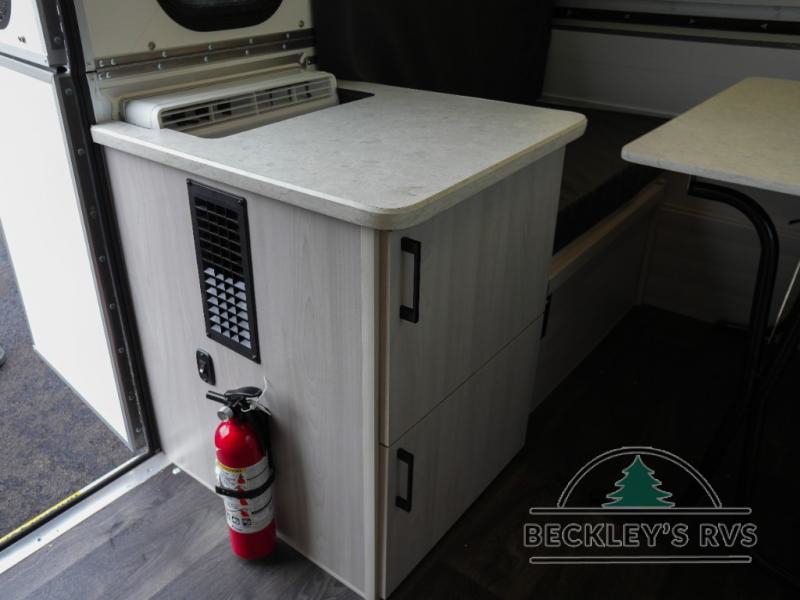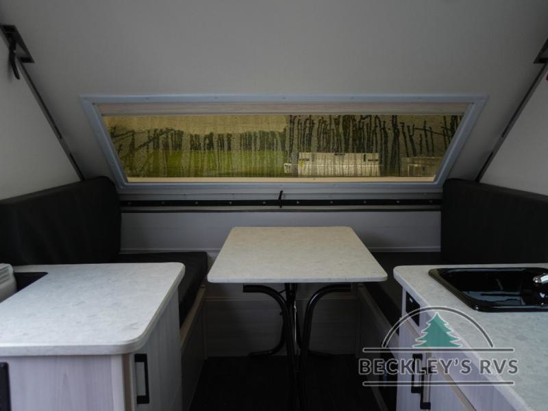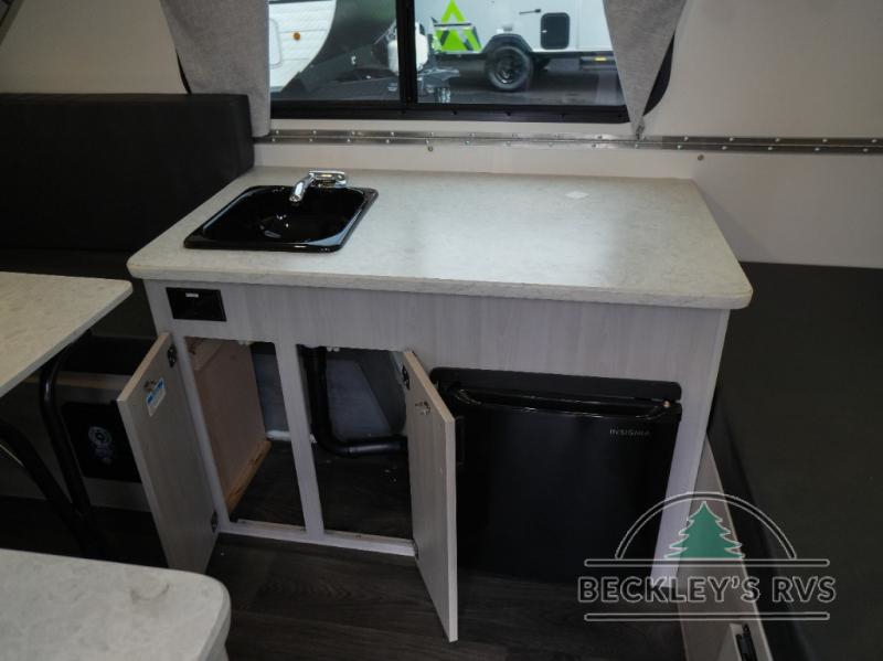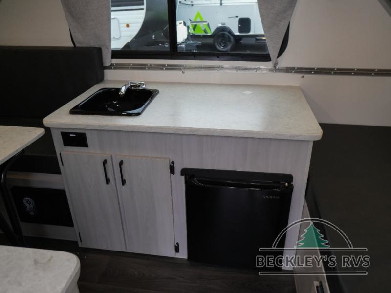 With the Scout Lite A-frame camper by Aliner, the construction includes Azdel composite roof/sidewalls, aluminum wheels, and a 5" tubular steel frame for added durability. This camper is the lightest in its class, weighing only 1,190 lbs., providing an easy tow! You'll love the Mirage Gray blackout curtains inside, along with Shalestone countertops and 5/8" thick Euro style cabinet doors. There is also a water shield to prevent standing water from wicking, and the Fantastic will keep fresh air moving. Available options include a front soft dormer, a 6,000 BTU side-mount A/C, and a 1.7 cu. ft. 12V refrigerator if you want to further customize your camper!