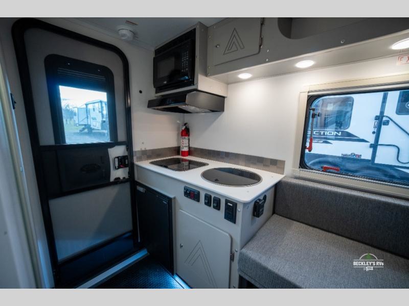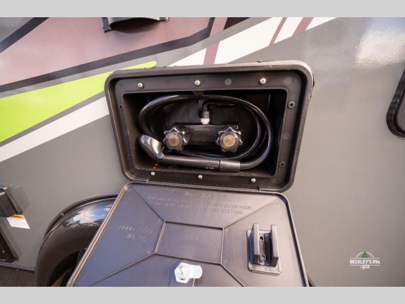 Your time at the campground will be complete with this lightweight travel trailer. There are two dinette seats with a table to dine, relax, and convert to a 77" x 72" bed size when you're ready for bed. You won't have to use the camp's facilities thanks to the wet bath with an enclosed shower and toilet combination plus a shower door for privacy. This model includes a two burner cooktop, a sink, plus a 3.0 cu. ft. two-way refrigerator under the range to store your perishables.