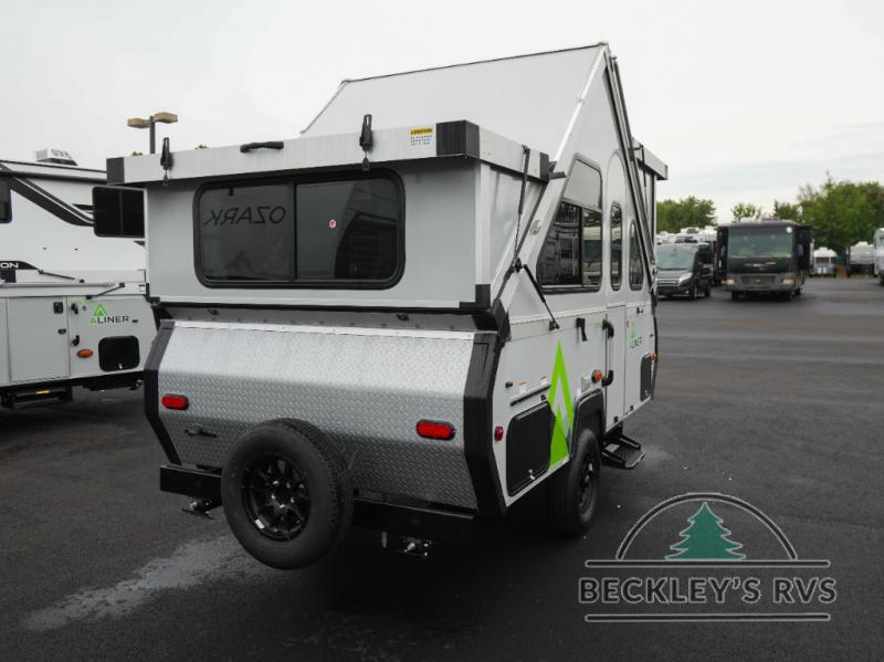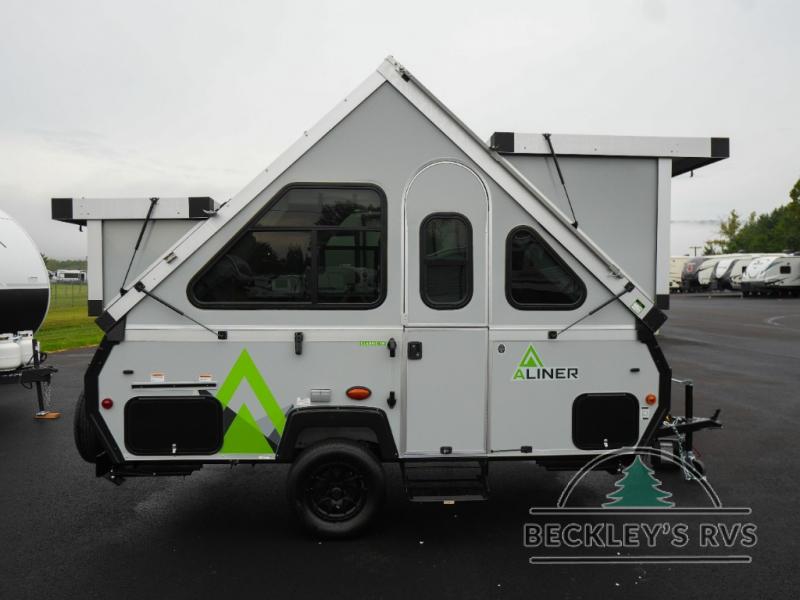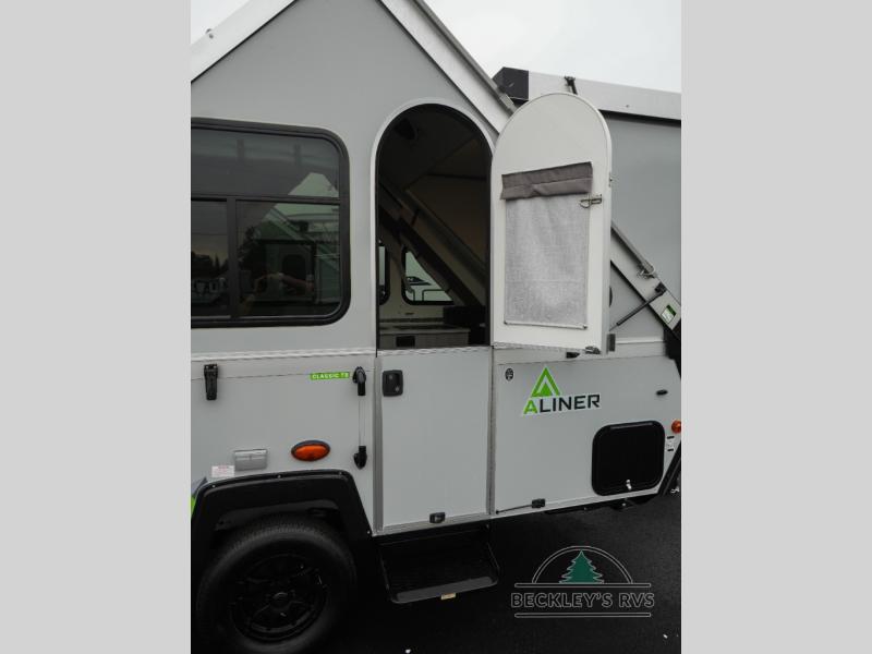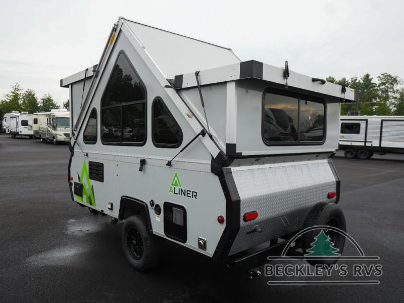 With any Aliner Classic A-frame folding pop-up camper you will find Azdel lightweight, composite interior wall and ceiling panels for added durability and strength. The additional corner windows provide panoramic views, and the hardwood cabinet doors will give these campers a more at-home feel. Four stabilizer jacks come standard, along with an LP connection, an exterior outlet, and an outside shower. It's no wonder these campers are named classic! Choose your model and start camping today!