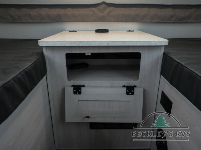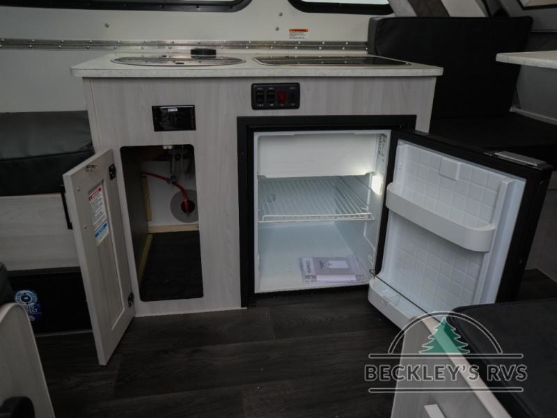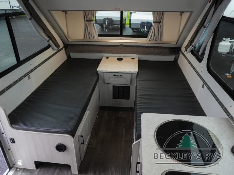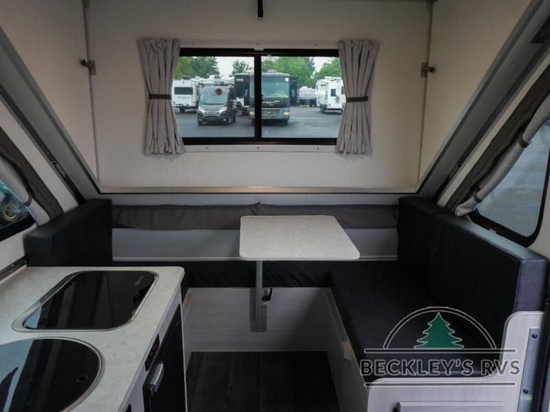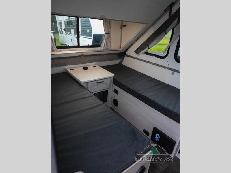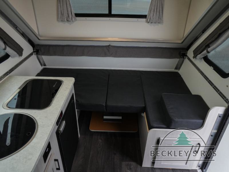 If you enjoy camping with friends or you need your own space at night, this Twin Bed model will do the trick! While two campers take the rear twin beds, the front booth dinette can convert to a 30" x 76" bed for an extra guest, and in the morning you can convert it back to dining space. Whip up breakfast on the two burner stove, or use the convenient microwave oven. There is also a sink to clean up your dishes plus a 3.1 cu. ft. 12V refrigerator to put milk and eggs back in. Don't let this cute A-Frame slip away!