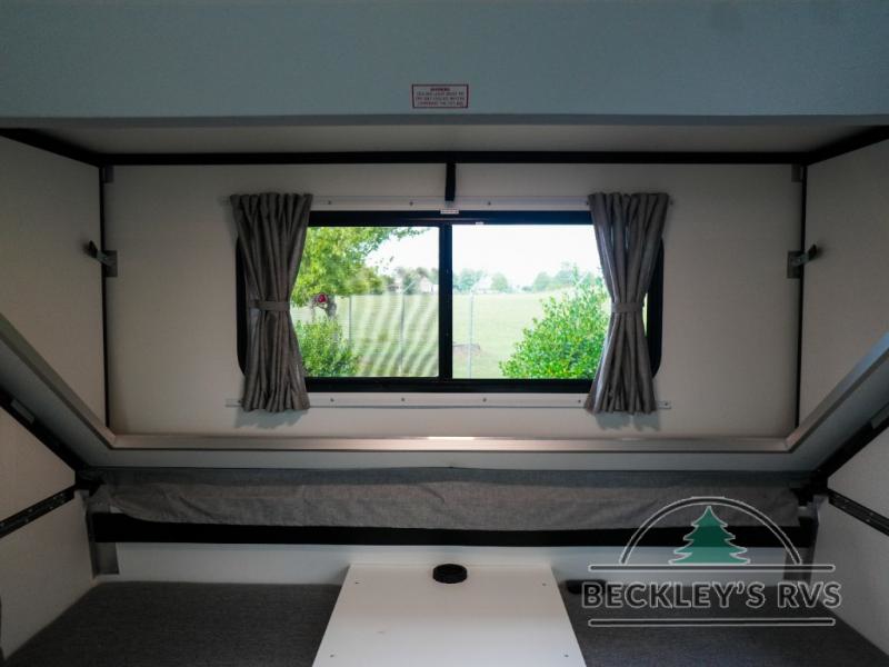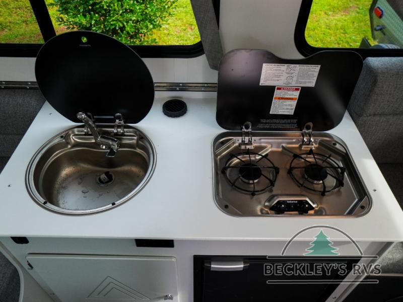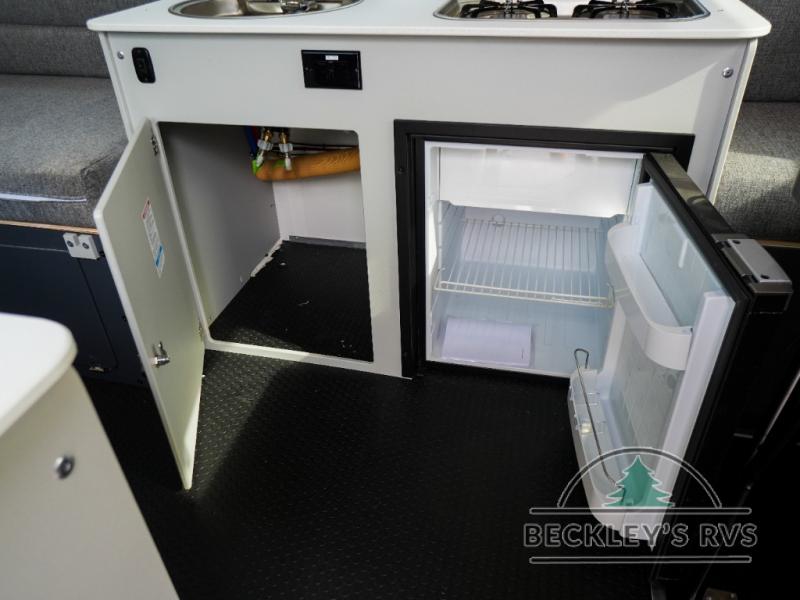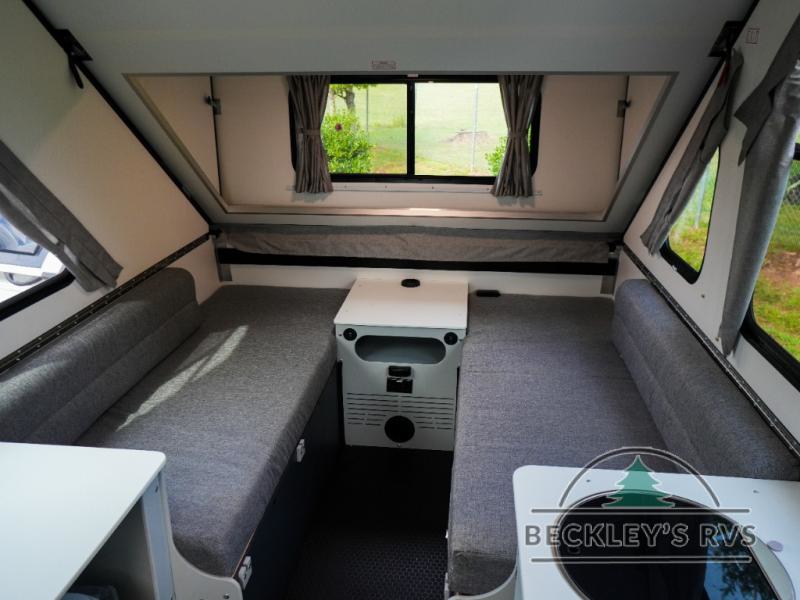 Two to four, depending on size can easily camp in this twin bed model featuring two 30" x 80" twin beds in the rear of the unit. There is a two burner cooktop to make lunch on and a 3.0 cu. ft. 3-way refrigerator with a freezer for your cold items, and you can add the optional outside grill if you like to cook outdoors! The dinette converts to a 40" x 80" bed for one or two more tired campers. You'll find storage space under the dinette for your things and the cassette toilet is quite handy especially at night. This model also has a dry weight of 2,400 lbs. for easy towing!
