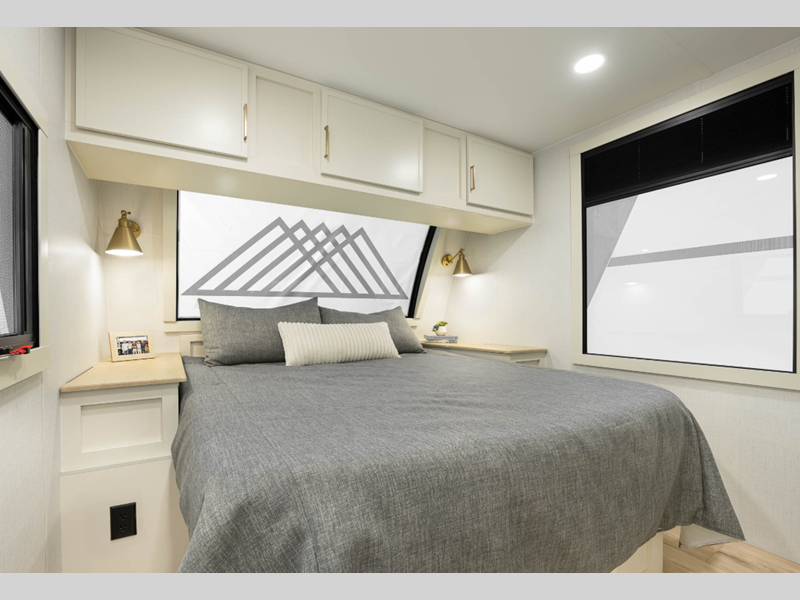 The lightweight Model I travel trailer by Brinkley is the perfect choice for those looking for an easy tow and at-home comforts! There is a drop-frame chassis, high-performance Road Armor suspension equalizer system, and Demco EZ Latch trailer coupler that automatically latches when dropped onto a hitch ball without the need of a safety pin. Additional exterior features include square Euro frameless windows, automotive-grade paint, full-width LED strip lighting in the pass-thru, and a pet & property security campside tie-down to keep your gear and furry friends safe. Inside, you'll be wowed by Brinkley's CraftSense wood trim construction, residential solid surface kitchen countertops, dimmable bedroom lights, and marine-grade neon LED shower lighting to name a few stand-out features!